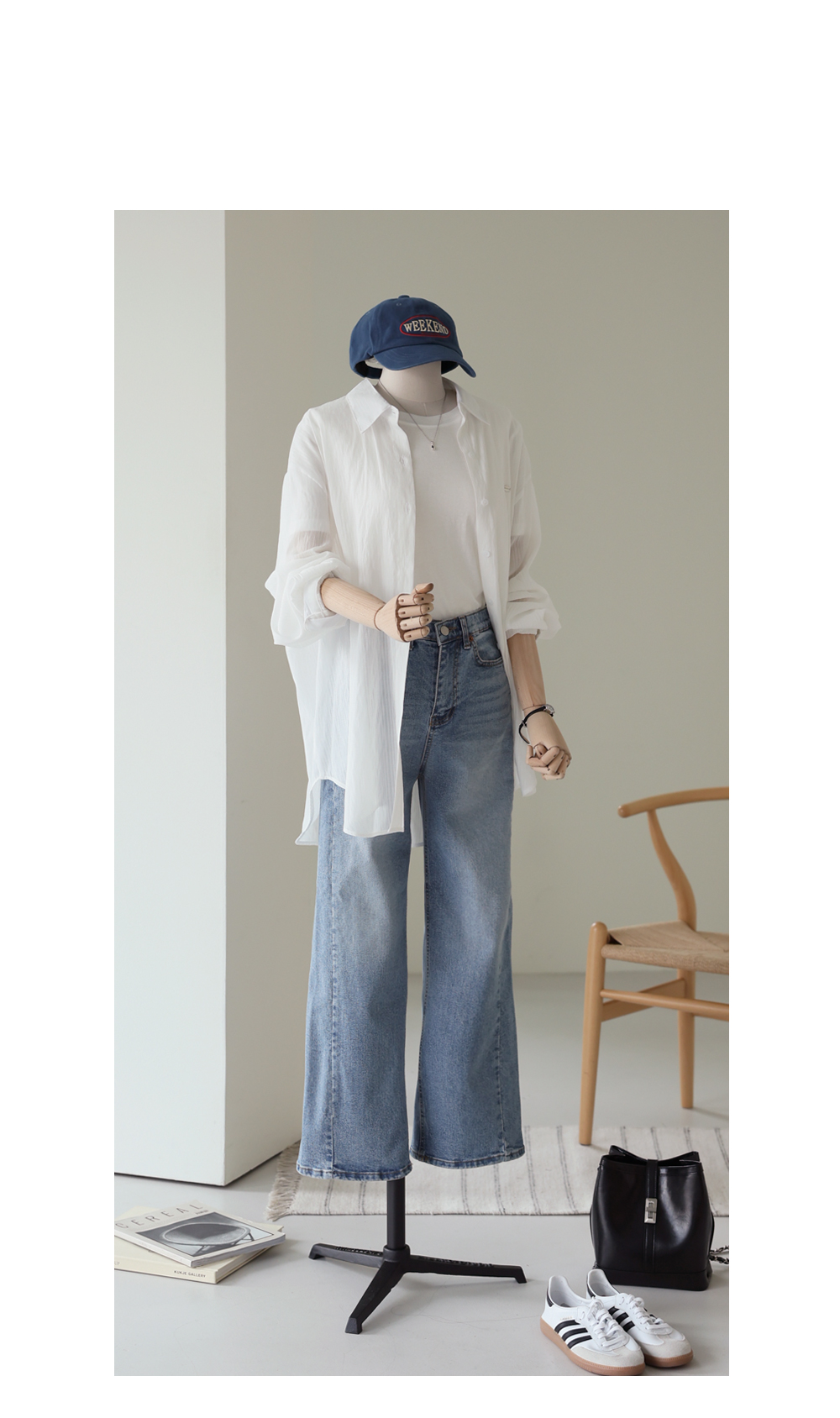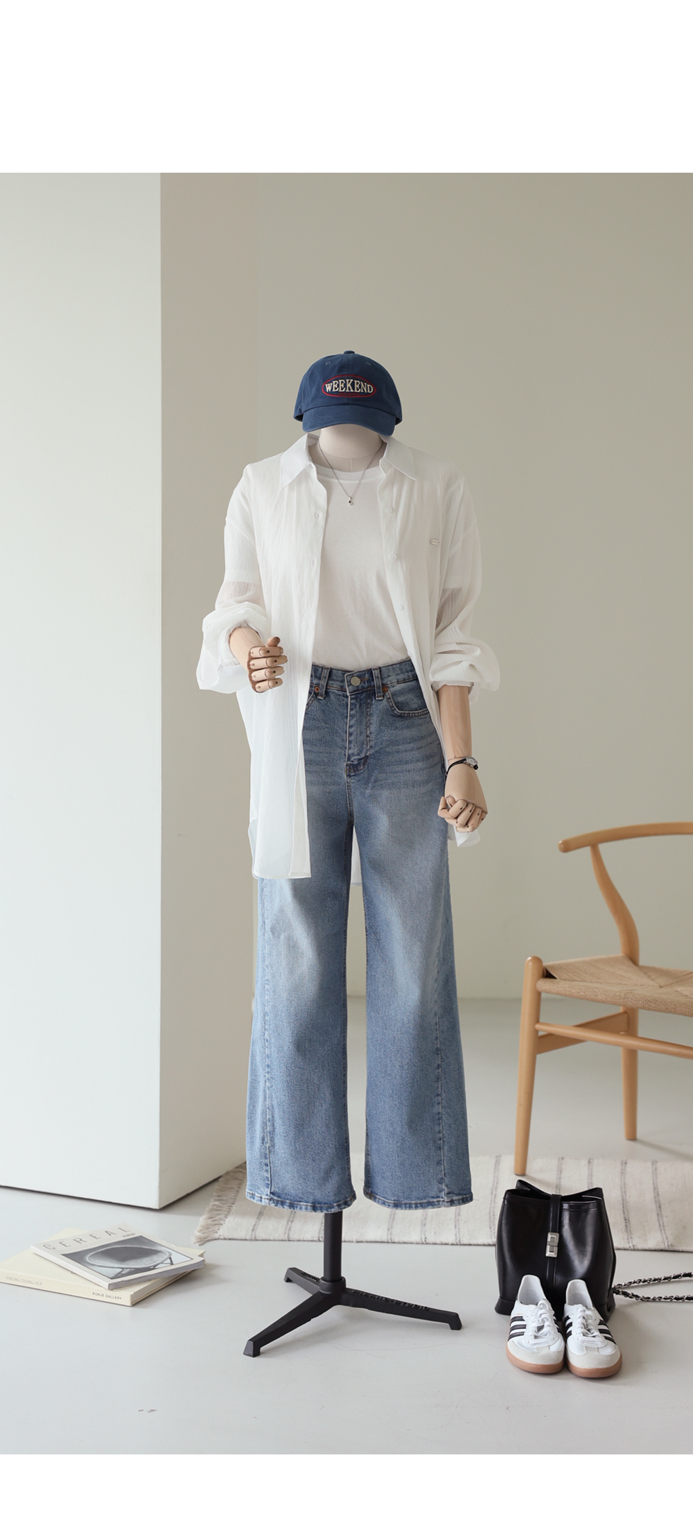 샤르나 여유일자 롱팬츠 _ 라이트데님