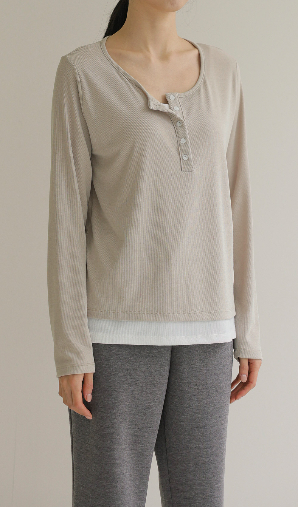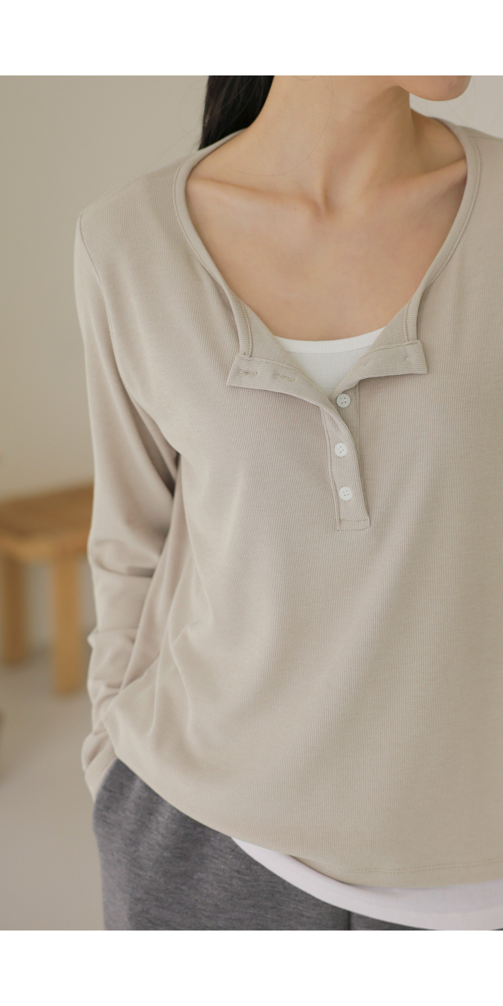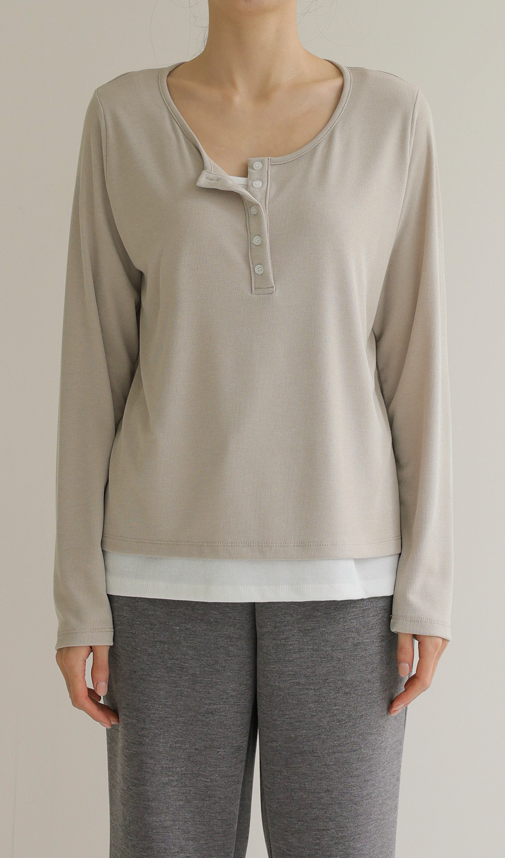가나엘 레이어드 티셔츠 _ 베이지