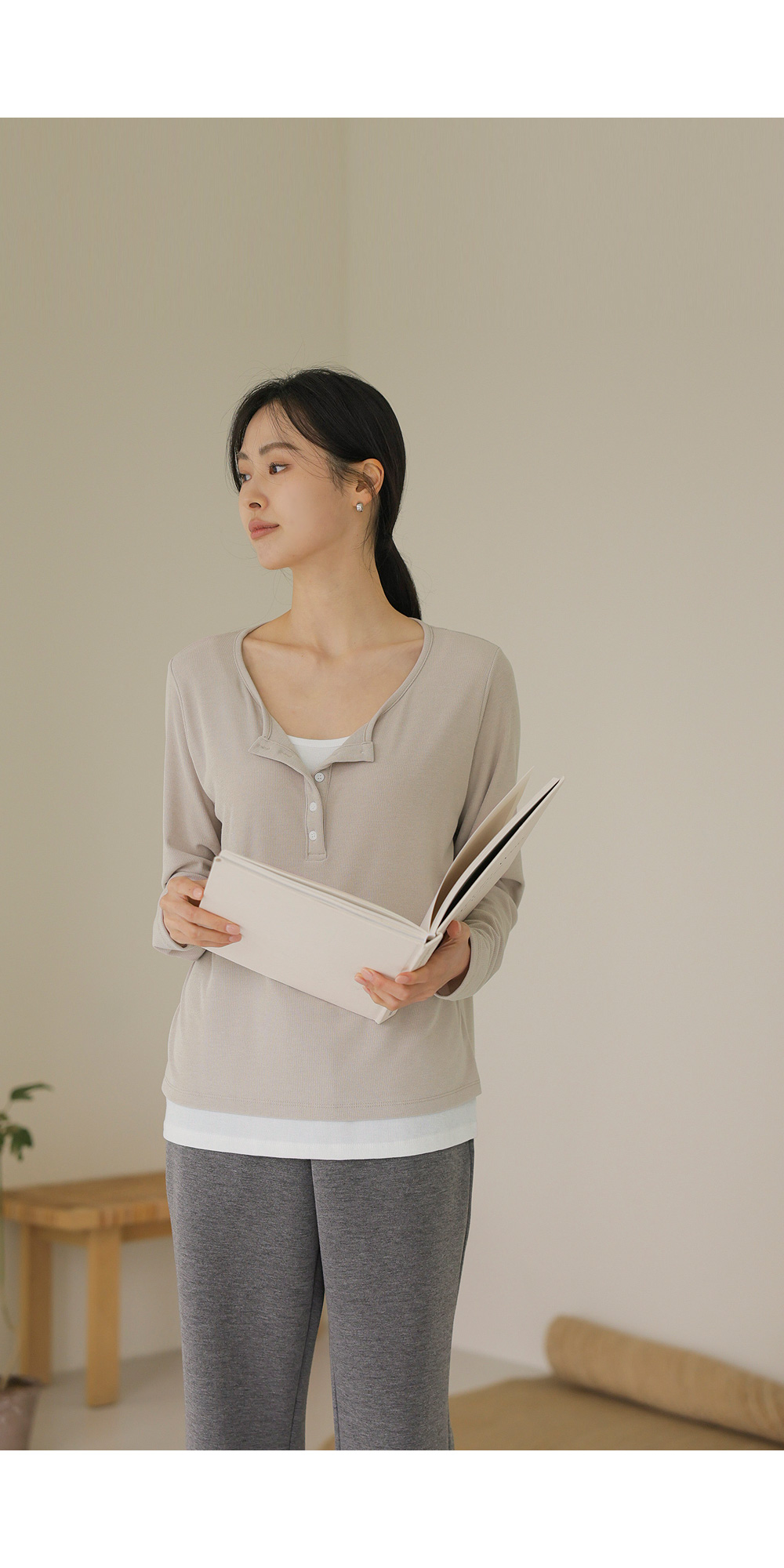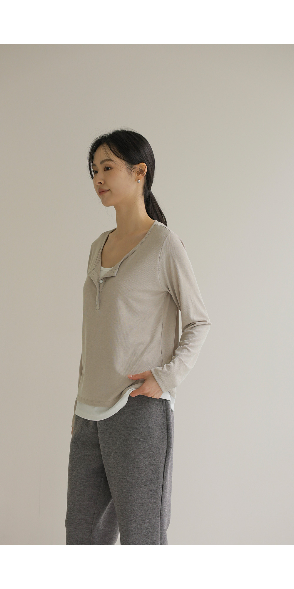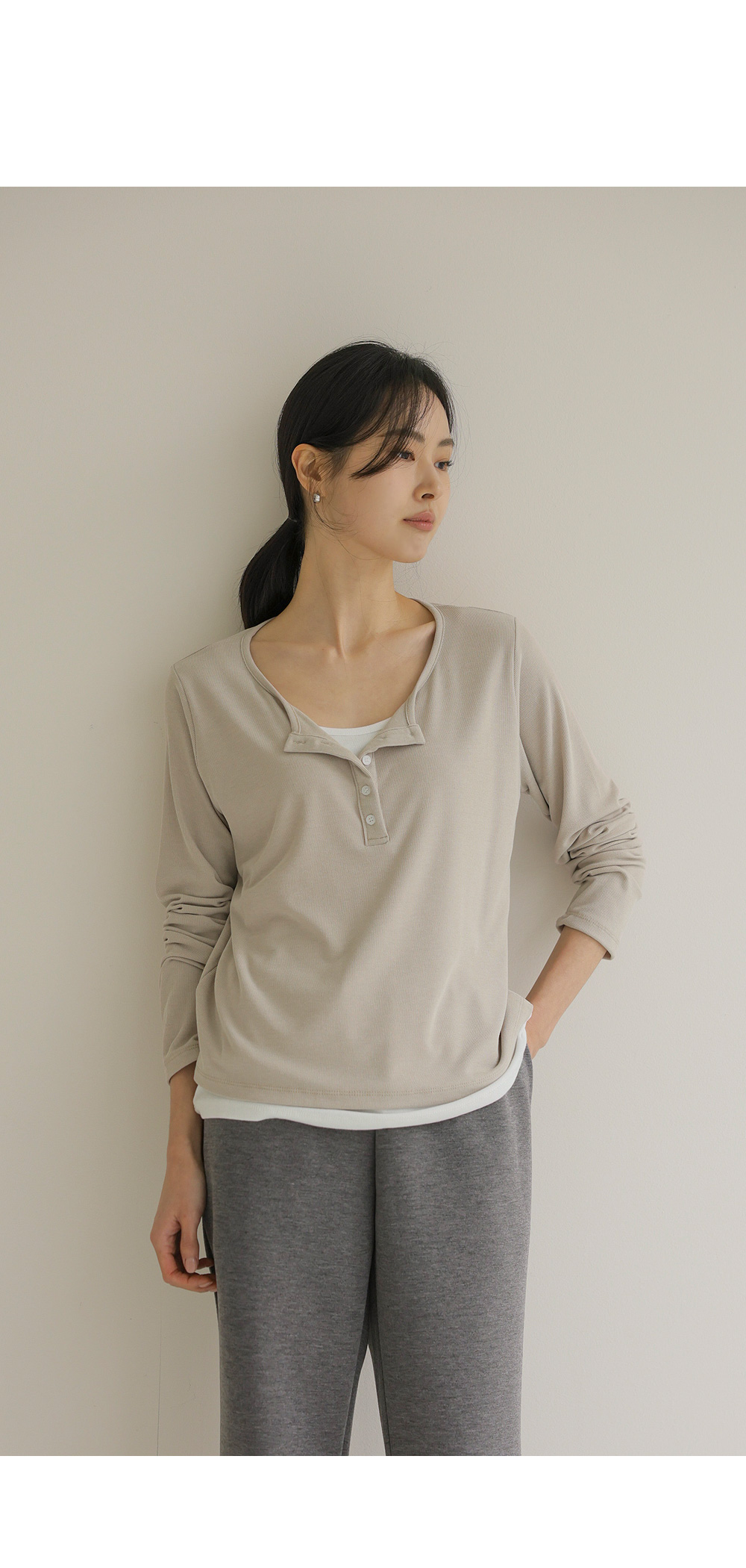 가나엘 레이어드 티셔츠 _ 베이지