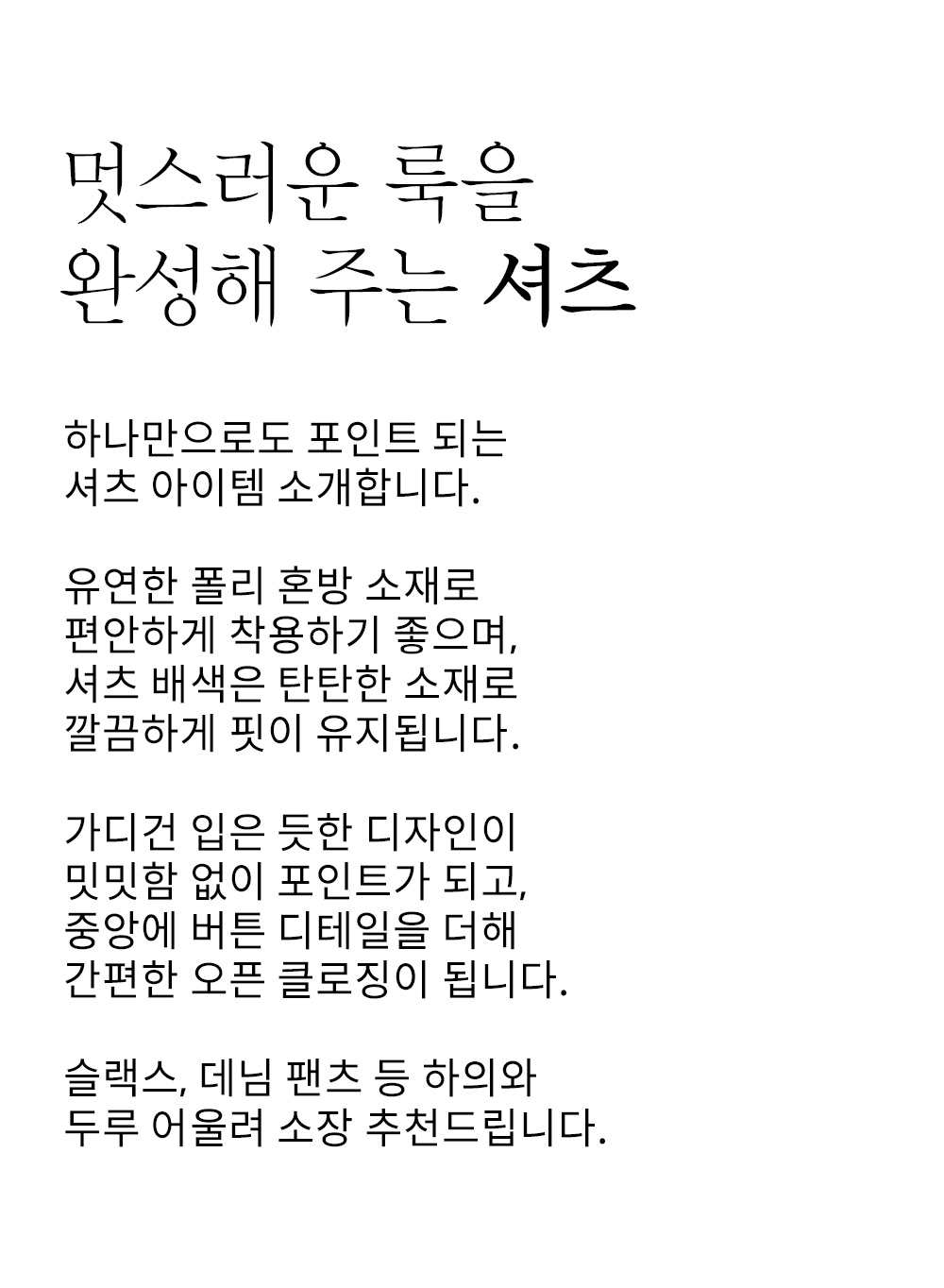 개인의 조명과 모바일, 모니터 환경에 따라 색상차이가 있을 수 있습니다.