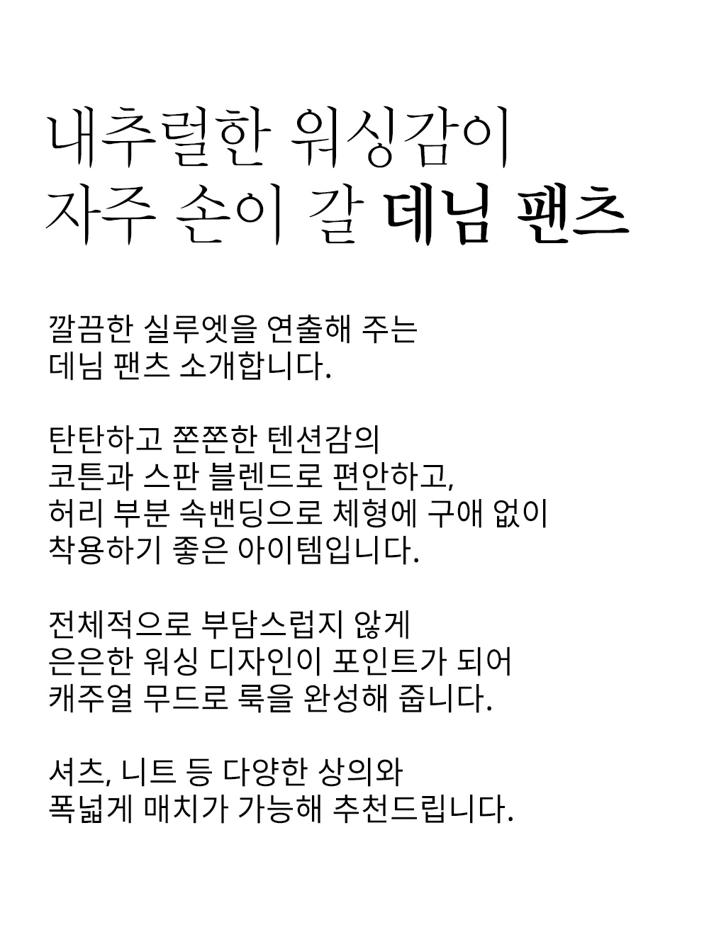 ※데님은 이염의 위험이 있으니 반드시 단독 세탁해주세요.