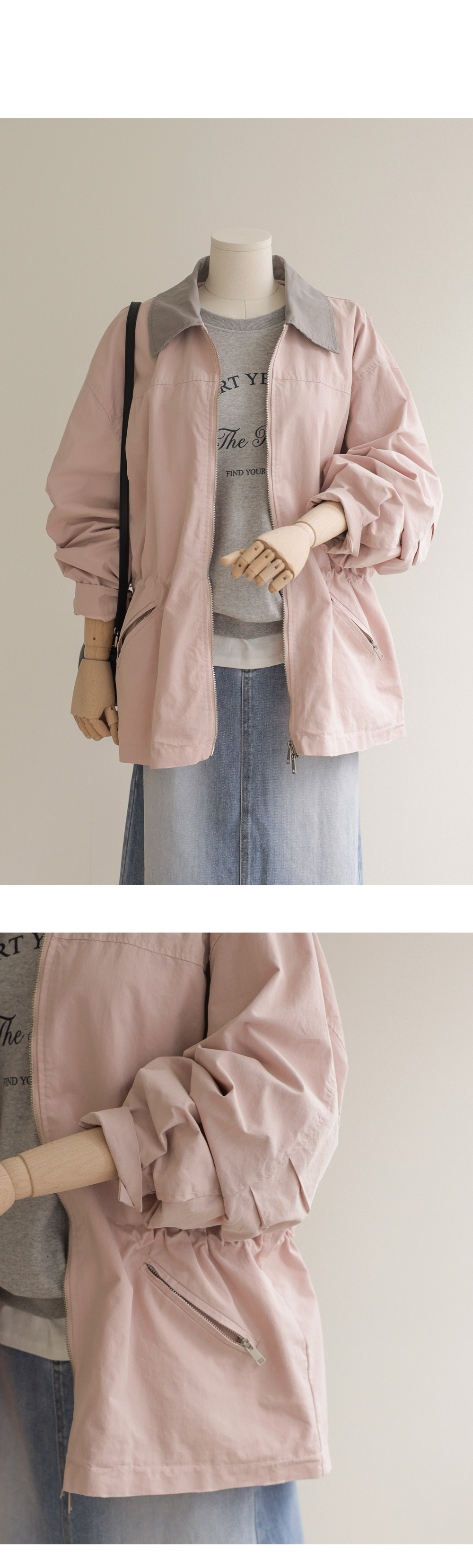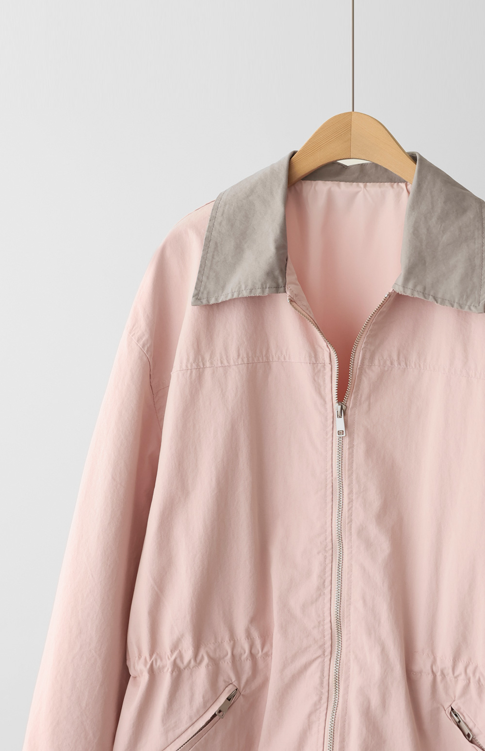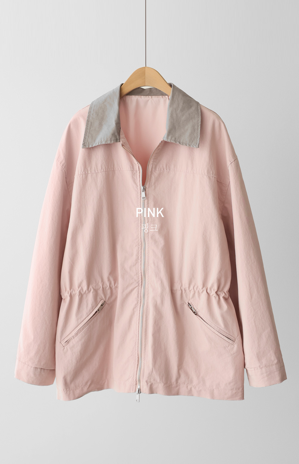 엘리펀 배색카라 자켓 _ 핑크
