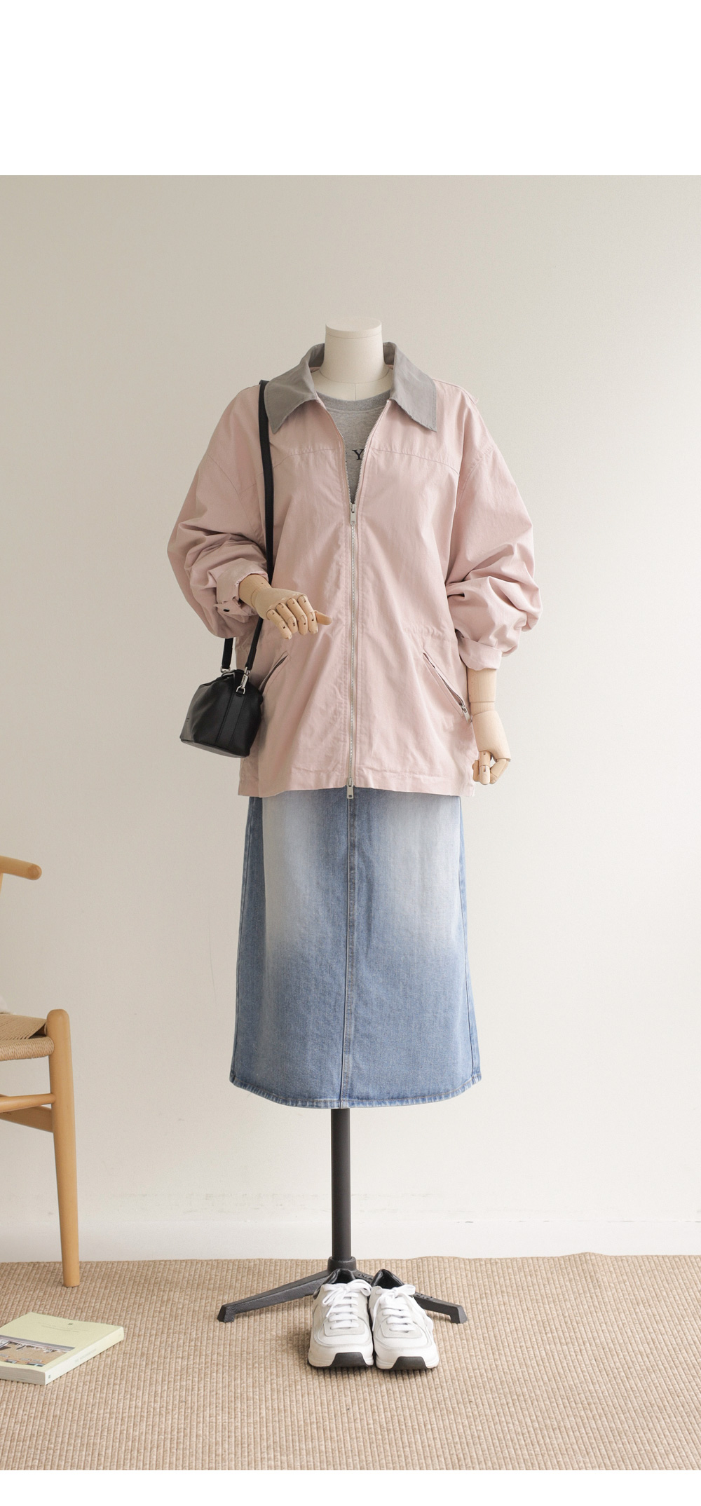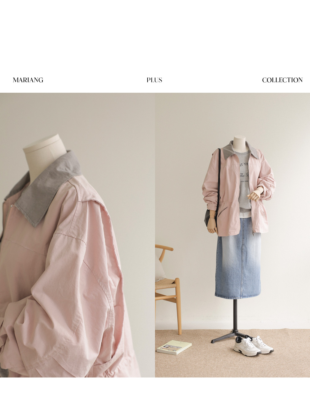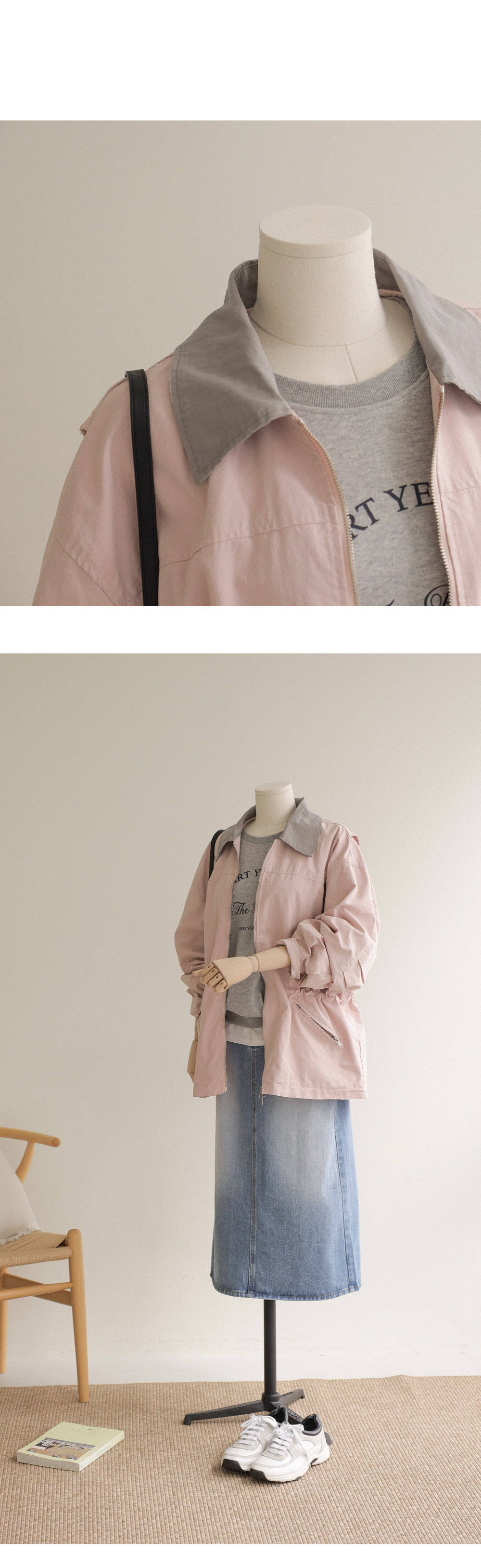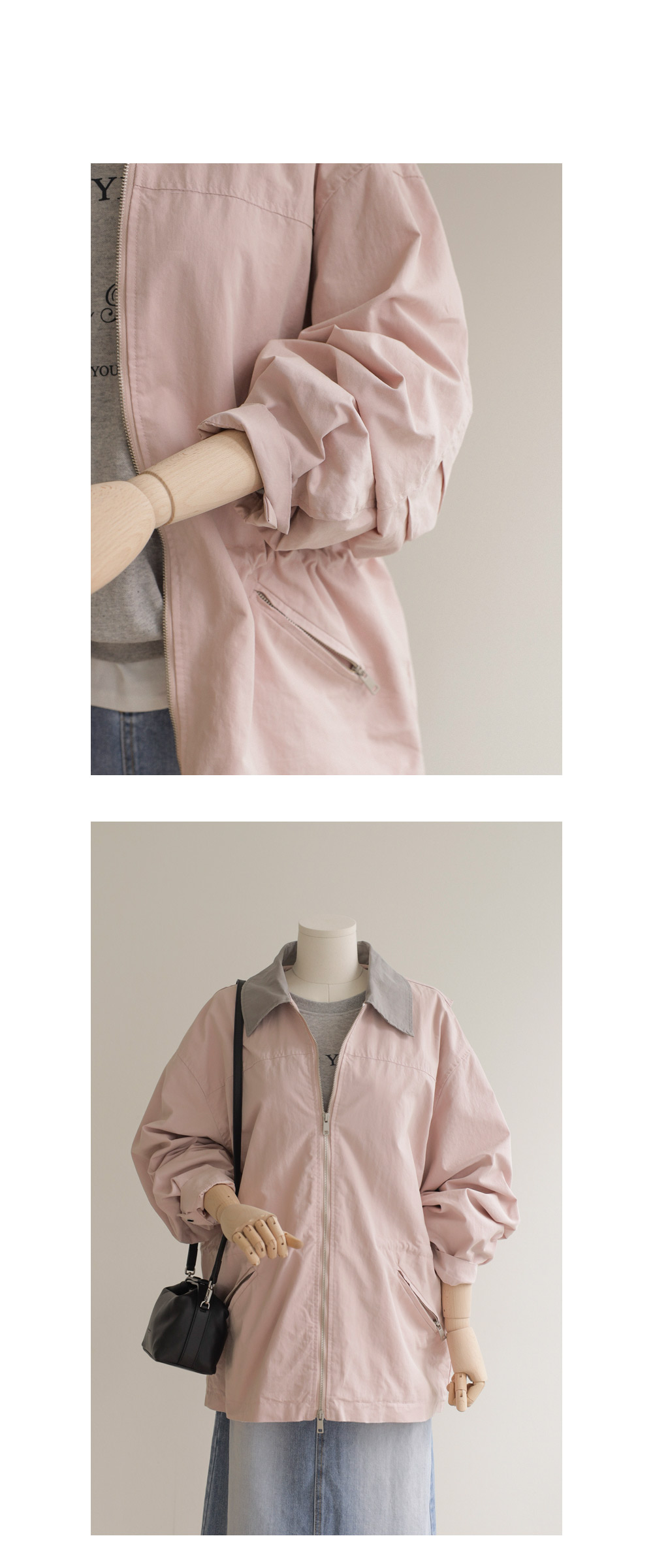 엘리펀 배색카라 자켓 _ 핑크
