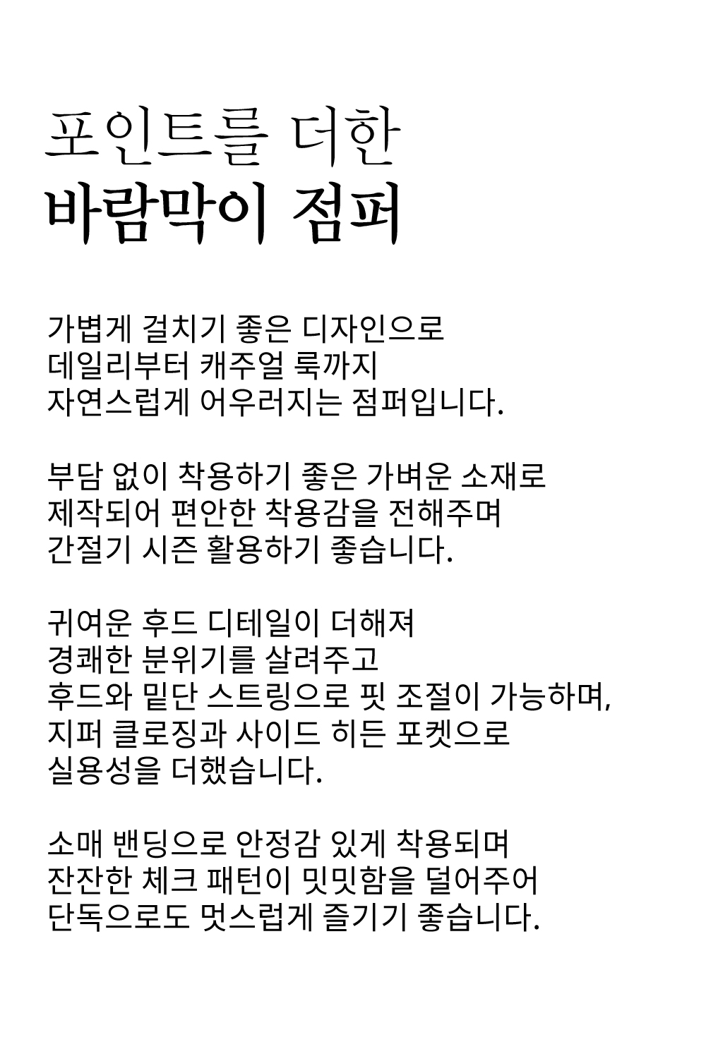 핏감 여유  /   전체길이 힙반  /