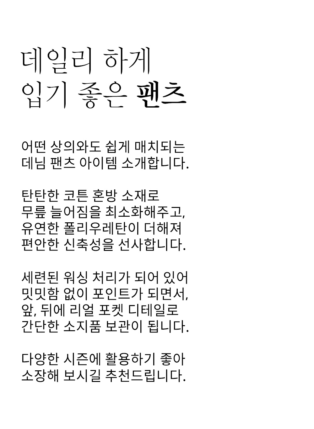 ※데님은 이염의 위험이 있으니 반드시 단독 세탁해주세요.