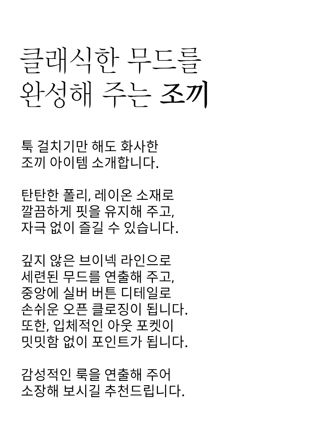 ※첫 세탁은 드라이클리닝을 권장합니다.