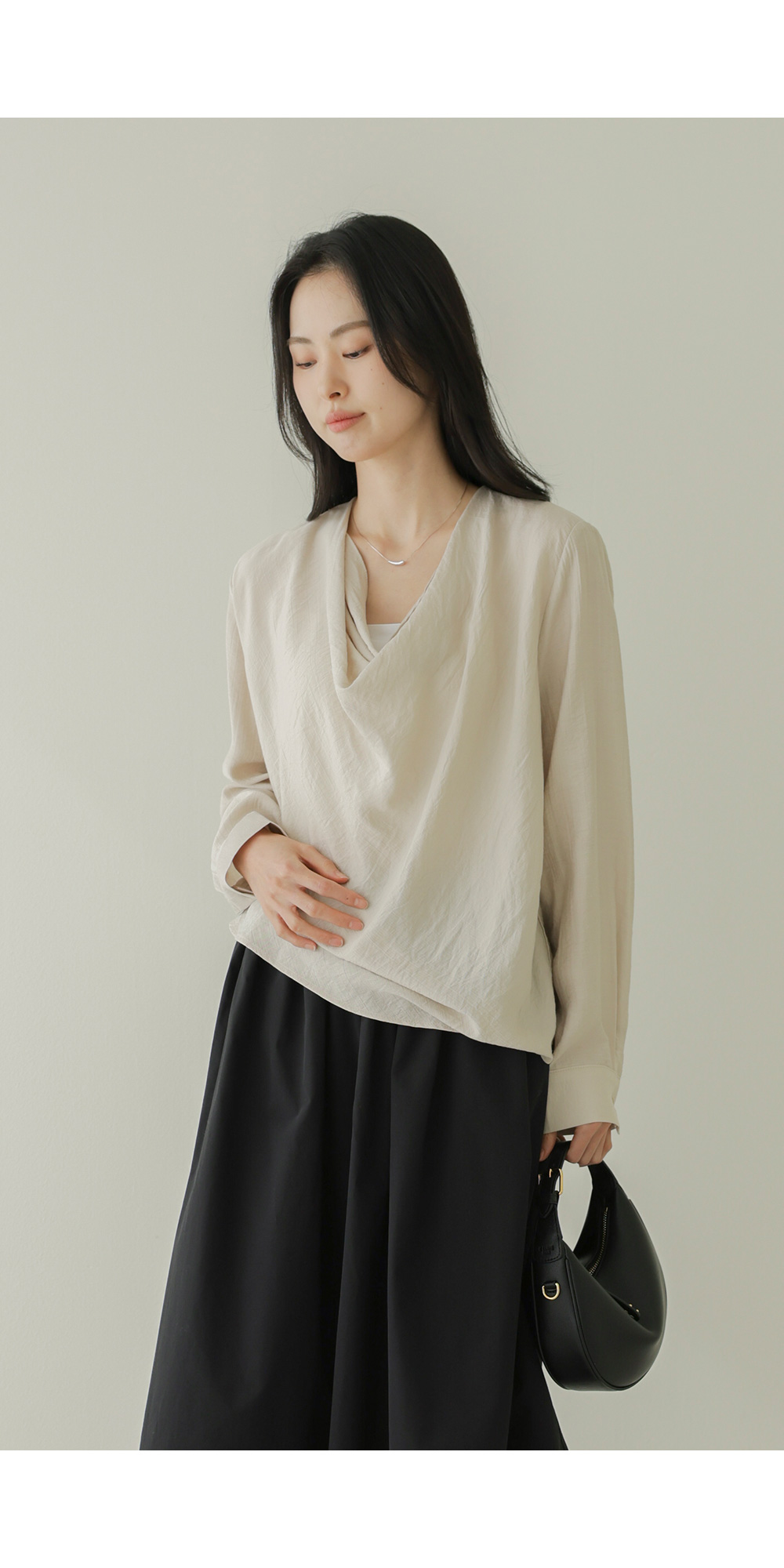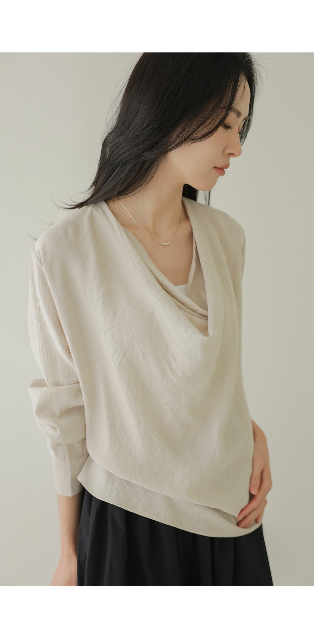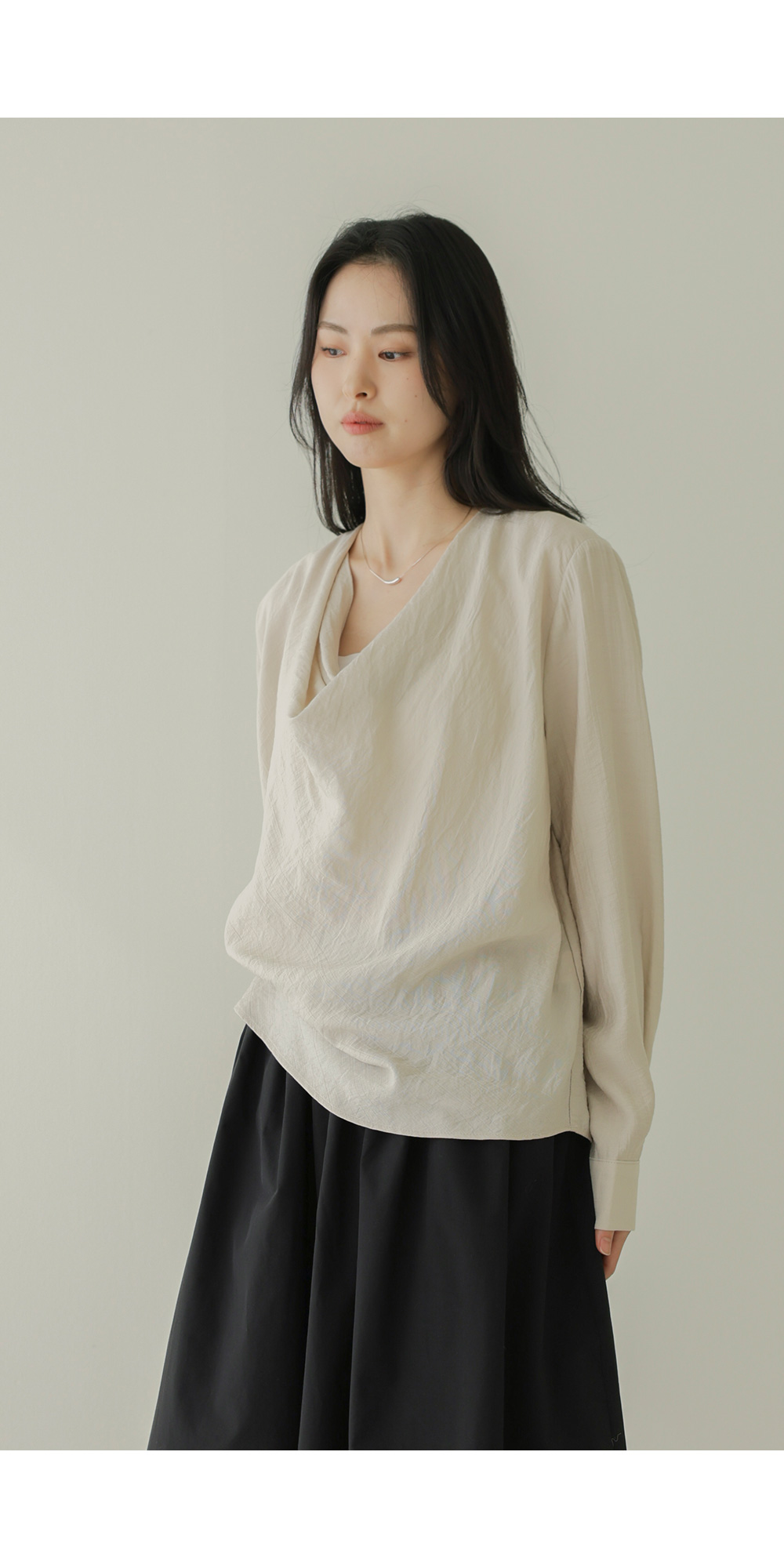 네리아 카울넥 블라우스 _ 베이지