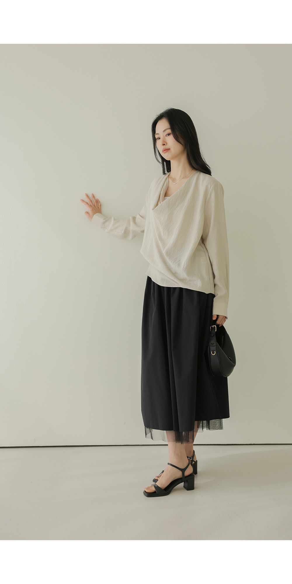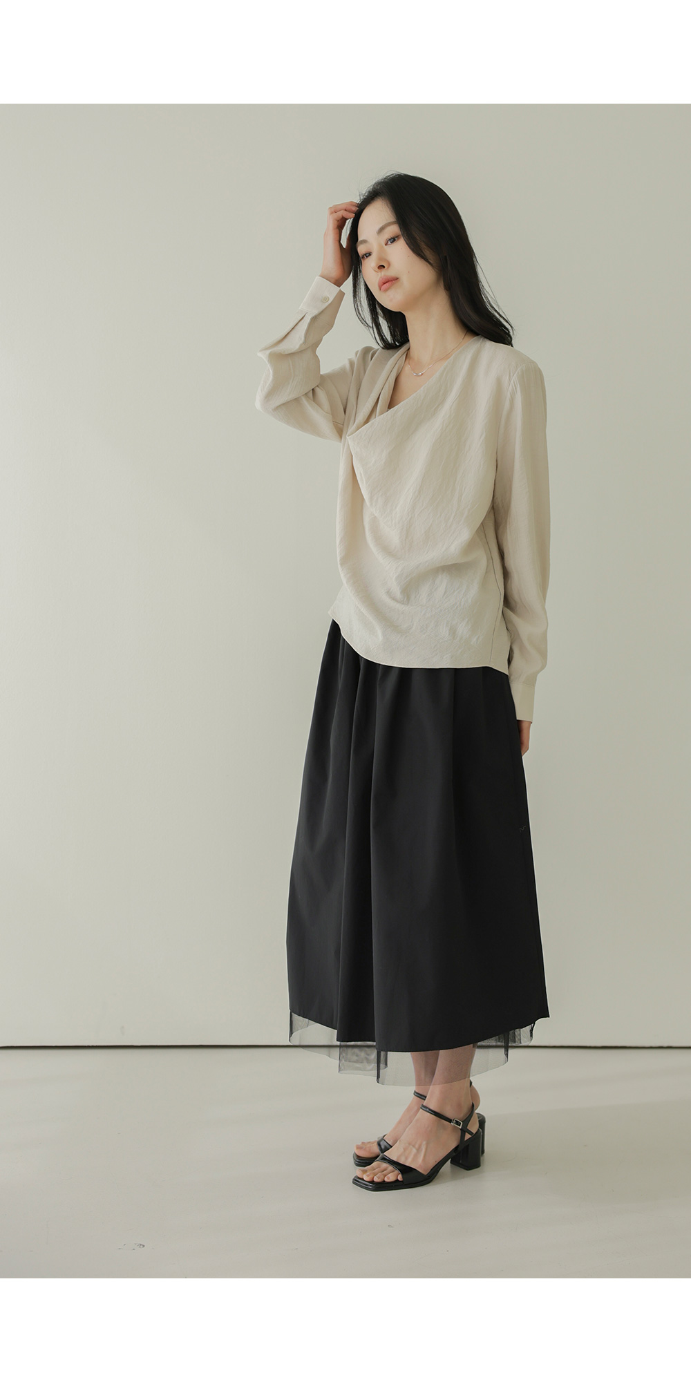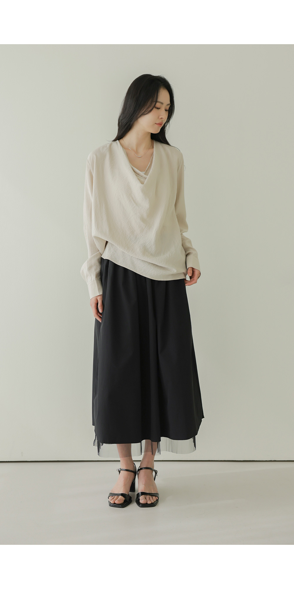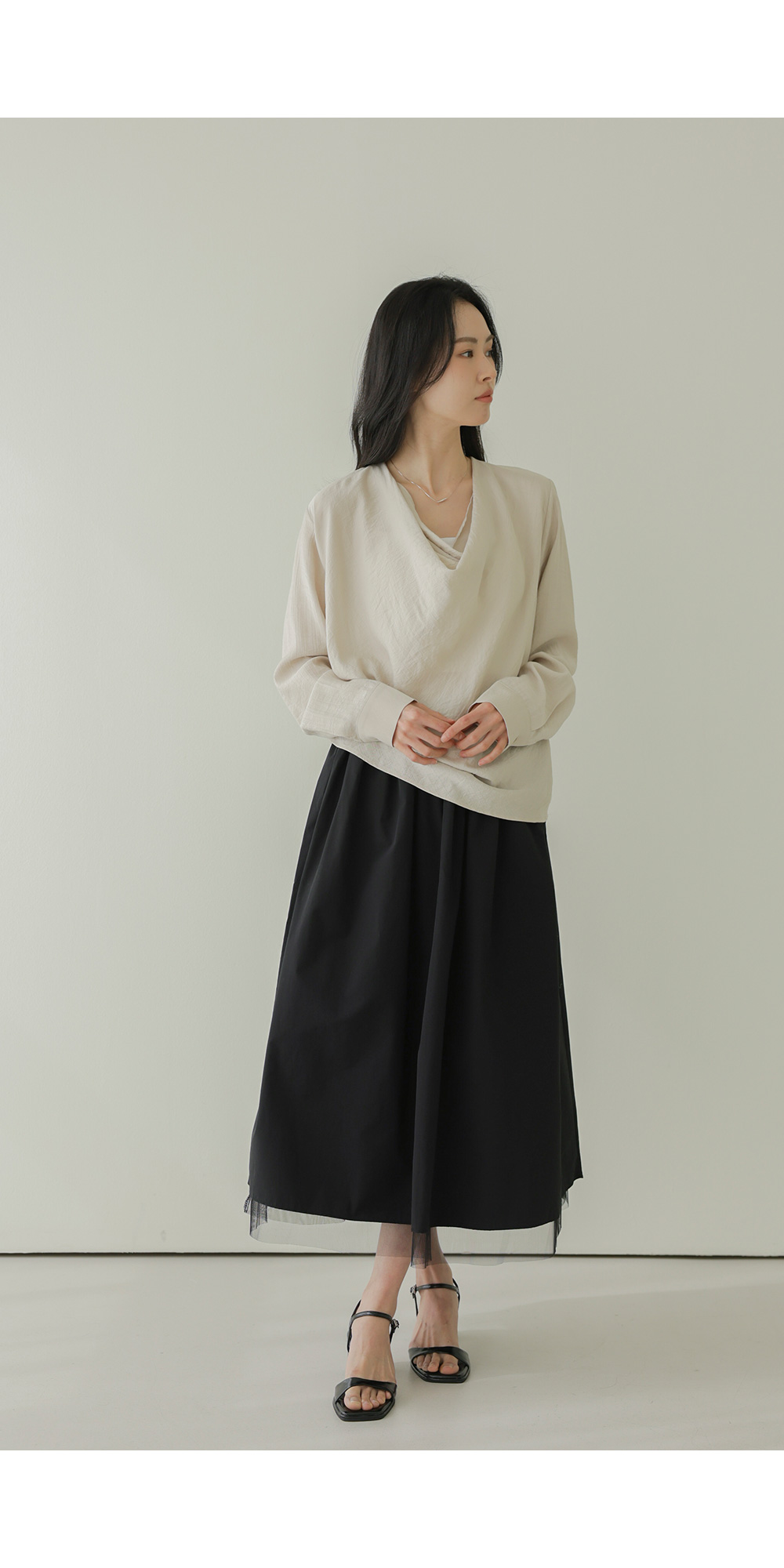 네리아 카울넥 블라우스 _ 베이지