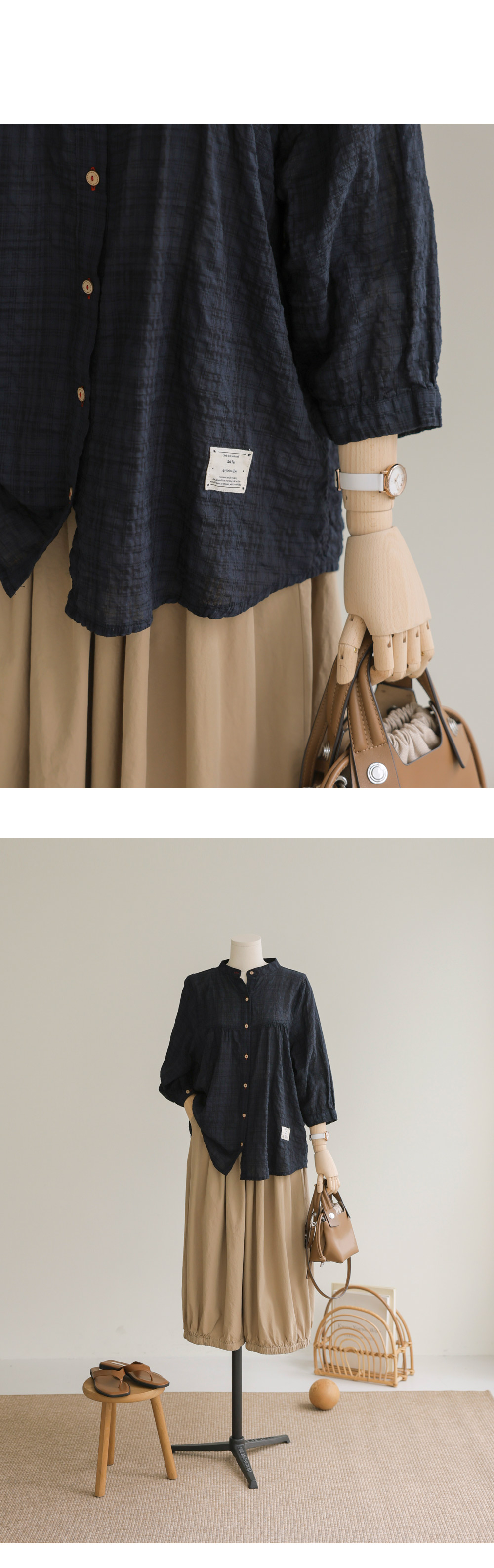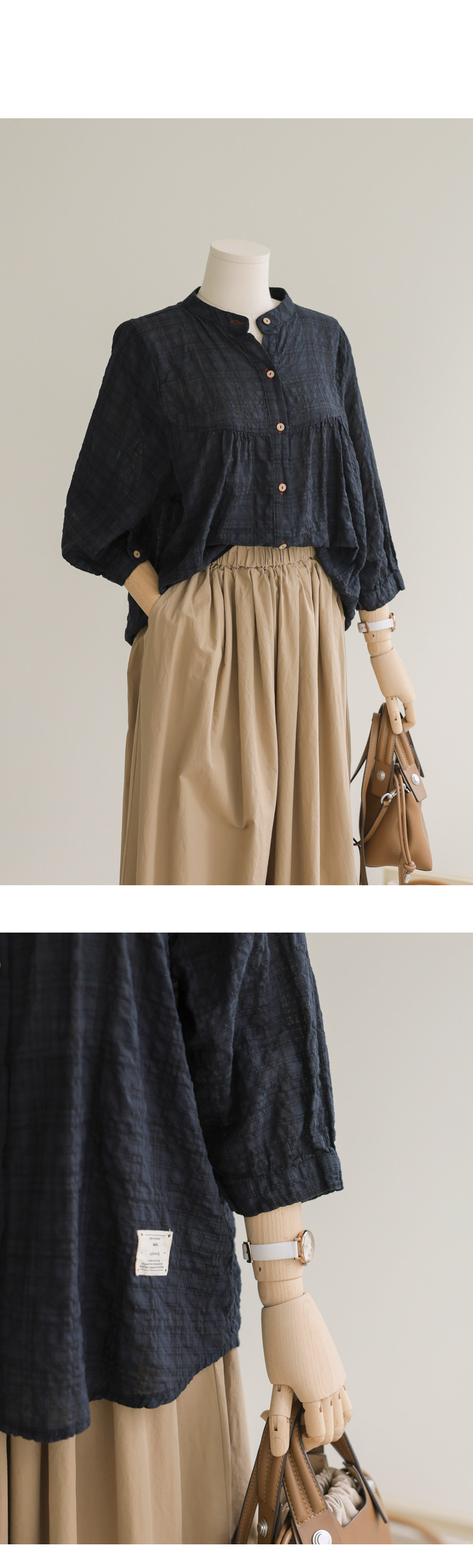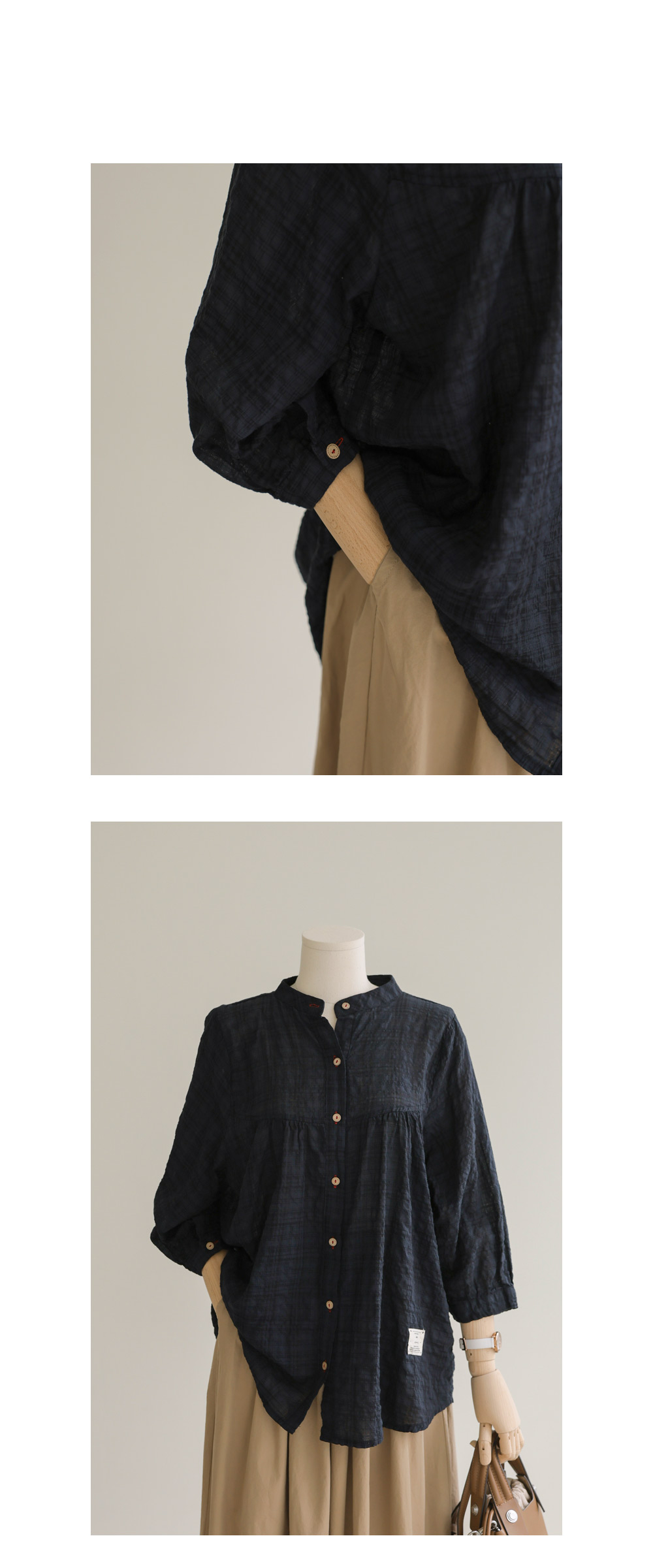 아로미 7부 블라우스 _ 네이비