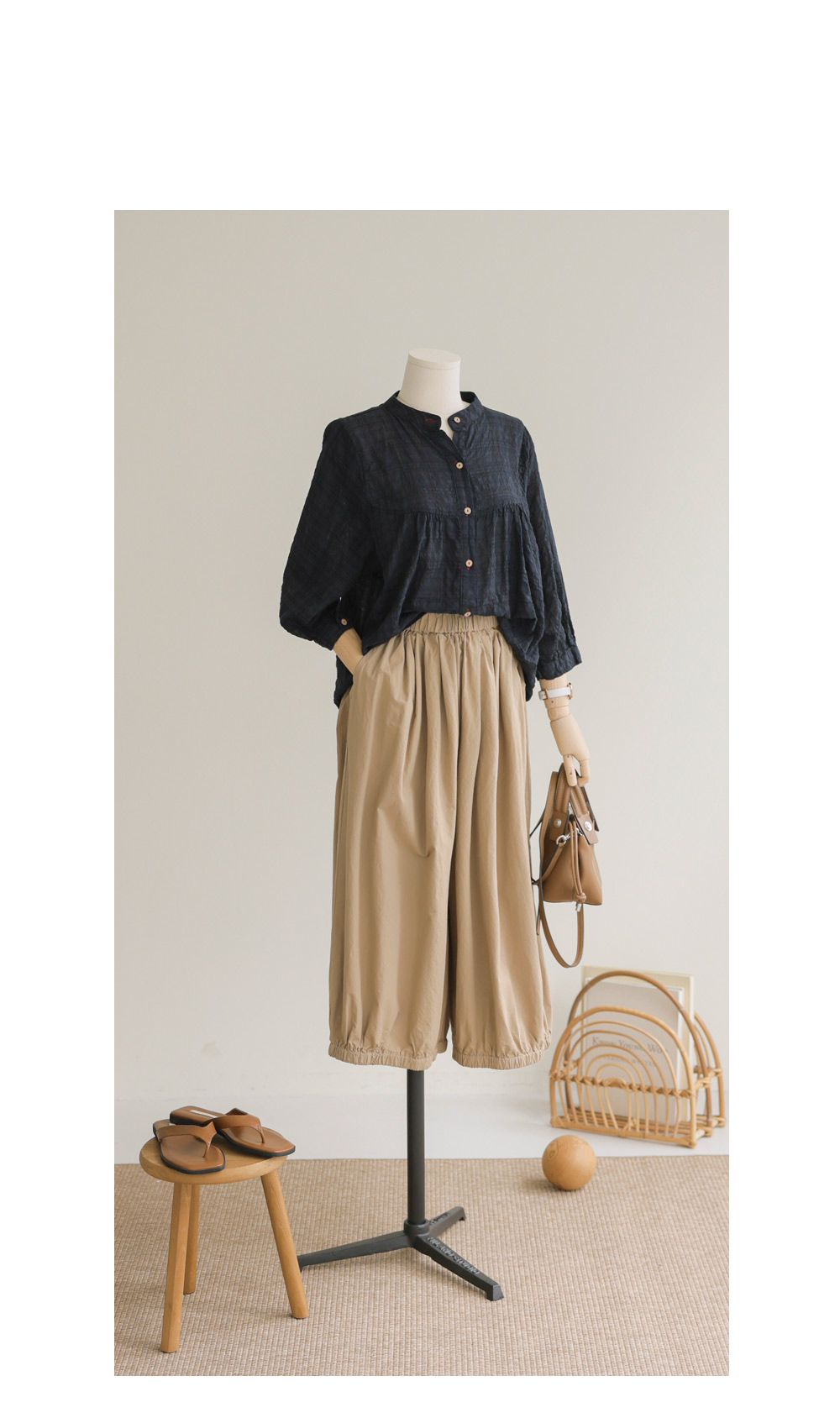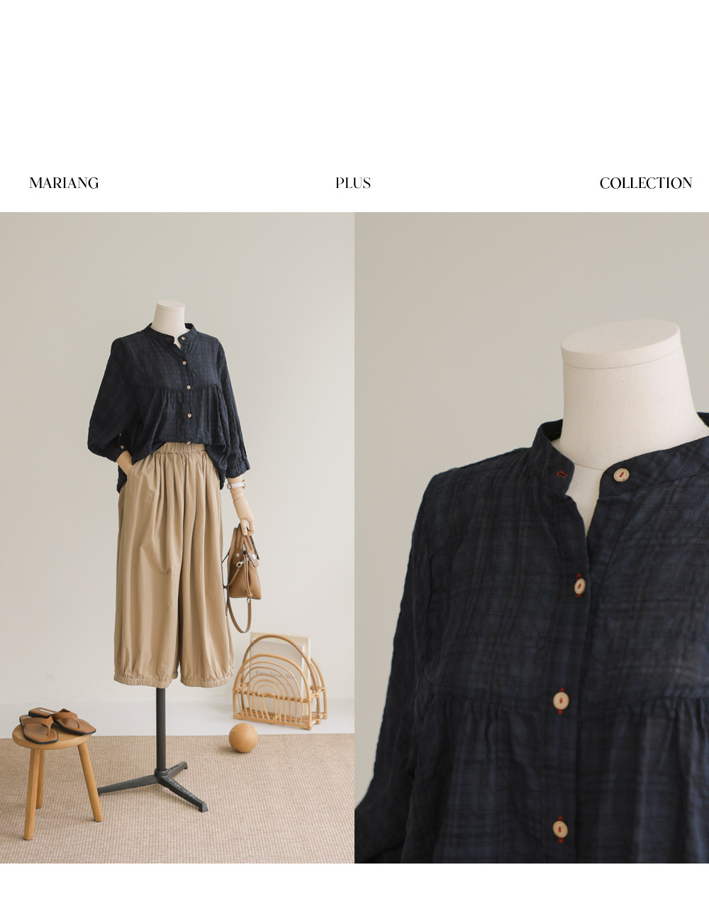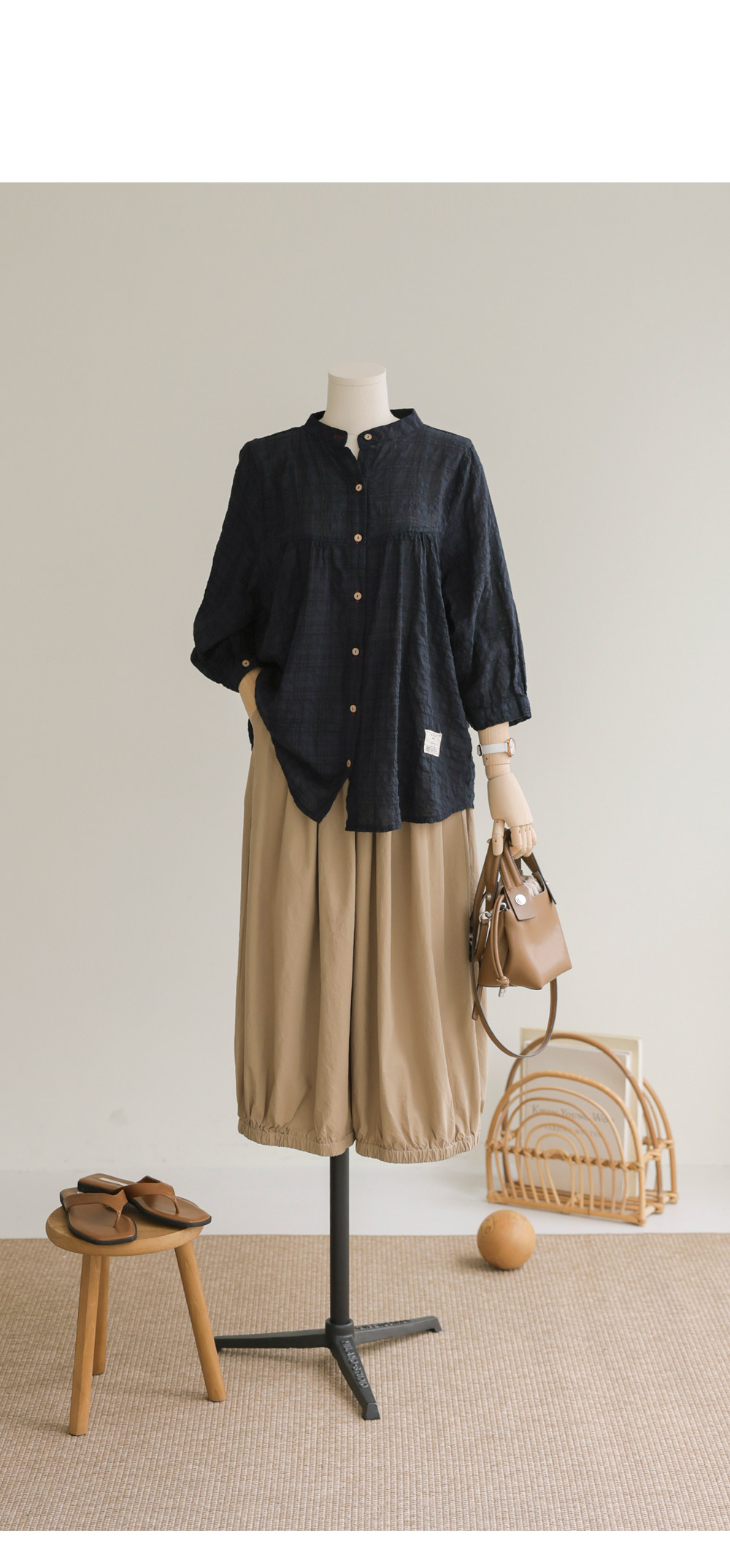 아로미 7부 블라우스 _ 네이비