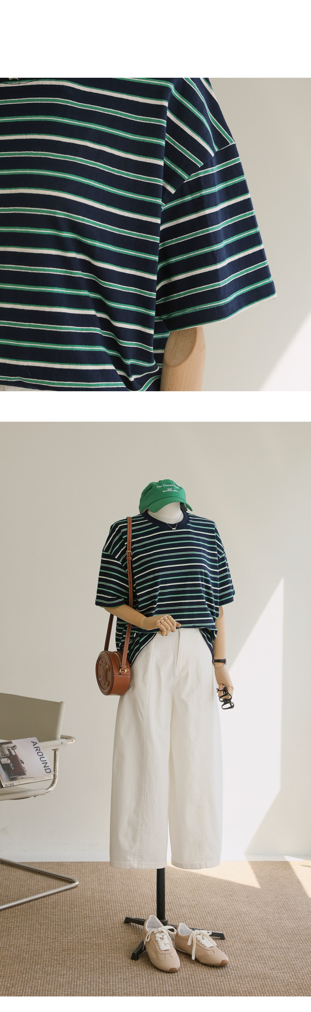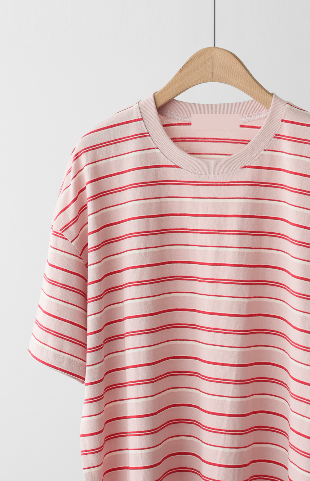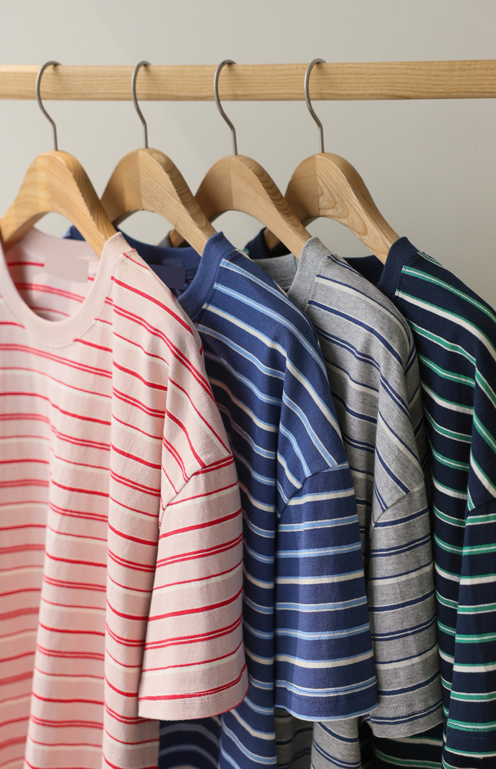 데일리 룩에 포인트가 되어주는 스트라이프 패턴은 사계절 내내 사랑받는 스테디셀러 아이템이죠. 이번에 소개해 드릴 티셔츠는 톡톡 튀는 컬러 배색이 돋보이는 반팔 티셔츠예요.