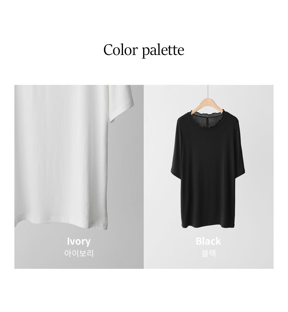 티셔츠 한 장으로 이렇게 여성스러워질 수 있다는 게 정말 놀라워요. 피부에 실크 같은 매끈한 터칭감의 소재가 몸을 부드럽게 감싸주는데, 텐션감이 좋아서 활동량이 많은 날에도 전혀 답답함이 없답니다. 한번 입어보시면 이 부드러운 착용감에 컬러별로 소장하고 싶어지실 거예요!