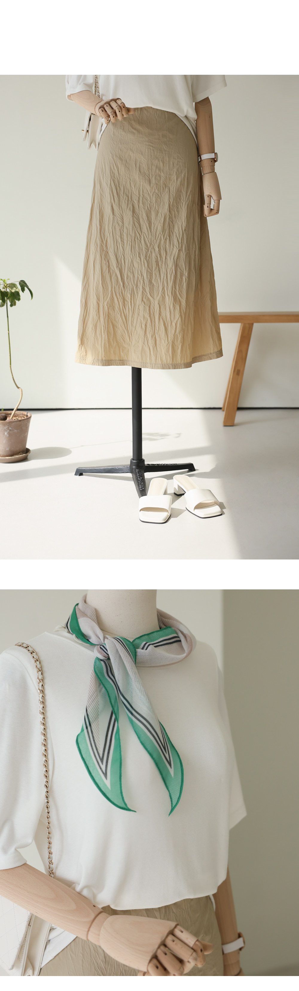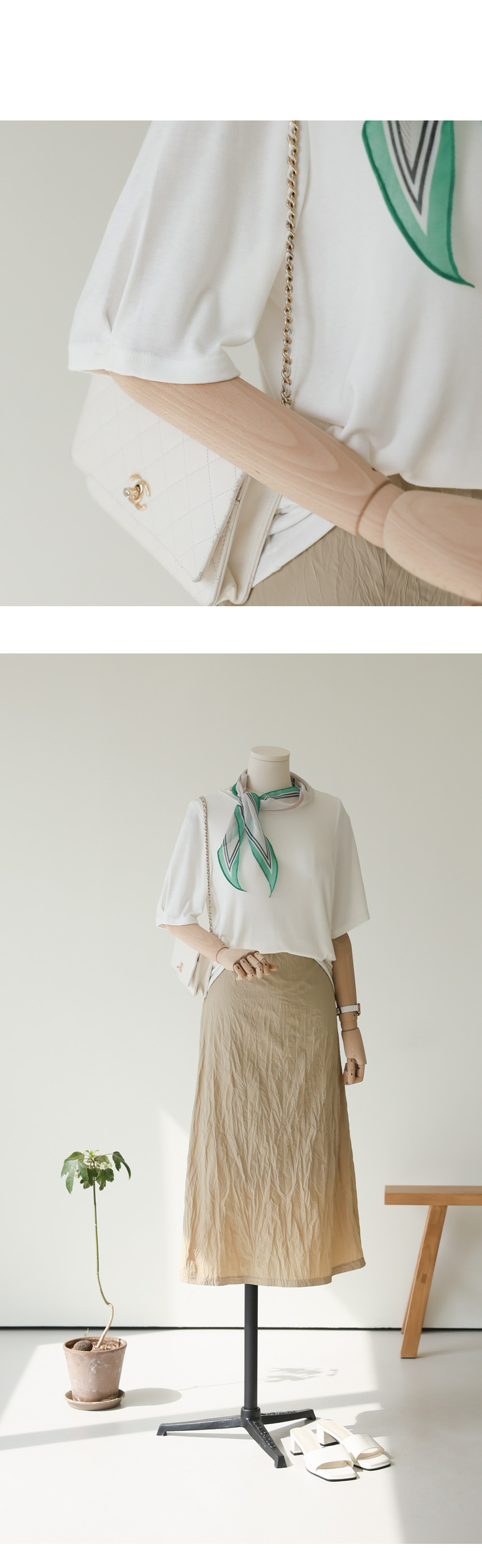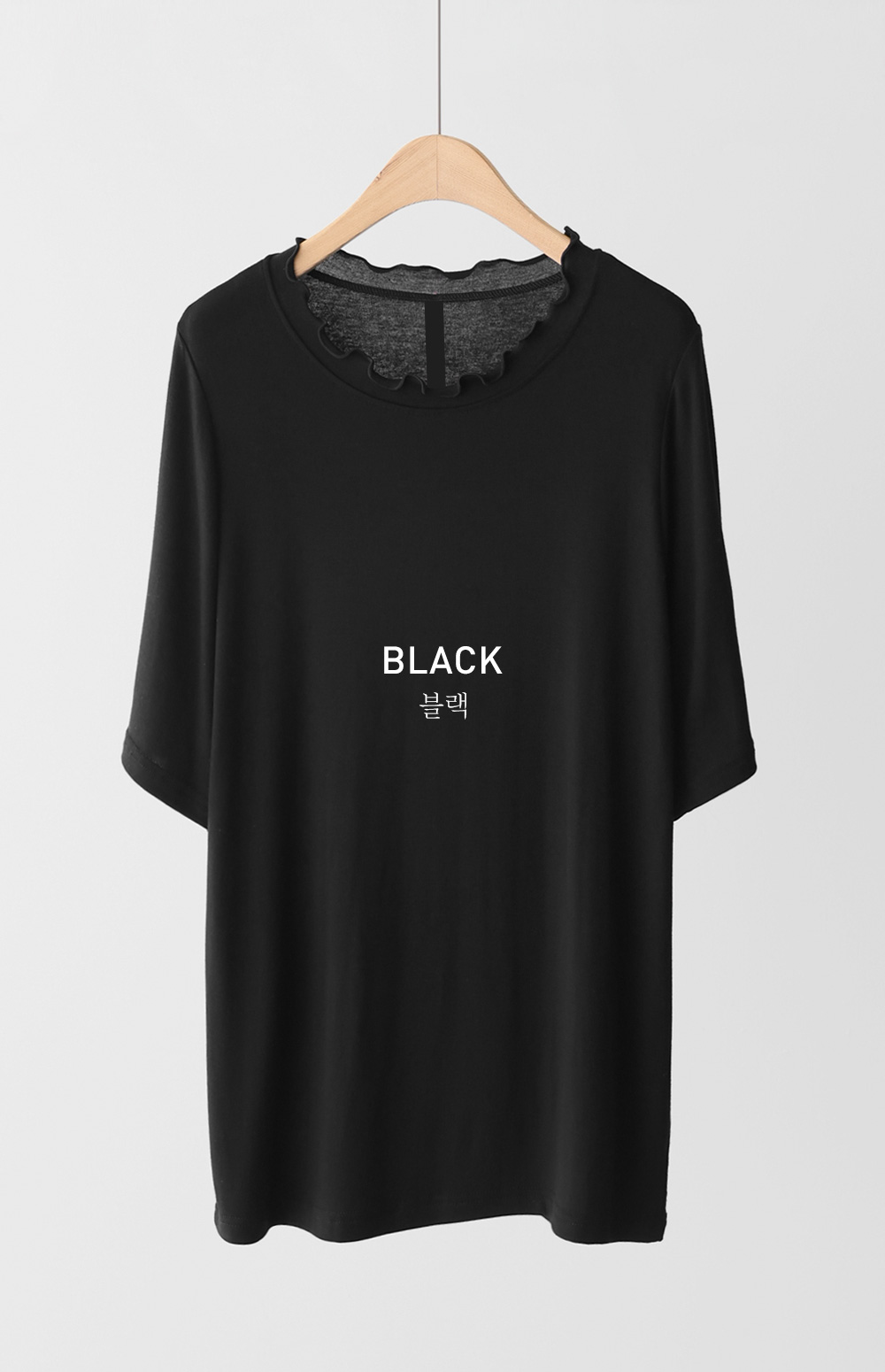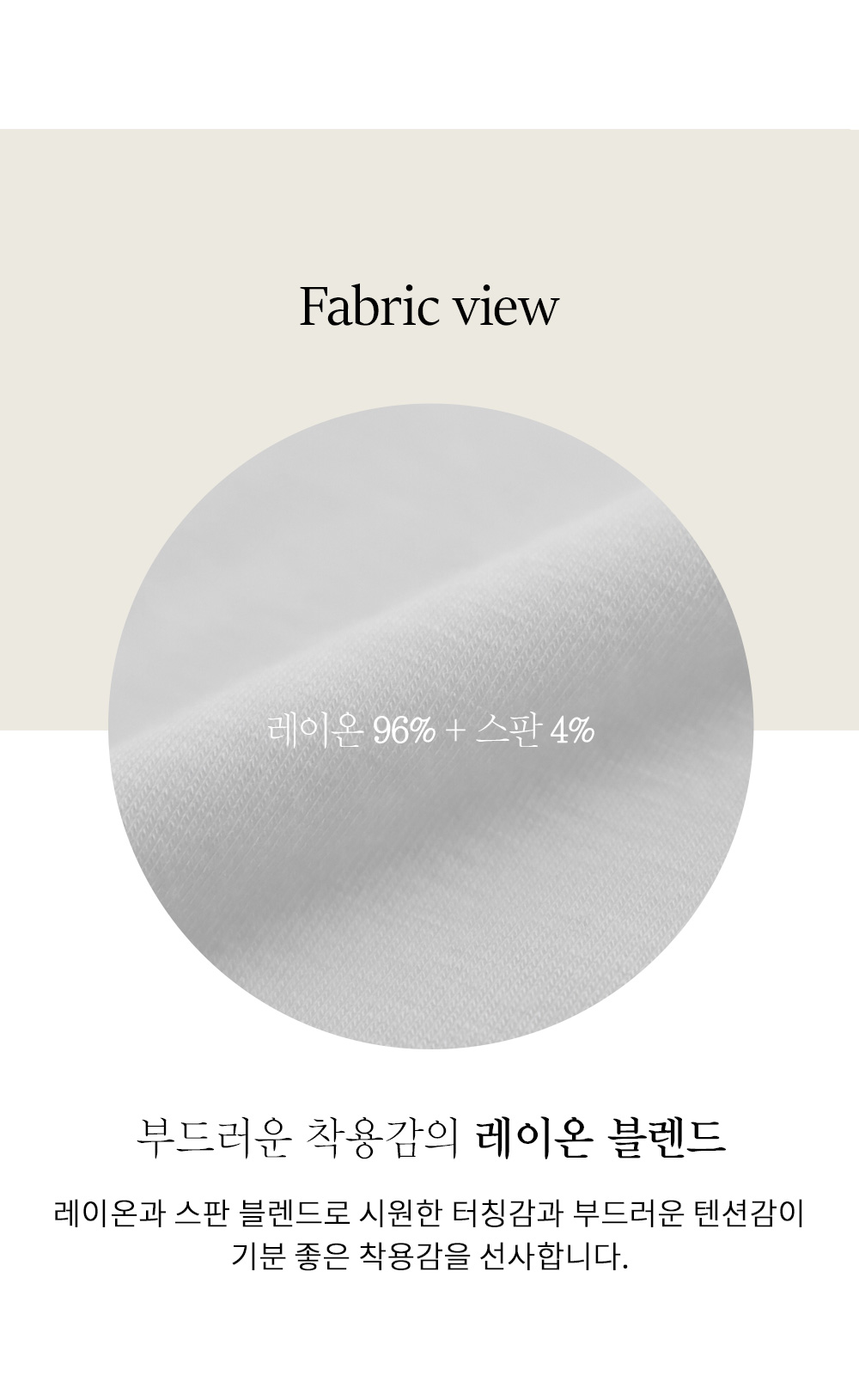 소매 끝단 역시 깔끔하게 마감되어 팔뚝 라인을 자연스럽게 가려주고, 소재 자체가 가진 우수한 텐션감이 몸의 움직임에 따라 유연하게 늘어나 불편함 없는 아웃핏을 완성해 줘요. 밋밋한 티셔츠가 지겨우셨던 분들께 은은한 광택과 프릴의 조화를 꼭 추천드리고 싶어요.