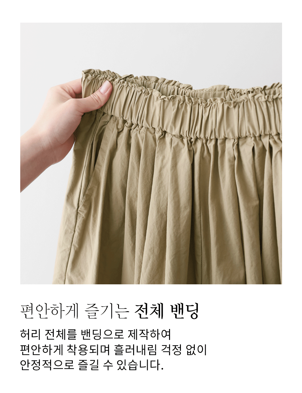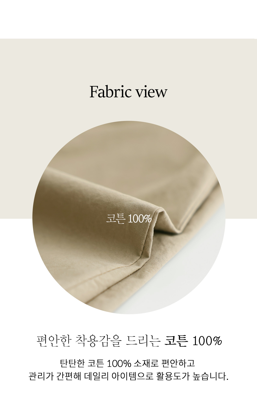 피부에 닿는 느낌이 부드러운 코튼 소재를 사용했어요. 신축성이 없는 소재임에도 불구하고 워낙 여유 있는 패턴으로 제작되어 답답함이 전혀 없구요. 오히려 이 적당한 두께감과 탄탄함이 배기 핏의 실루엣을 힘 있게 잡아주어, 하루 종일 착용해도 형태 변형 없이 깔끔한 아웃핏을 보여준답니다. ![]() 밴딩 가이드 보러가기→ ![]() MD가 답하는 안심 Q&A