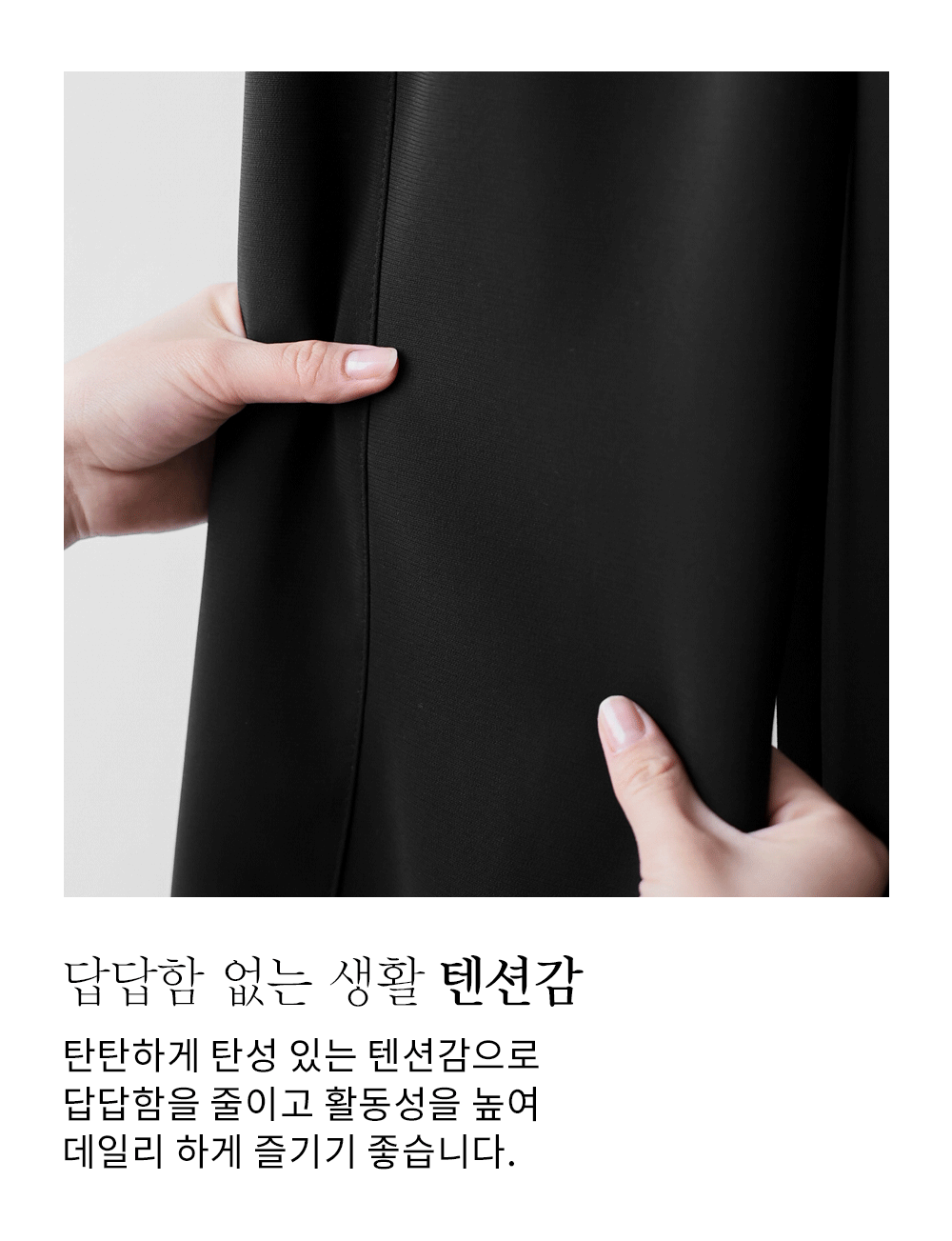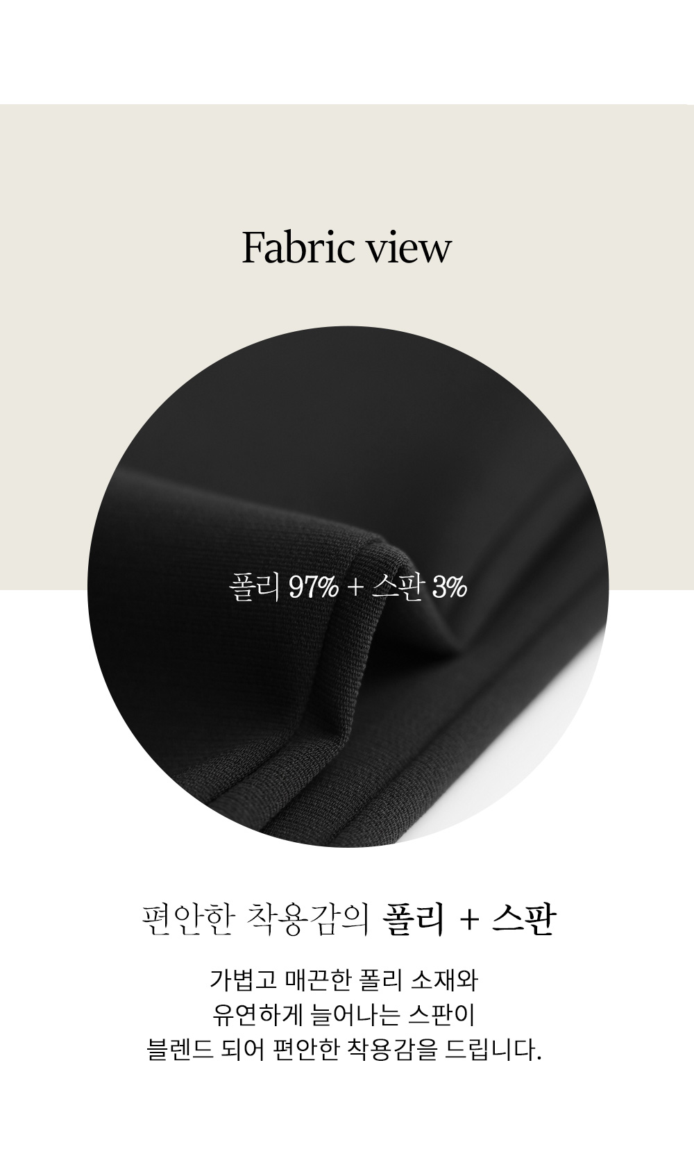 폴리에 스판이 혼방되어 탄탄한 소재감과 기분 좋은 텐션감이 느껴지는 소재예요. 얇지 않은 적당한 두께감으로 제작되어 실루엣을 깔끔하게 딱 잡아준답니다. 매끄러운 터칭감이 피부에 닿을 때 자극 없이 편안하게 감싸주며, 오랫동안 입어도 늘어짐 걱정 없이 예쁜 핏을 유지해 주는 완성도 높은 소재랍니다. ![]() 밴딩 가이드 보러가기→ ![]() MD가 답하는 안심 Q&A