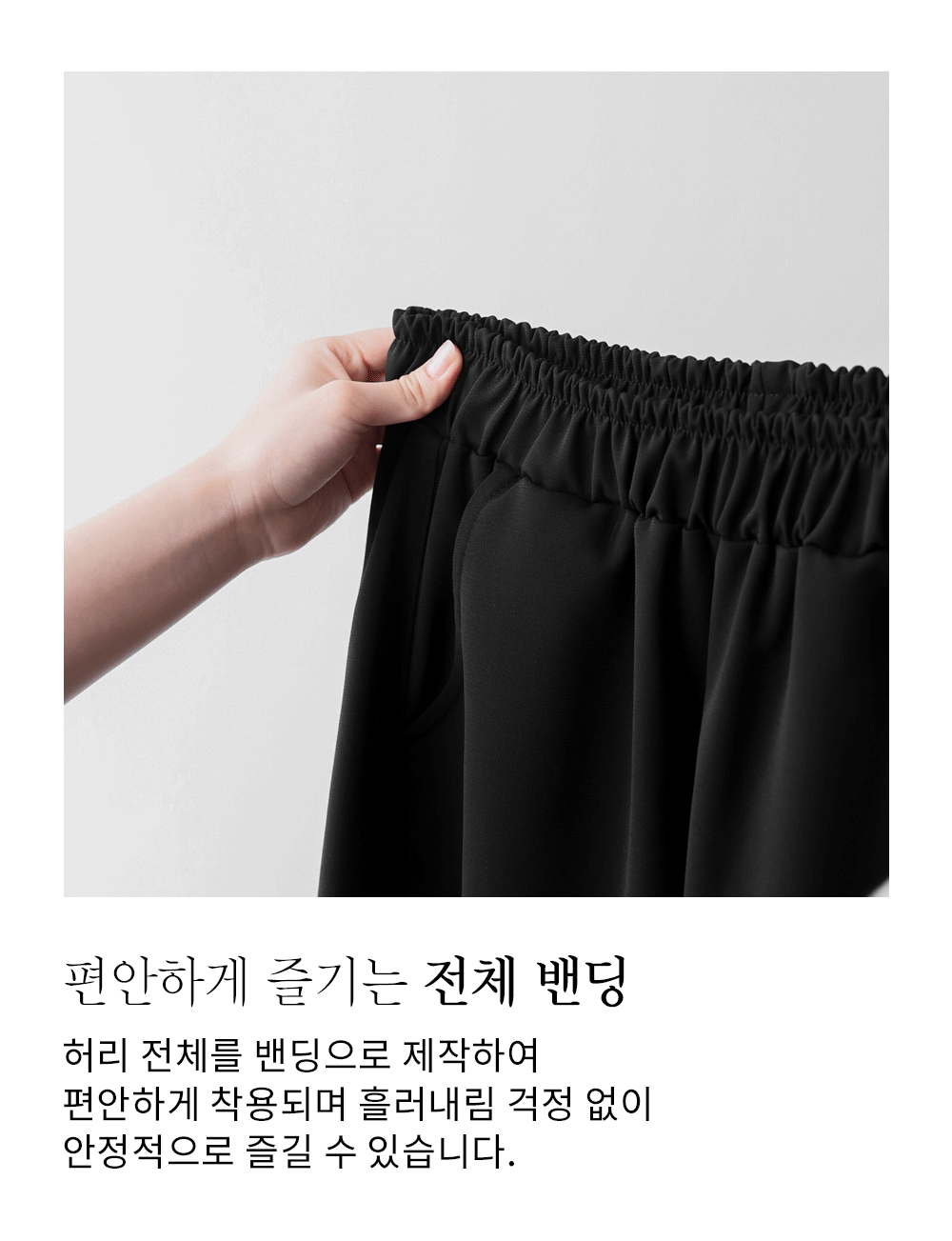 심플하면서도 스타일리시한 무드를 선사하는 팬츠 아이템을 소개해 드려요. 힙부터 허벅지까지는 여유 있게 낙낙하고 밑단으로 갈수록 자연스럽게 좁아지는 배기 핏 디자인으로, 체형 고민은 쏙 가려주고 트렌디한 실루엣을 연출해 주는데요. 전체 밴딩 처리로 허리 배김 없이 하루 종일 편안한 착용감을 선사한답니다.