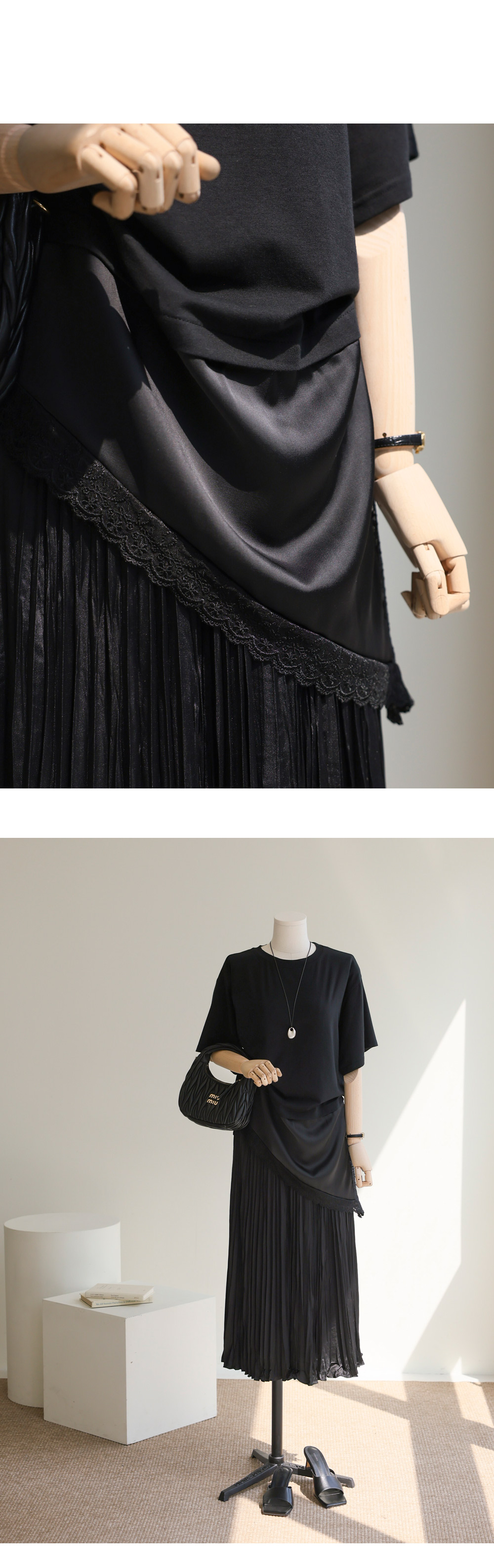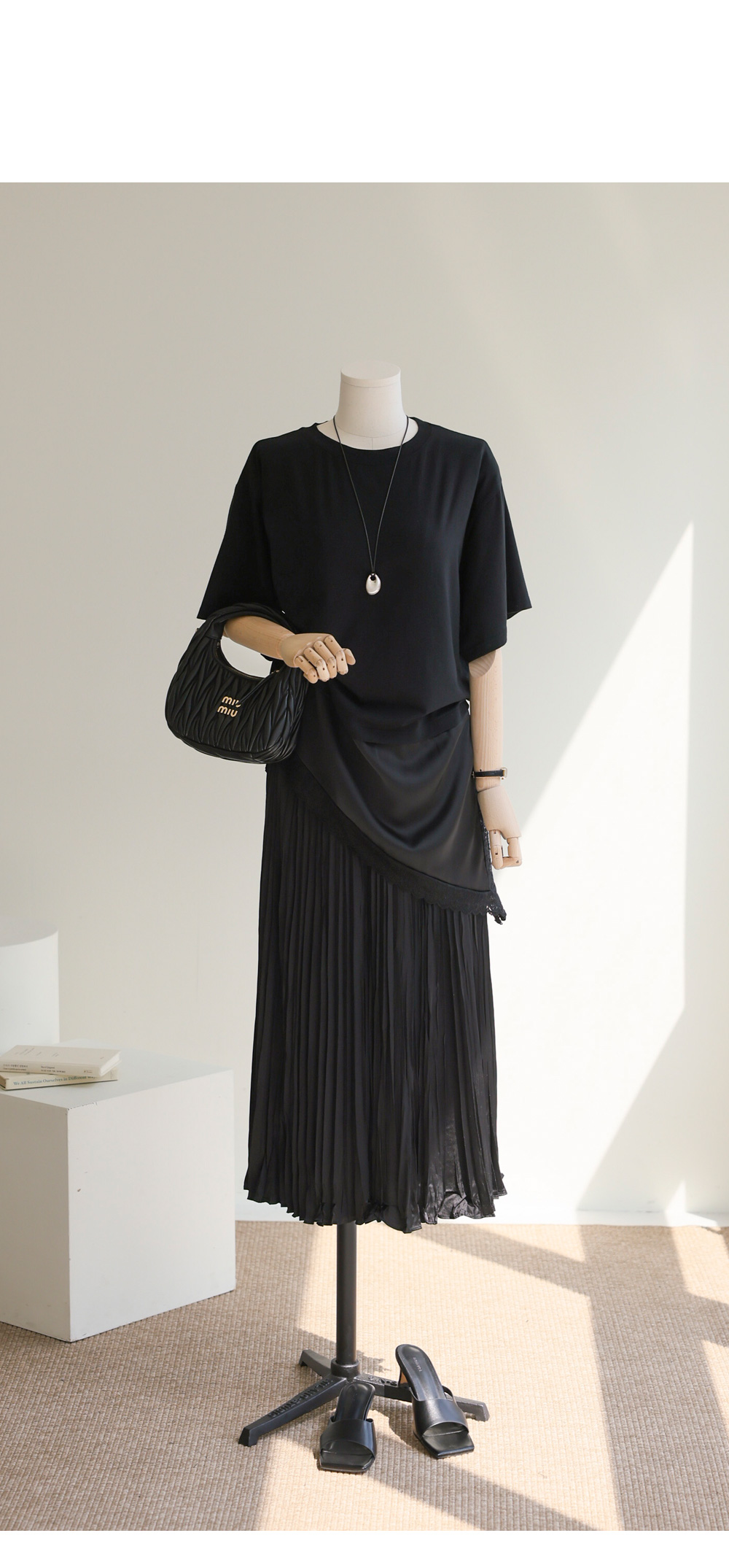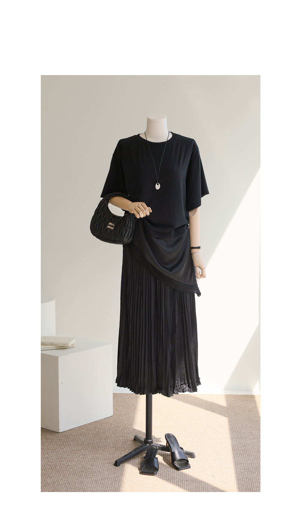피부에 닿는 바디 부분은 부드러운 터칭감과 기분 좋은 신축성을 가진 코튼과 스판 소재를 혼방하여 장시간 착용에도 몸에 붙지 않고 쾌적함을 유지해 줘요. 밑단의 배색 부분은 탄탄하면서도 매끄러운 실키함이 느껴지는 폴리소재 블렌드로 구김 걱정을 덜어주며 은은하게 빛나는 광택감이 전체적인 룩의 품격을 한 층 더 높여준답니다. ![]() MD가 답하는 안심 Q&A