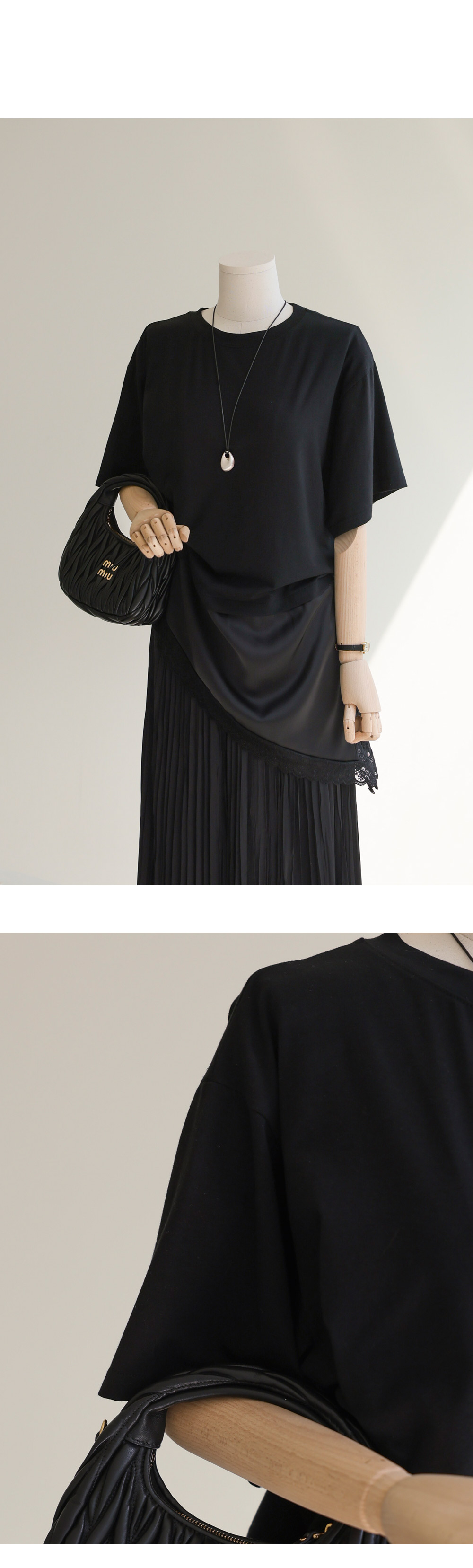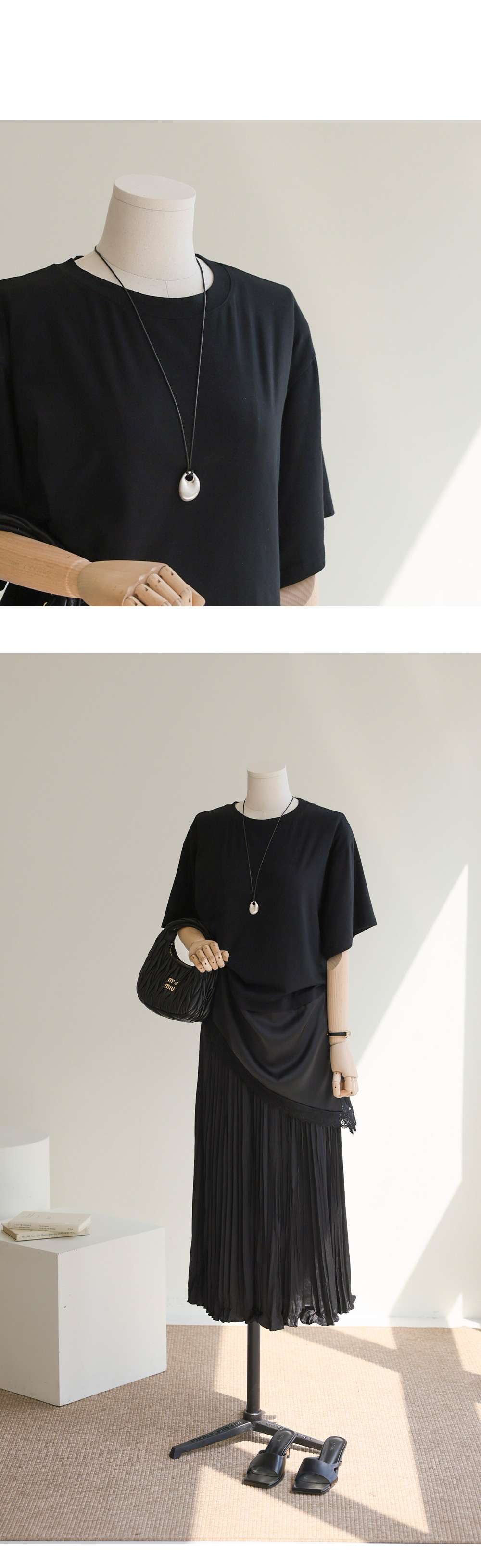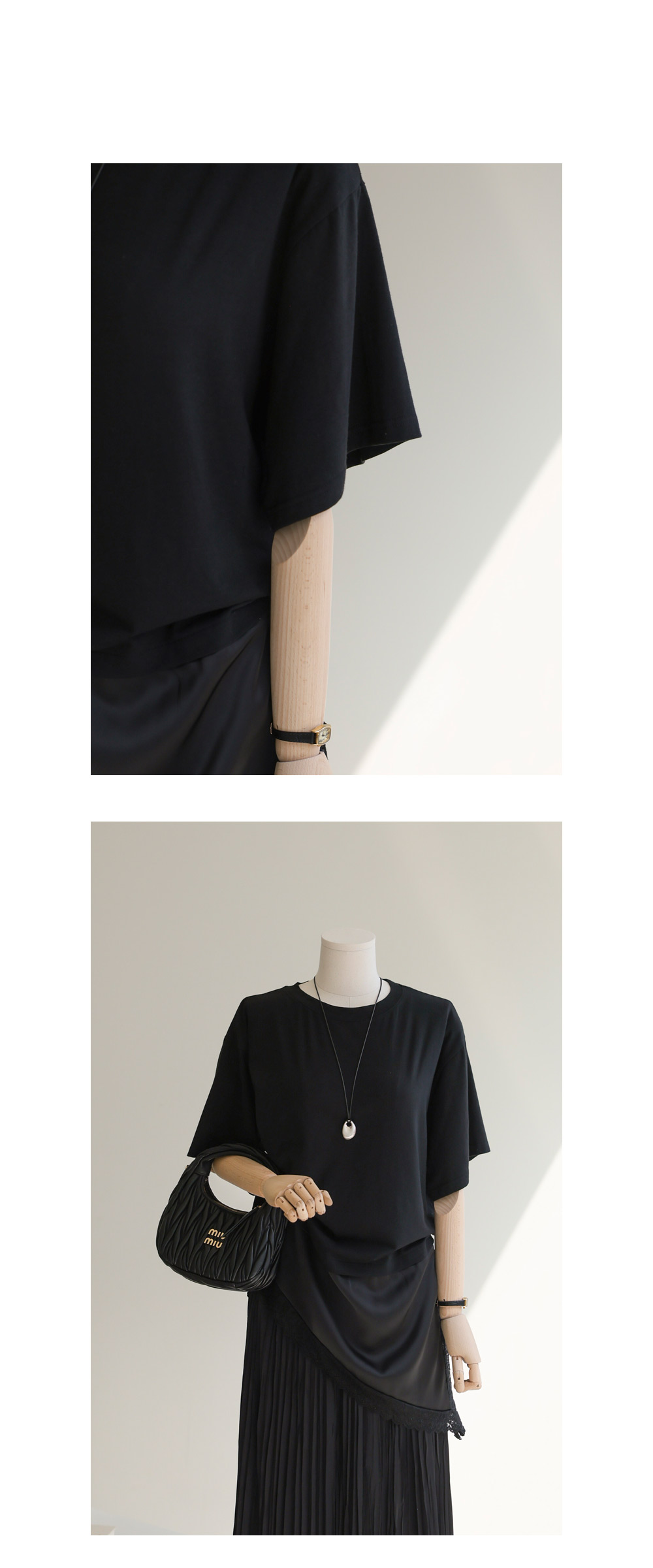 가장 손이 자주 가는 롱티셔츠 아이템에 실키한 배색 원단을 더해, 마치 정성 들여 코디한 듯한 효과를 주는 기특한 아이템 소개해 드려요. 바디 부분은 피부에 닿는 느낌이 아주 부드러운 소재를 사용해 데일리한 무드를 살렸고, 배색된 부분은 탄탄하면서도 매끈한 광택이 도는 소재로 격식 있는 자리에서도 손색없는 퀄리티를 완성했답니다.