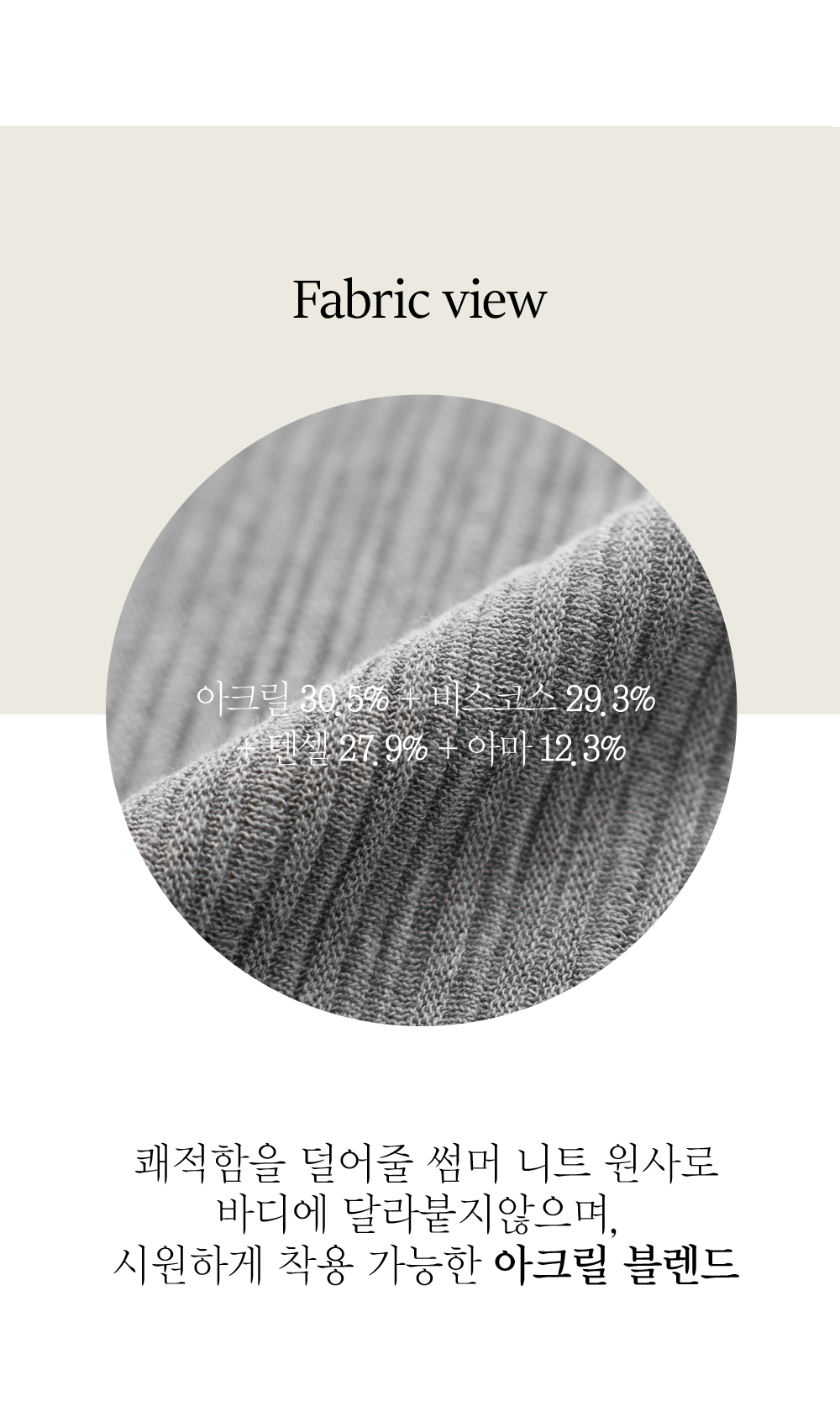 아마와 텐셀, 비스코스 등 고급스러운 원료들이 조화롭게 블렌딩되어 일반적인 니트와는 차원이 다른 청량감을 느끼실 수 있어요. 피부에 닿는 감촉이 무척 매끄럽고 시원하며, 텐셀 혼방 특유의 은은한 광택감과 찰랑거리는 드레이프성이 돋보이는 소재예요. ![]() ![]() ![]() ![]() ![]() MD가 답하는 안심 Q&A