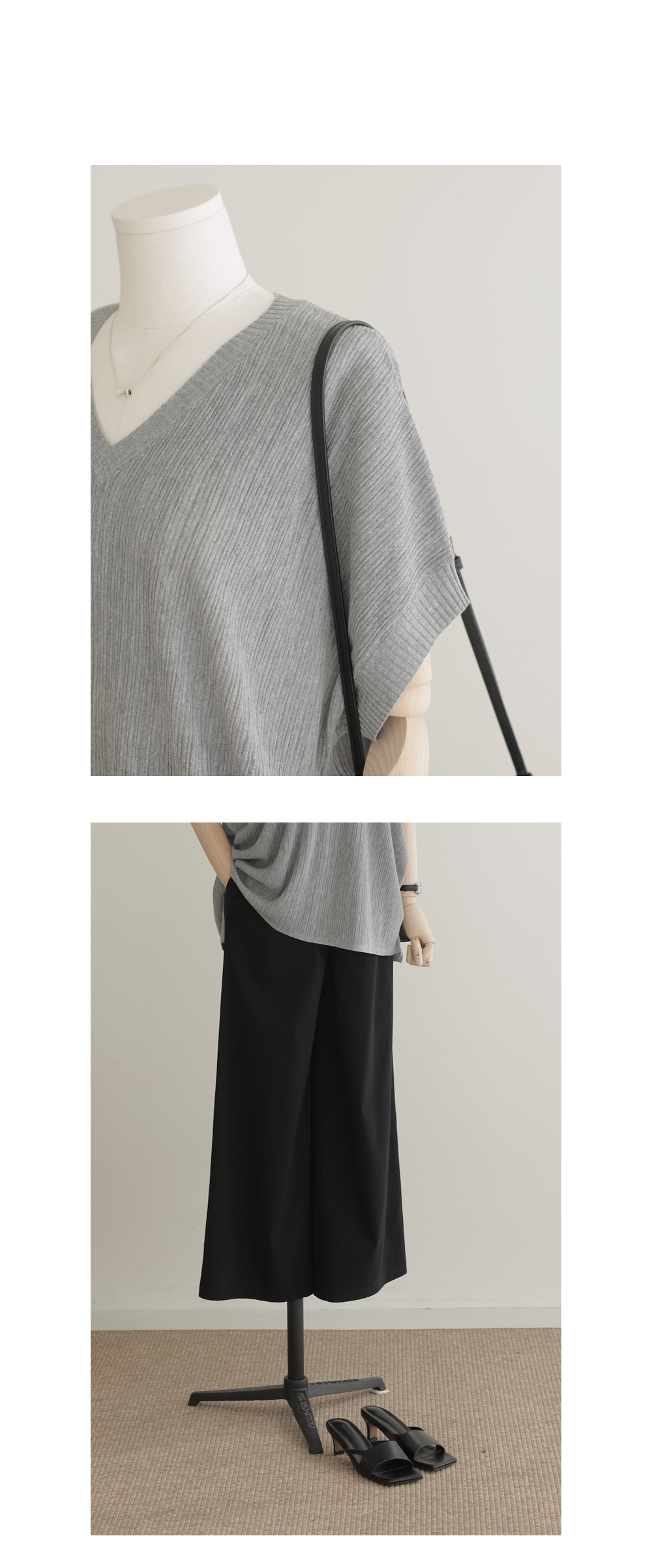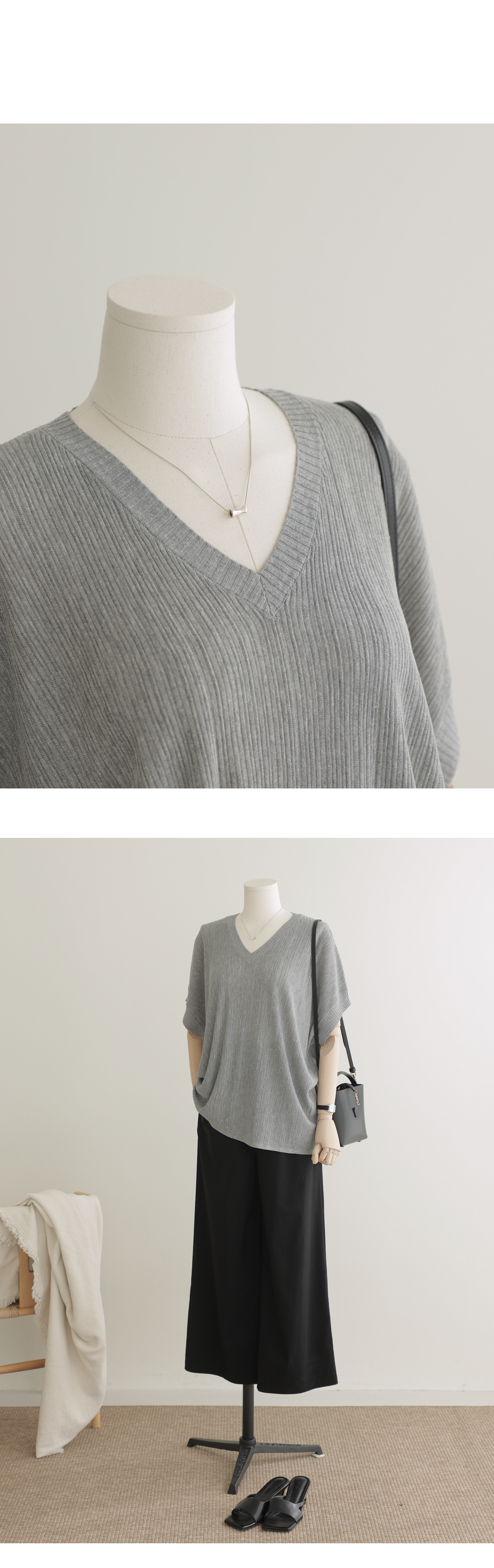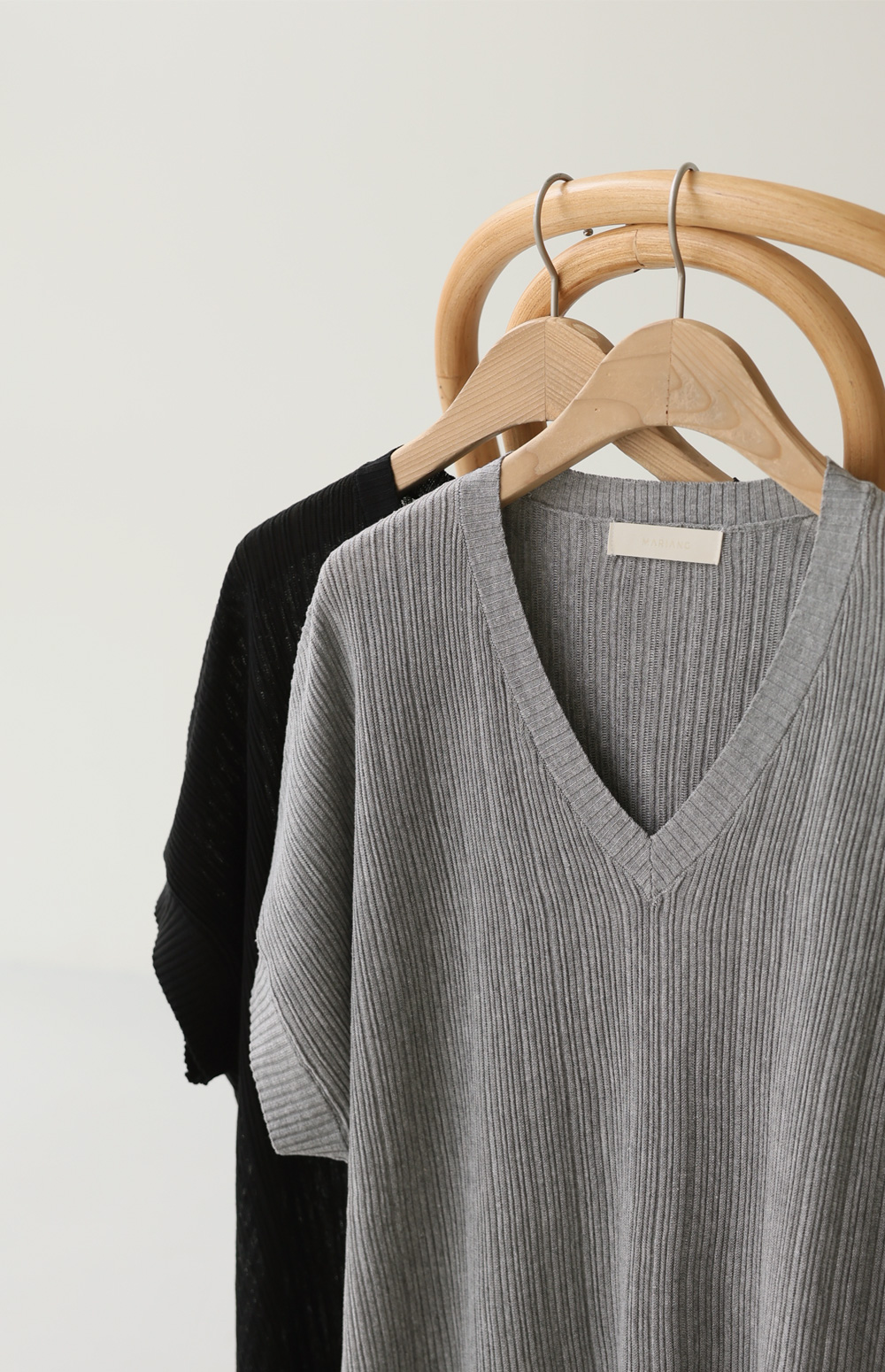 여름 시즌, 니트 아이템은 원사의 선택과 핏의 한 끗 차이가 퀄리티를 결정짓죠. 이번에 소개해 드리는 상품은 마리앙플러스에서 단독으로 진행하는 브이넥 반팔 니트예요. 몸에 달라붙지 않고 기분 좋게 찰랑거리는 시원한 여름 니트 원사를 사용하여 제작되었구요.