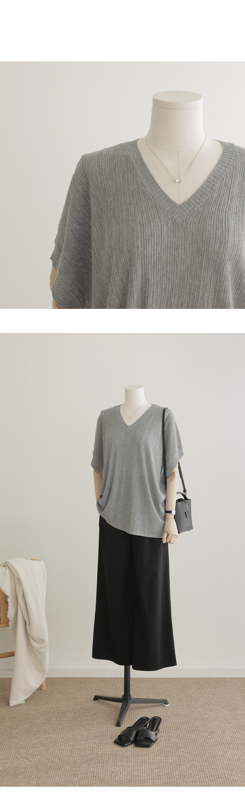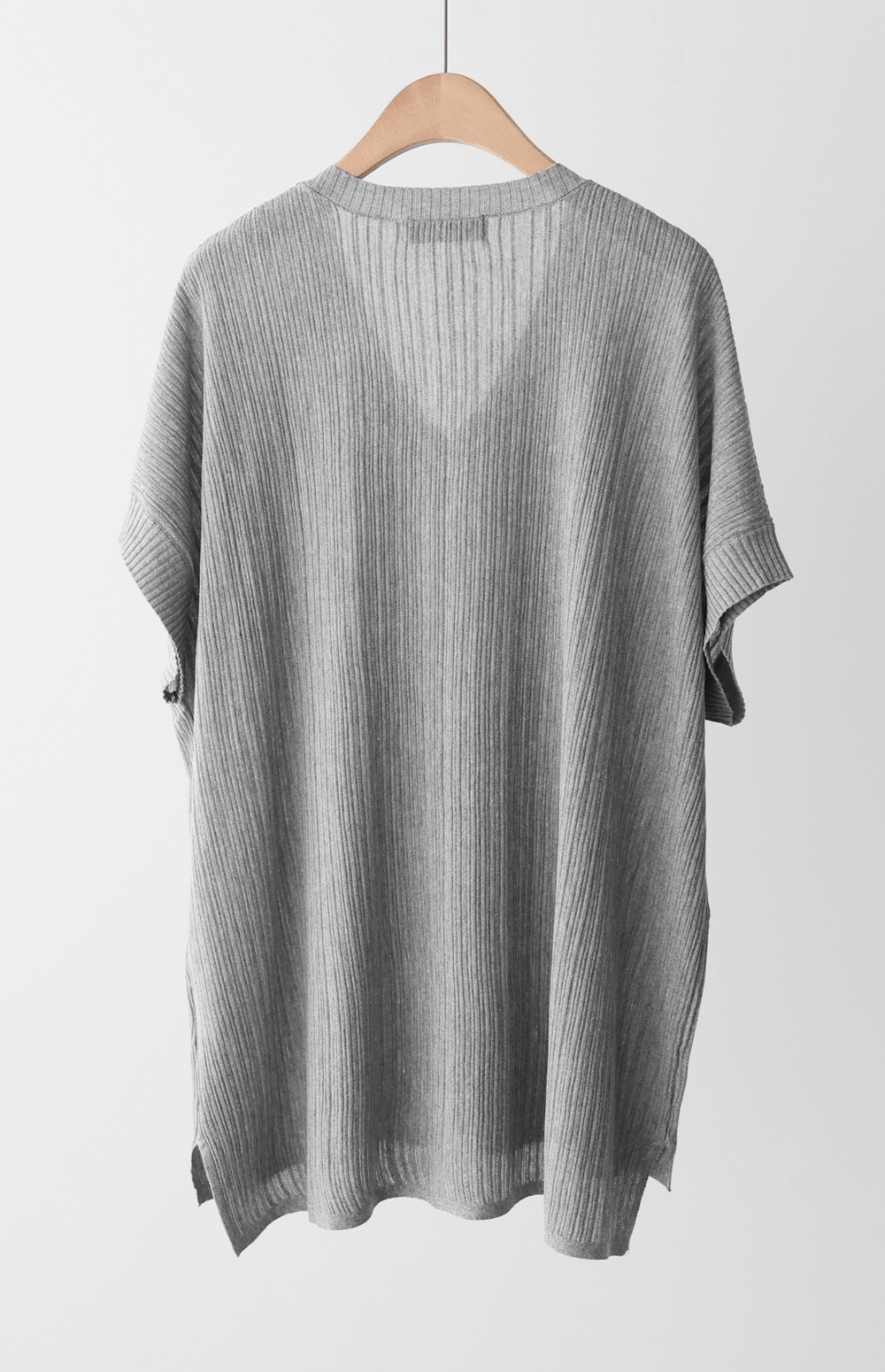 습한 여름에도 쾌적함을 잃지 않는, 찰랑거리는 촉감의 브이넥 반팔 니트