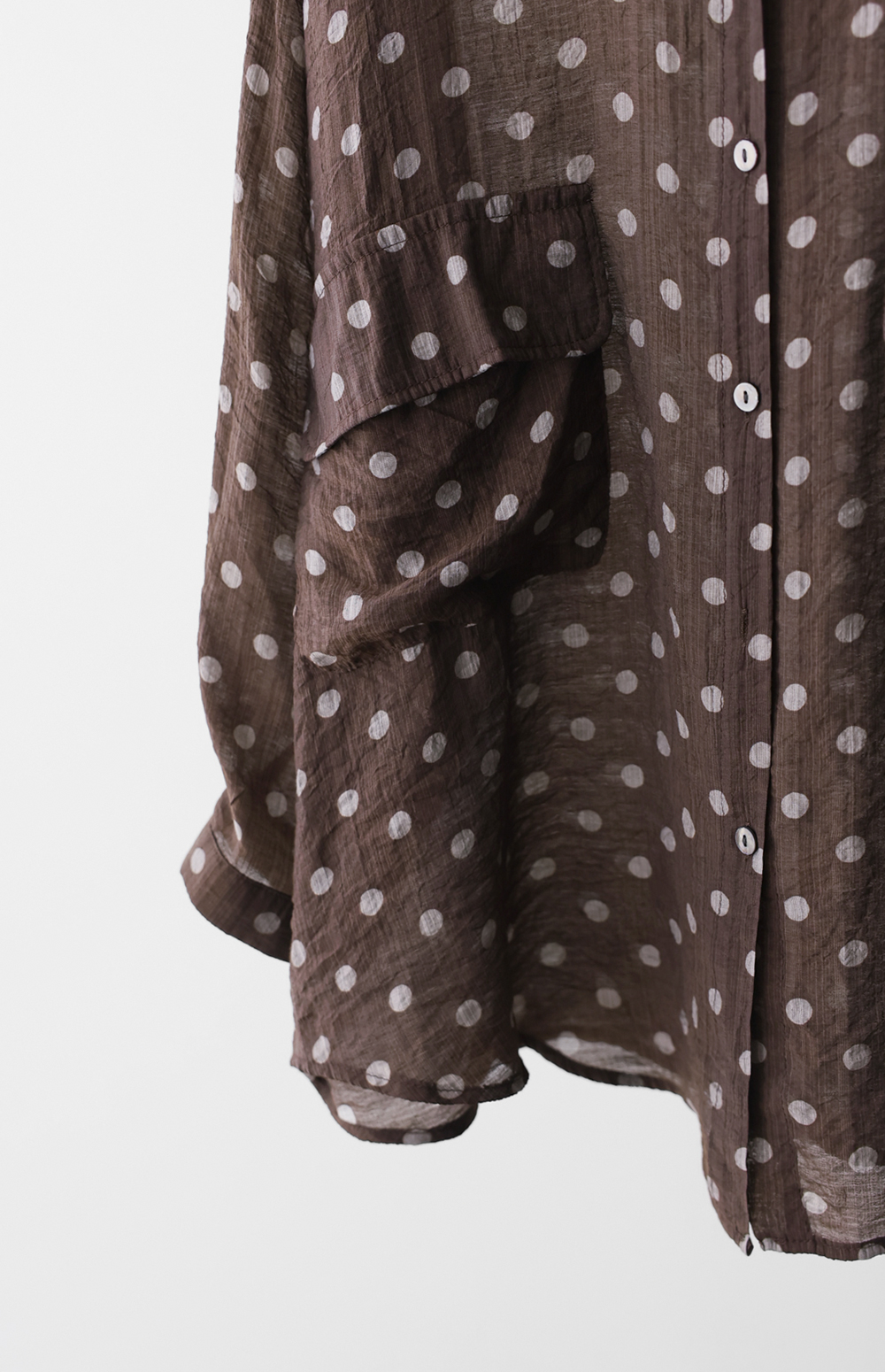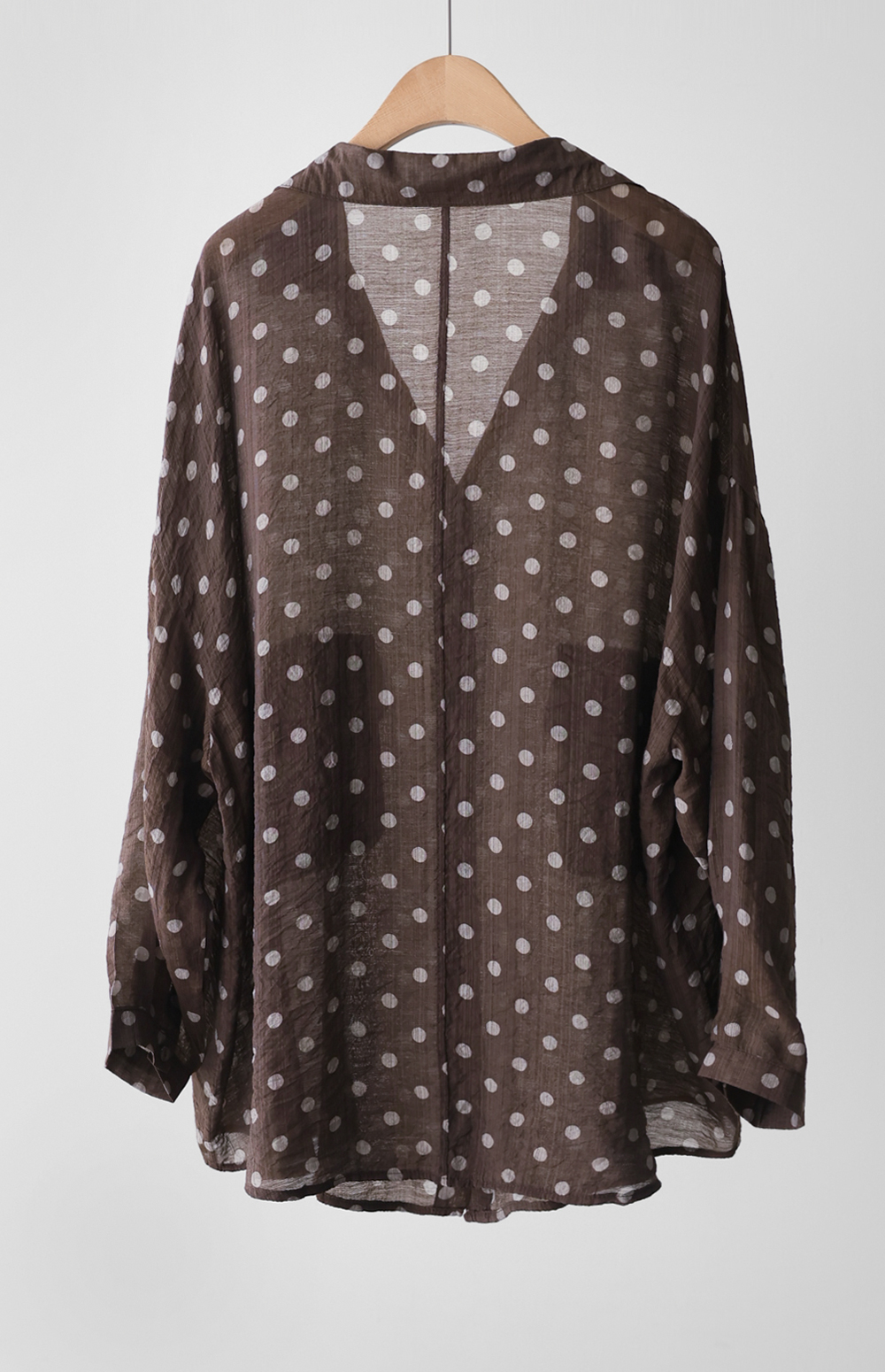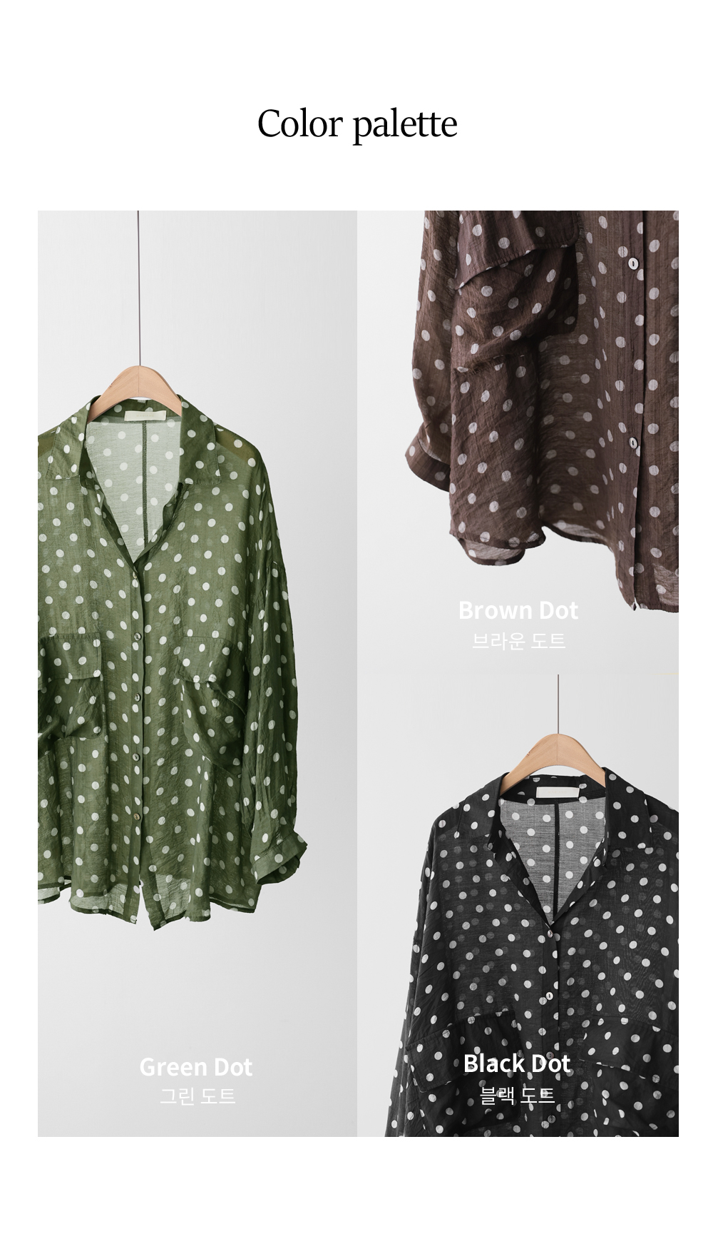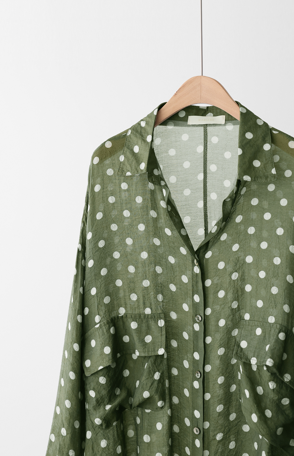 셔츠는 자칫 딱딱해 보일 수 있지만, 패턴과 소재에 따라 분위기가 확 달라지죠. 이번 아이템은 마리앙플러스에서 단독으로 진행하는 러블리한 도트 패턴 셔츠예요. 하늘하늘하게 떨어지는 실루엣 덕분에 입었을 때 상체 라인이 정말 가냘퍼 보인답니다.
