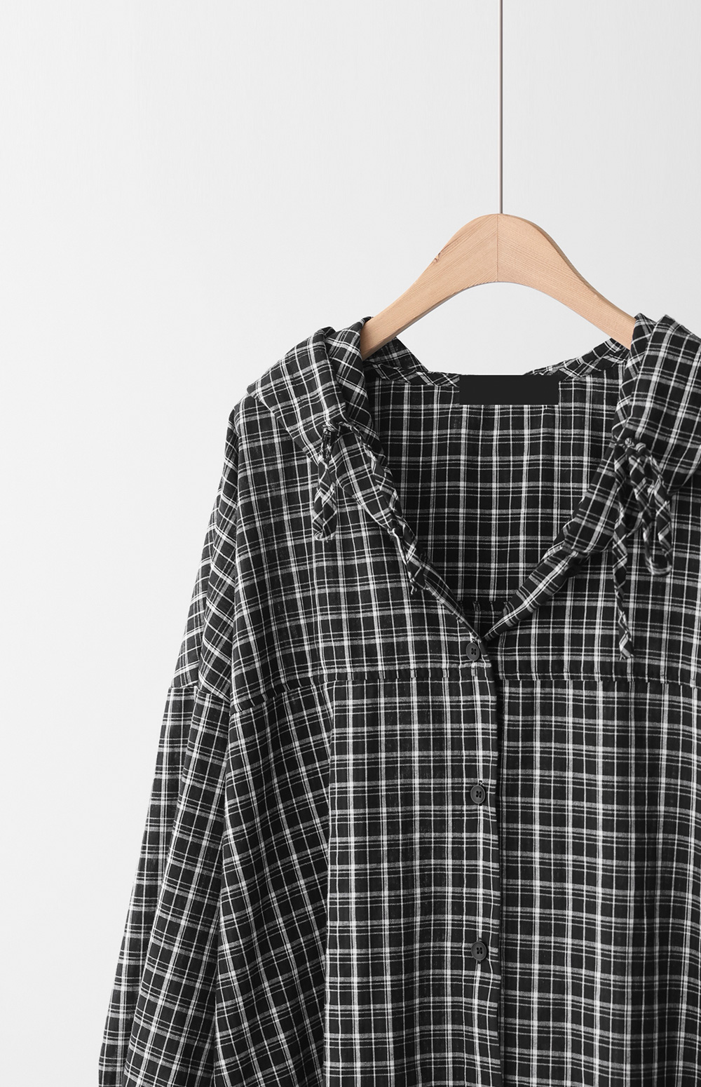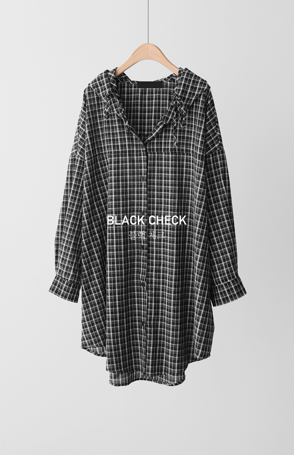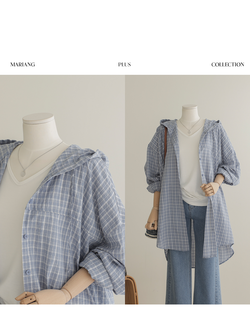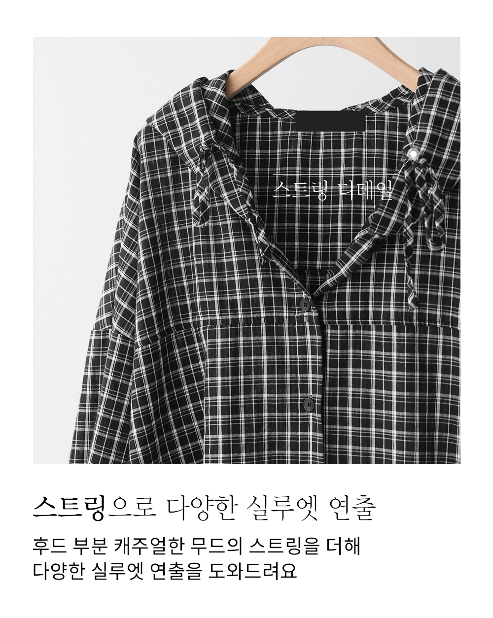 셔츠 카테고리 중에서도 후드가 레이어드 된 디자인은 활용도가 정말 높죠. 이번 아이템은 마리앙플러스에서 단독으로 진행하는 후드 롱 체크 셔츠예요.