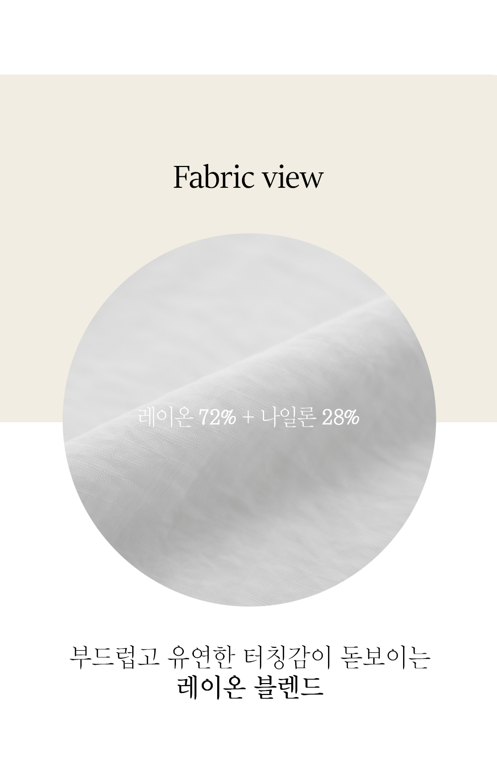 레이온과 나일론이 혼방된 고퀄리티 원단을 사용하여 제작되었어요. 레이온 특유의 찰랑거리고 매끄러운 촉감이 피부에 닿을 때 기분 좋은 청량감을 주며, 나일론이 혼방되어 형태가 쉽게 흐트러지지 않도록 탄탄하게 잡아준답니다, 구김이 잘 가지 않아 하루 종일 단정한 실루엣을 유지하기 무척 수월하실 거예요. ![]() MD가 답하는 안심 Q&A