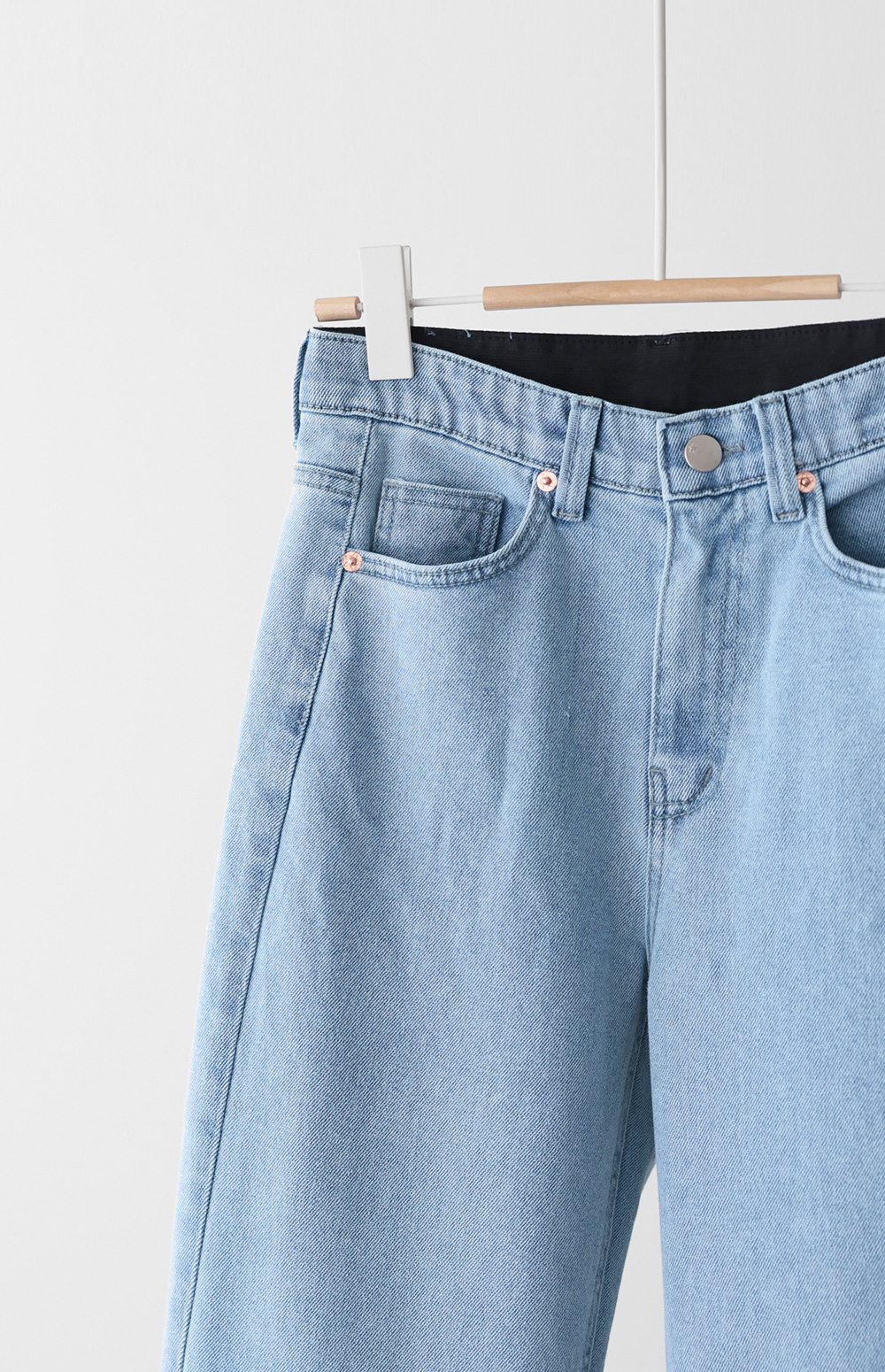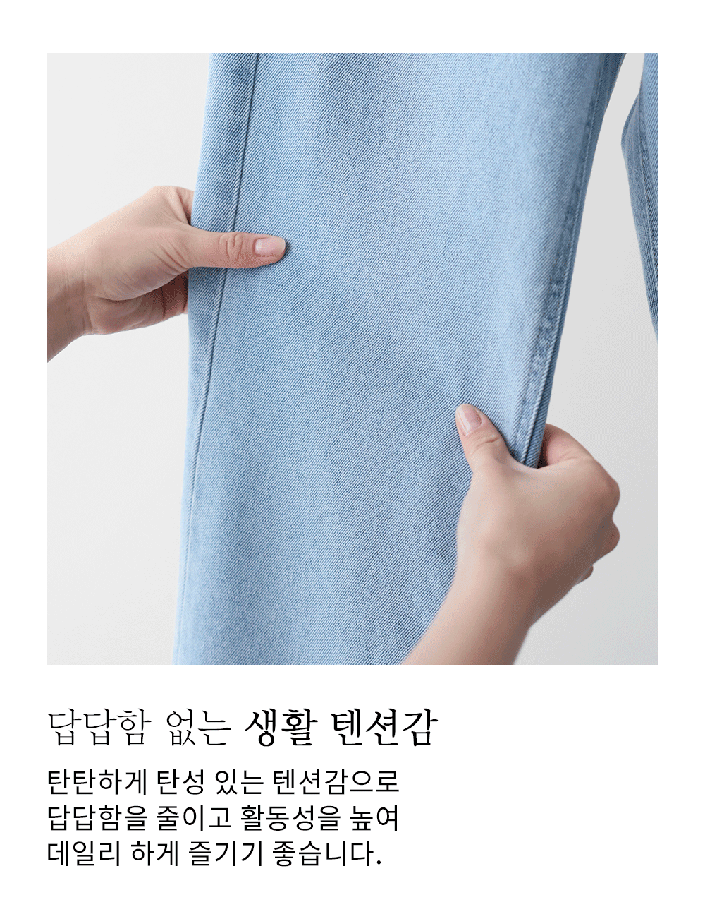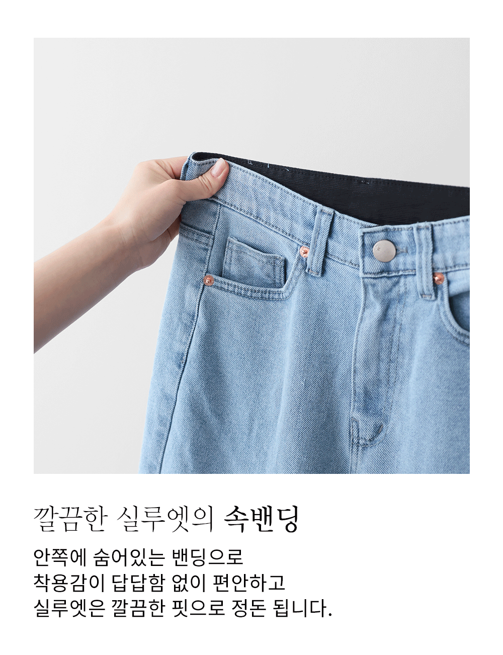 데님 팬츠는 매일 입는 만큼 핏과 편안함이 가장 중요하죠. 이번에 준비한 아이템은 허리 라인이 들뜨지 않게 잡아주는 속밴딩 일자핏 데님이에요.