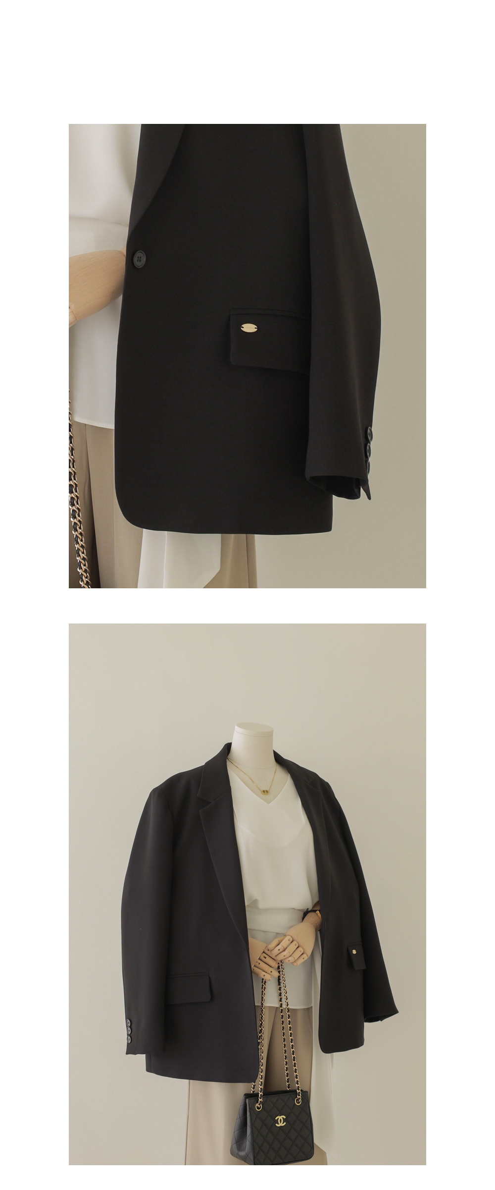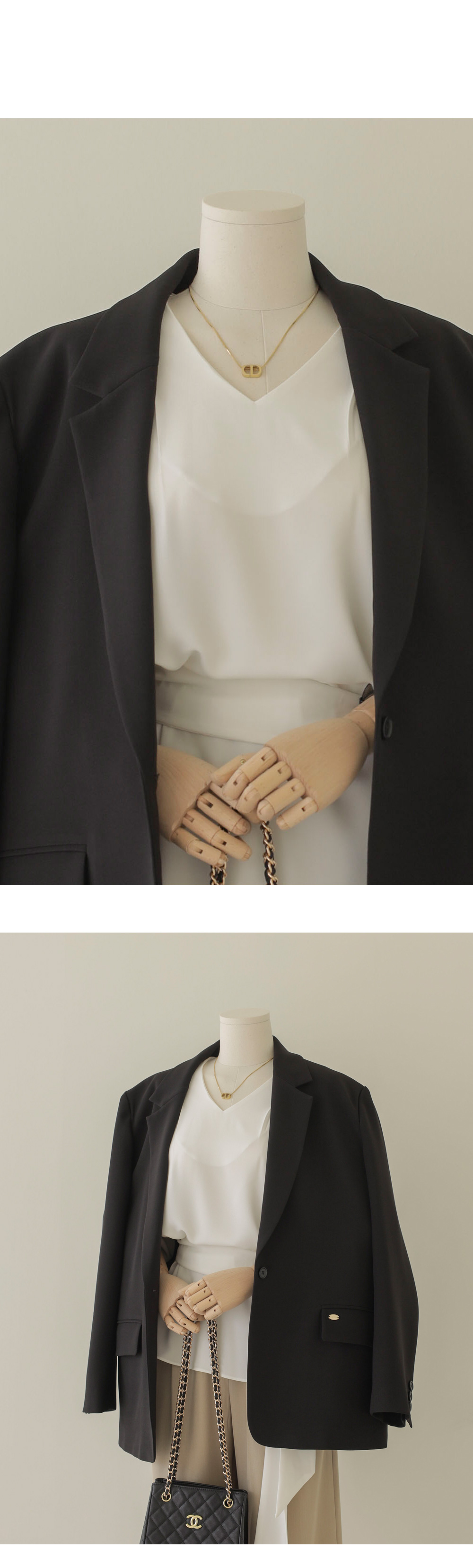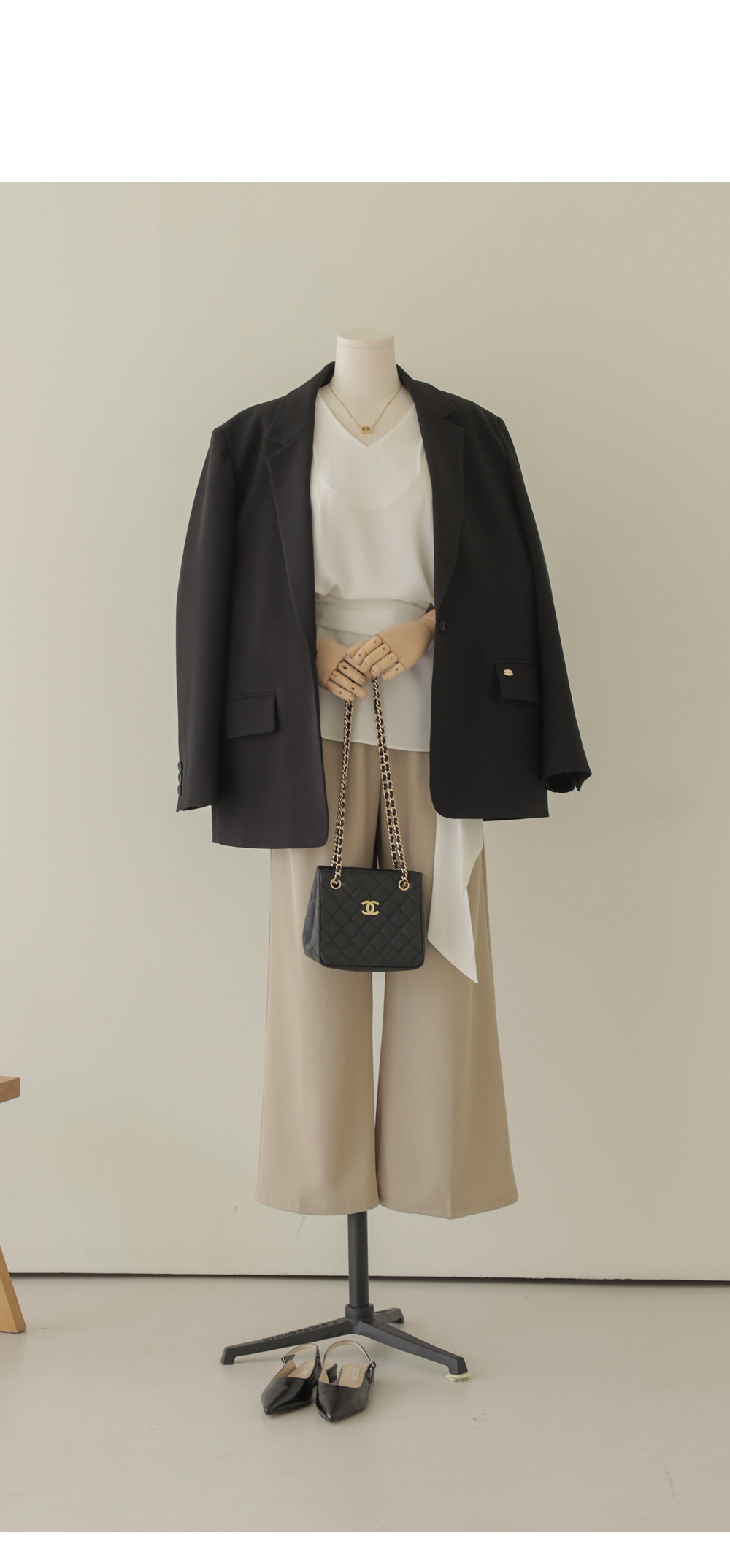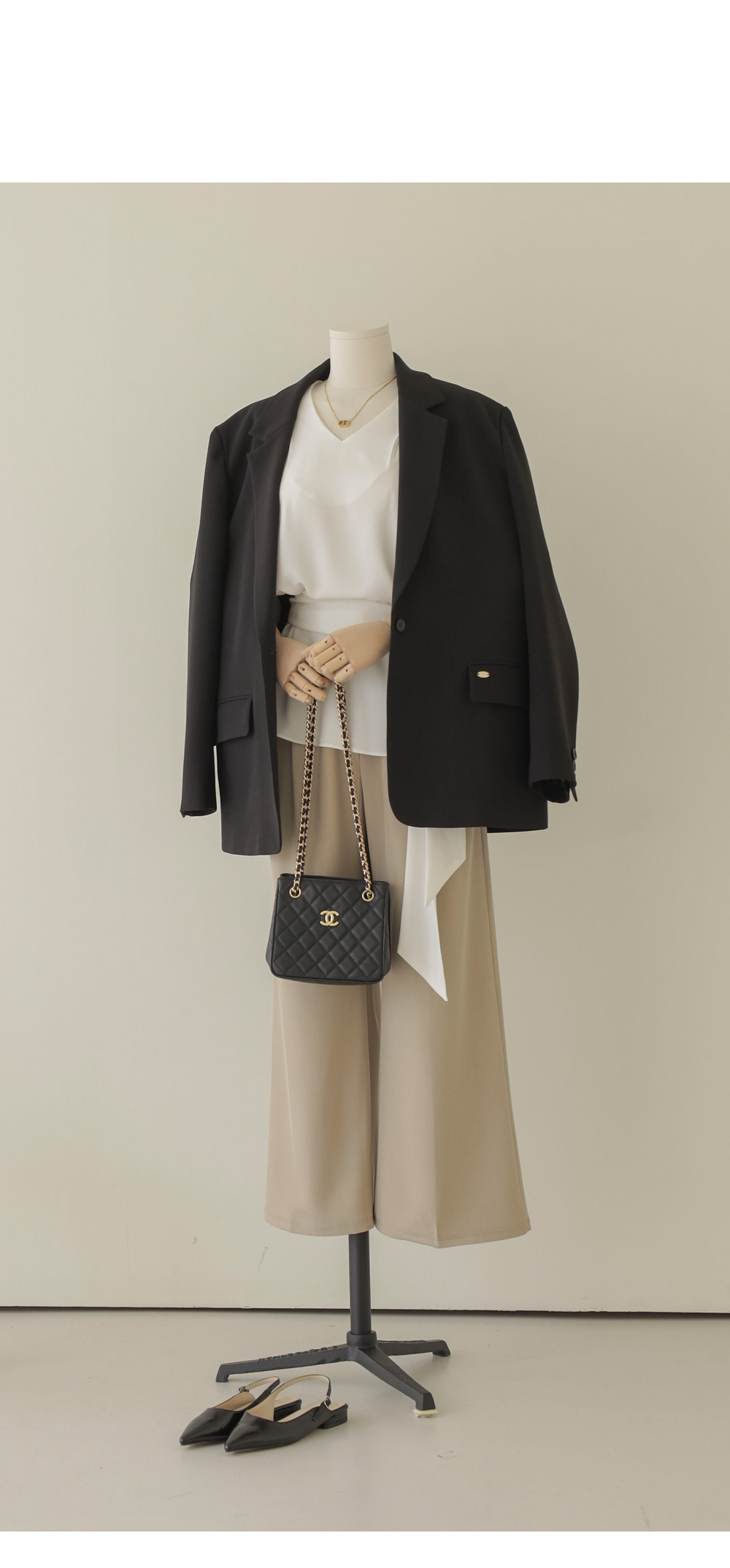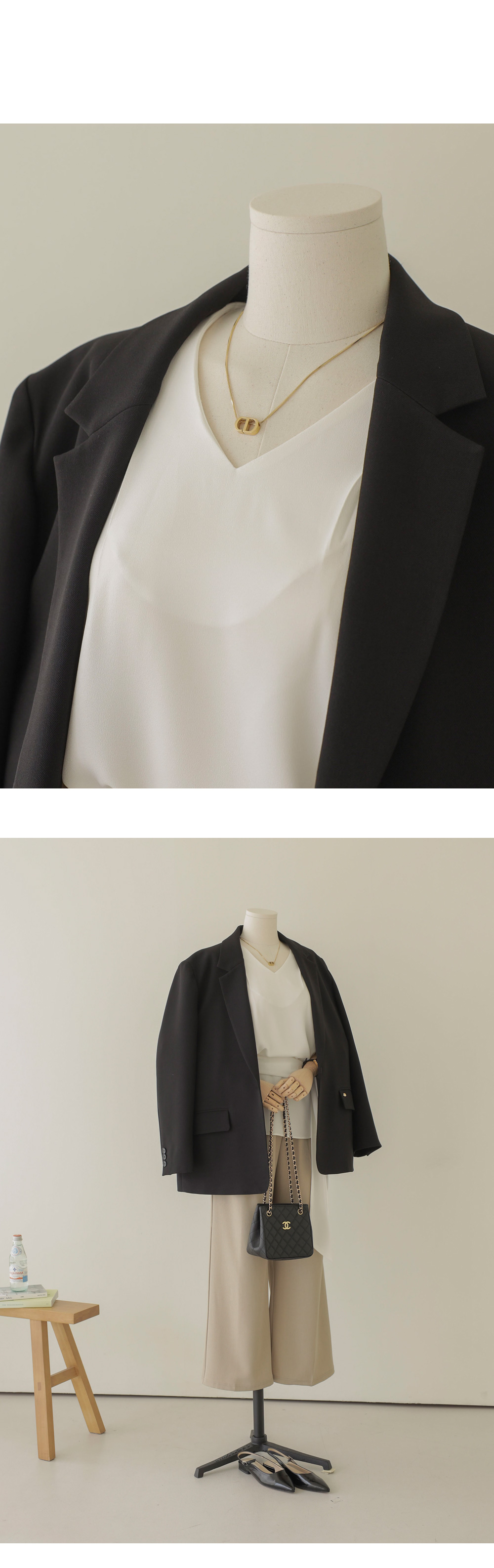코디가 어려운 날, 이 블라우스 하나면 고민 끝이에요. 이번 아이템은 깊지 않은 브이넥 라인에 탈착 가능한 스카프가 세트로 구성되어 있어 활용도가 정말 높답니다.