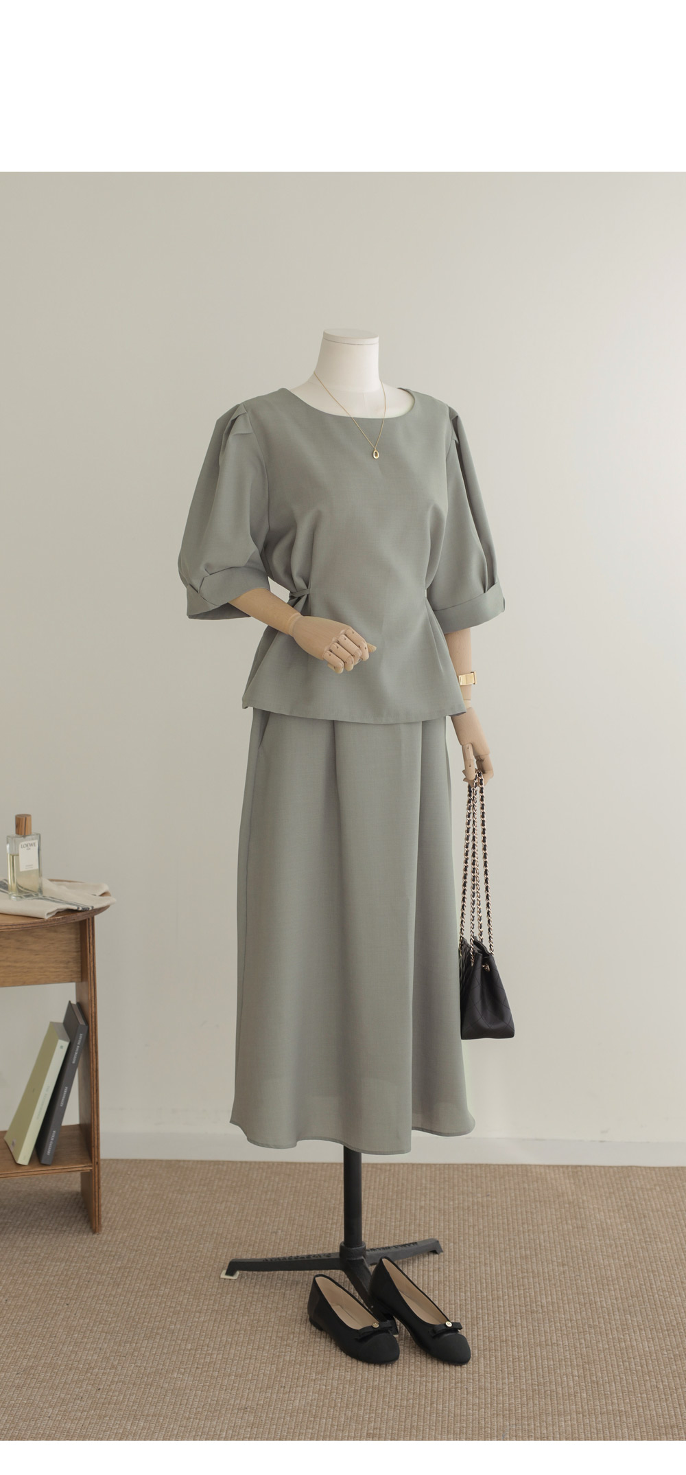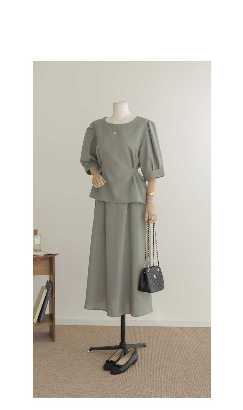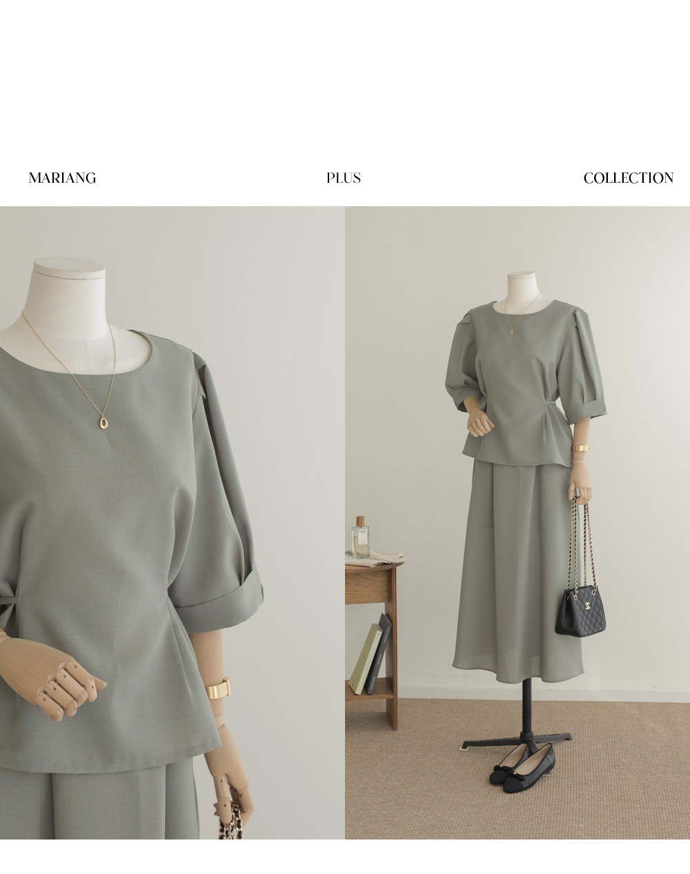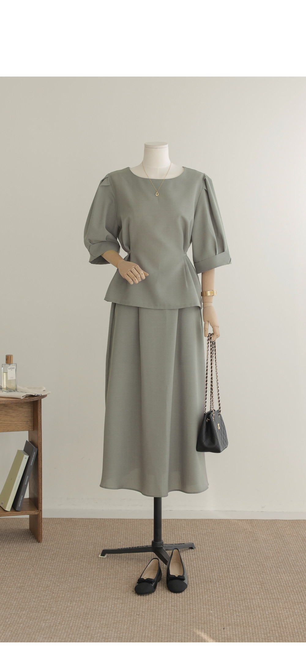 아침마다 상하의 맞춰 입기 번거로우셨던 분들께 단비 같은 세트 상품이에요. 이번 아이템은 라운드넥 블라우스와 핀턱 스커트가 조화를 이룬 구성이랍니다.