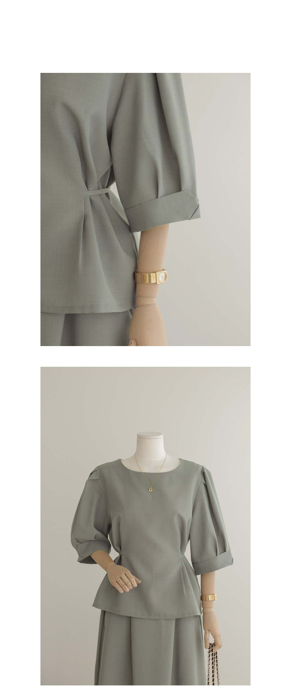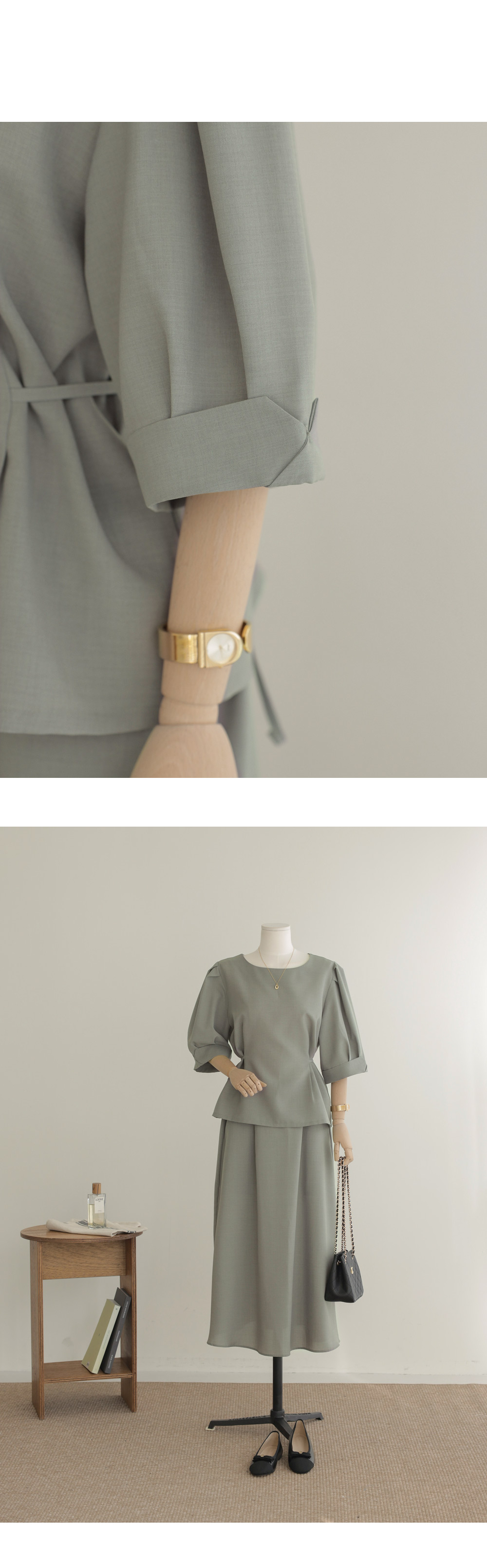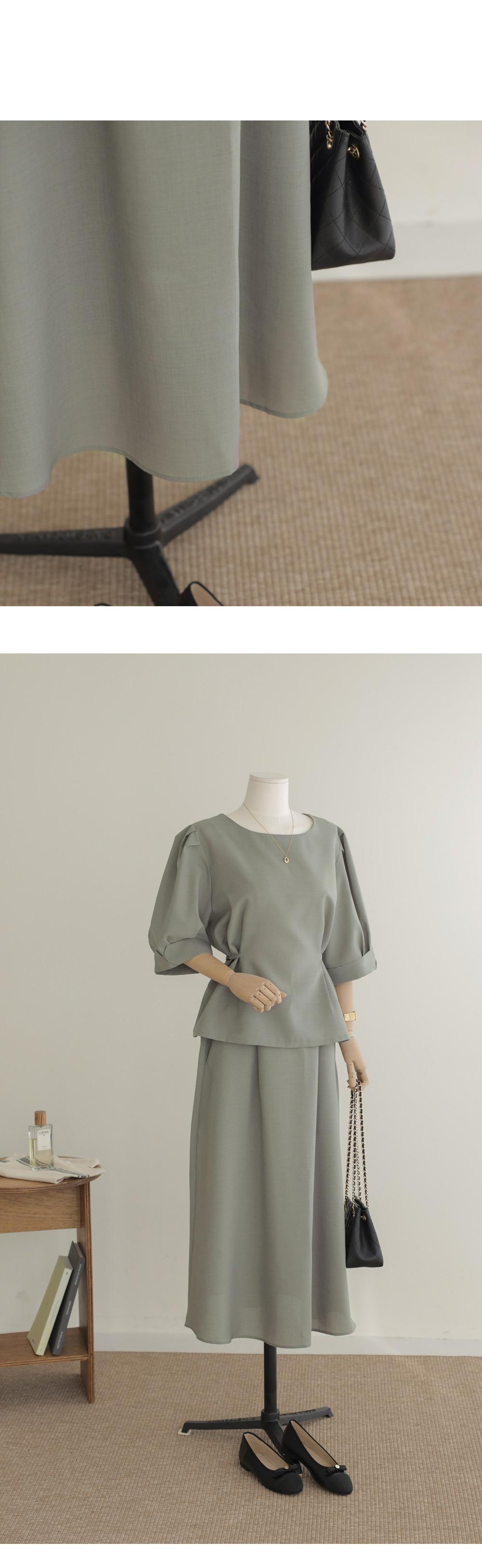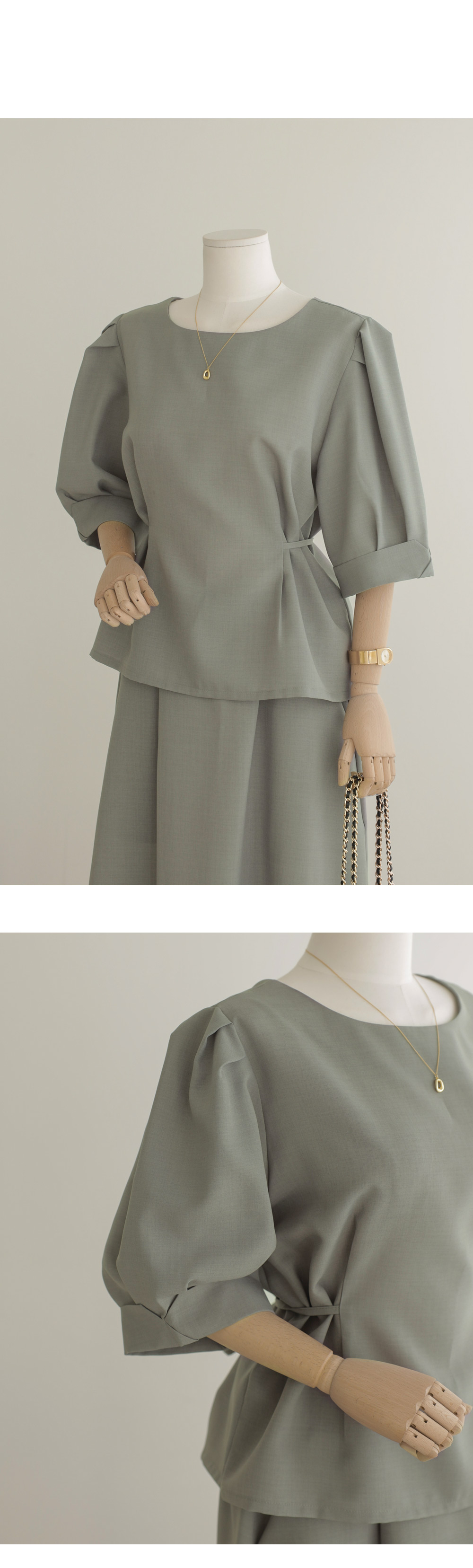 아침마다 상하의 맞춰 입기 번거로우셨던 분들께 단비 같은 세트 상품이에요. 이번 아이템은 라운드넥 블라우스와 핀턱 스커트가 조화를 이룬 구성이랍니다.