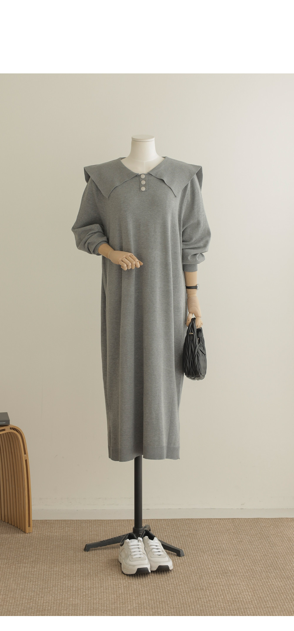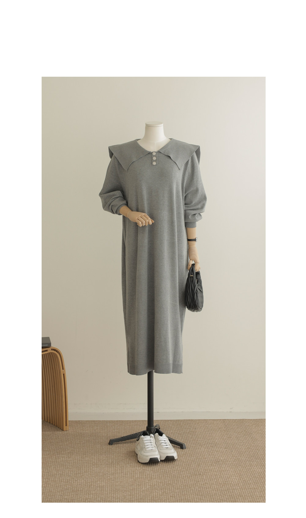 원피스 카테고리에서 편안함과 스타일을 동시에 잡기란 쉽지 않은데, 이번 세일러 카라 원피스는 그 두 마리 토끼를 완벽히 잡은 아이템이에요. 어깨를 부드럽게 감싸는 세일러 카라가 시선을 위로 끌어올려 전체적인 비율을 좋아 보이게 하구요.