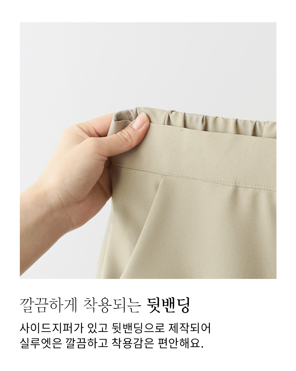 탄탄하면서도 유연한 폴리 100% 소재를 사용하여 세탁 후에도 주름이 쉽게 풀리지 않고 형태가 잘 유지돼요. 신축성이 포함된 직조 방식이라 몸의 움직임에 따라 유연하게 늘어나 활동하기 정말 편안하구요. 안감이 없어도 원단 자체가 비침 없이 톡톡하게 짜여 있어 피부에 닿는 촉감이 매끄럽고 정전기 발생도 적어 사계절 내내 쾌적하게 즐기실 수 있답니다. ![]() 밴딩 가이드 보러가기→ ![]() MD가 답하는 안심 Q&A