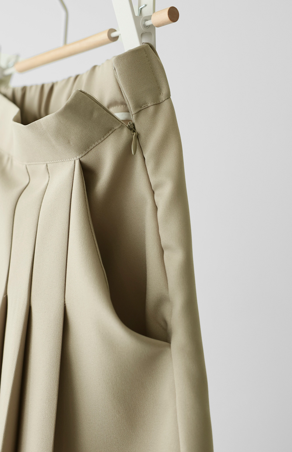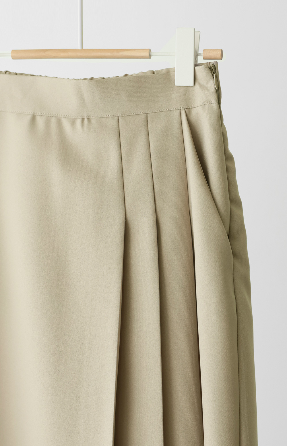스커트 카테고리에서 유행 타지 않고 사계절 내내 사랑받는 아이템은 단연 플리츠 라인이 아닐까 싶어요. 이번에 준비한 스커트는 일반적인 주름 치마보다 훨씬 정교한 플리츠 디테일을 넣어 입었을 때 펼쳐지는 실루엣이 정말 예술이구요. 폴리 100% 소재 특유의 찰랑거림과 적당한 무게감이 만나 하체 라인을 타고 흐르는 핏이 굉장히 고급스럽답니다.