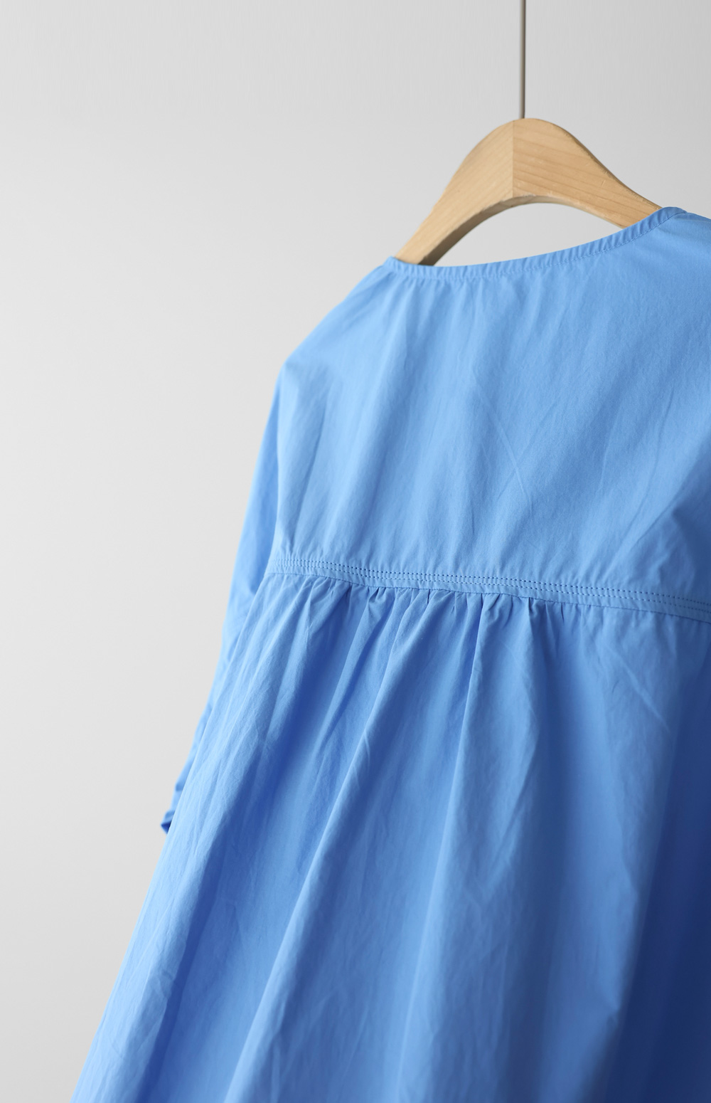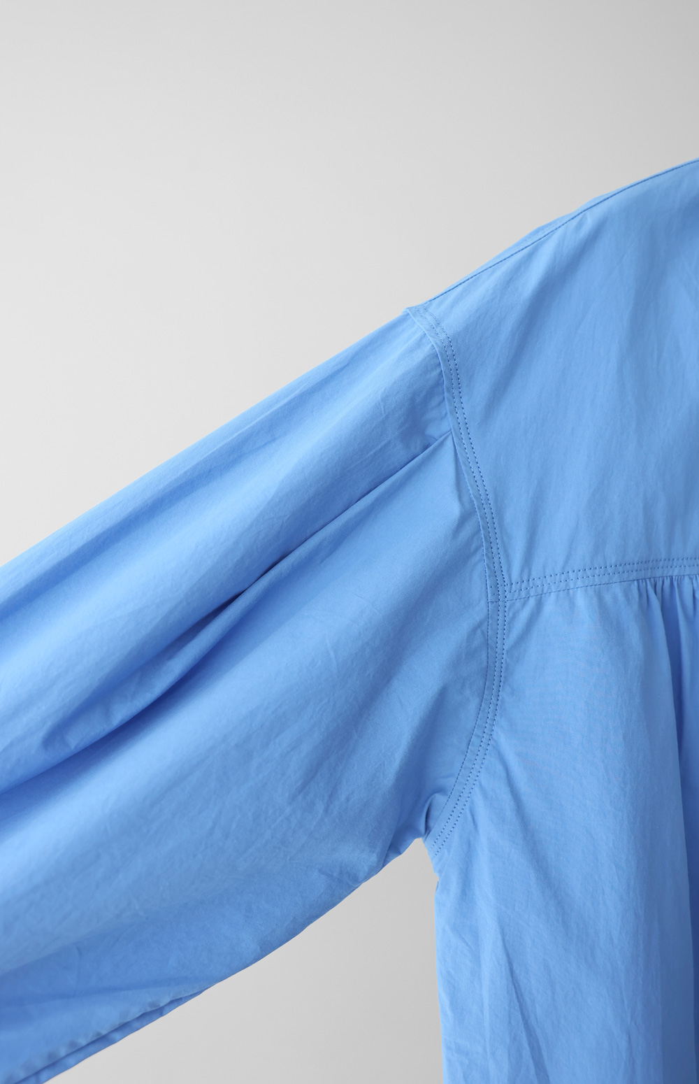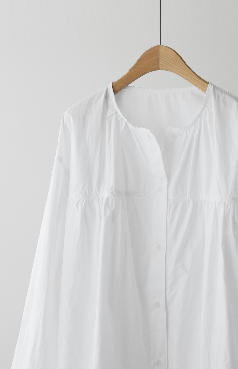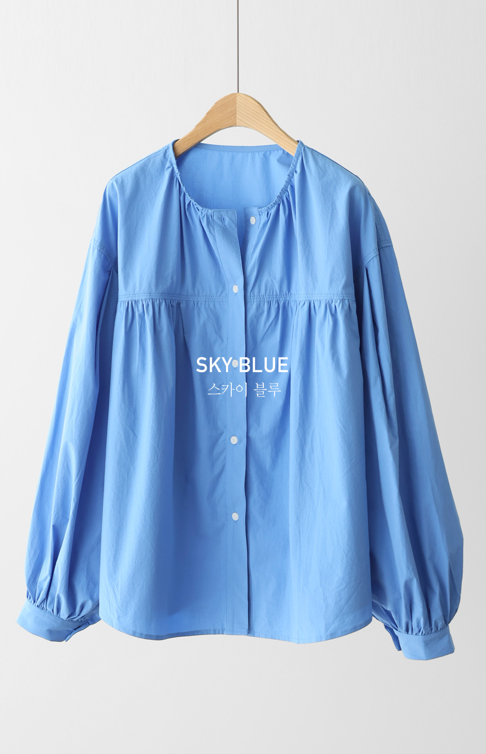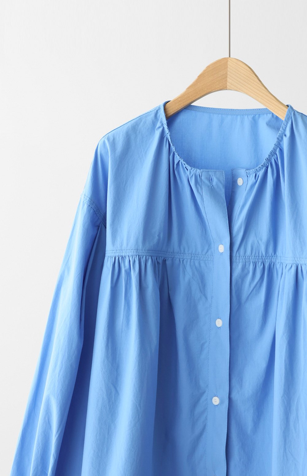 기본 블라우스인 듯하지만, 입어보는 순간 그 차이를 확실히 느끼실 수 있을 거예요. 이번 아이템은 넥라인과 소매에 촘촘하게 잡힌 셔링 디테일이 포인트인 코튼 블라우스랍니다.