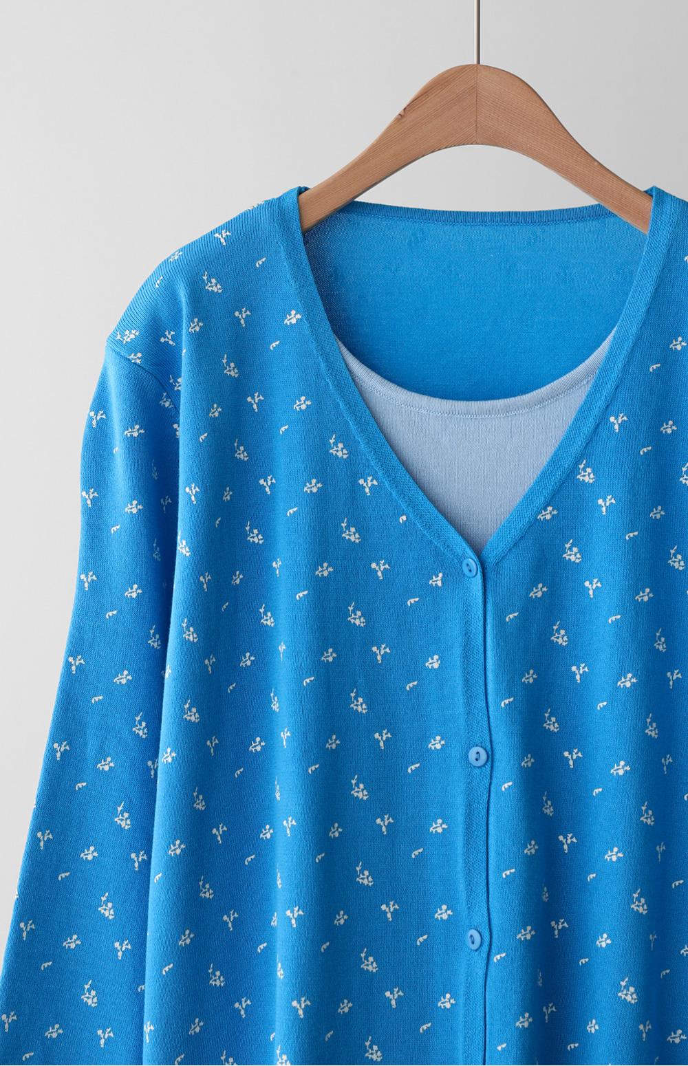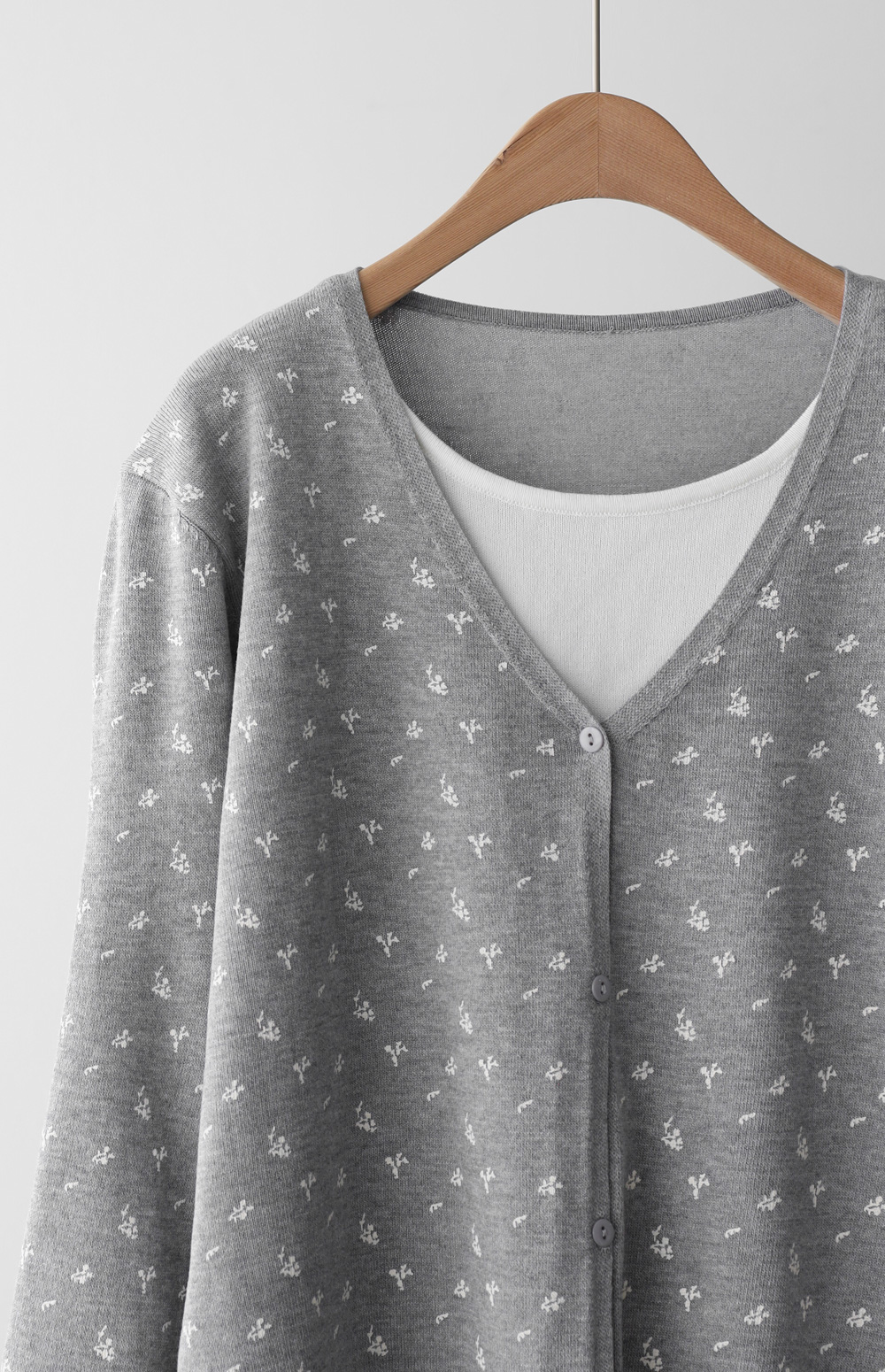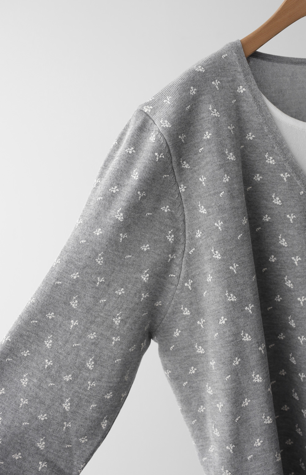 코디가 고민되는 아침, 고민 없이 손이 갈 스마트한 니트예요. 이번 아이템은 라운드넥 니트 위에 가디건을 레이어드한 듯한 독특한 디자인이 포인트랍니다.