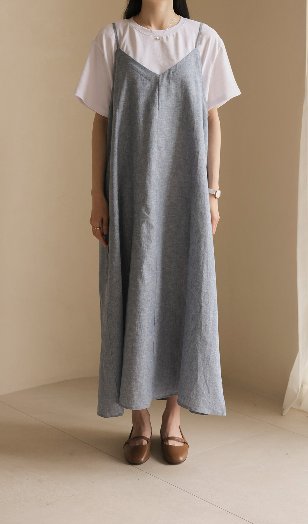 코디가 고민되는 날, 어떤 상의 위에든 가볍게 툭 걸쳐주기만 하세요. 깊은 V넥 라인과 여유로운 암홀 덕분에 기본 티셔츠부터 셔츠까지 다양한 아이템과 자연스럽게 어우러지는 원피스예요.