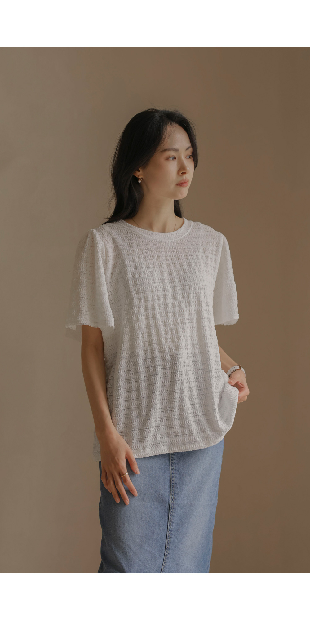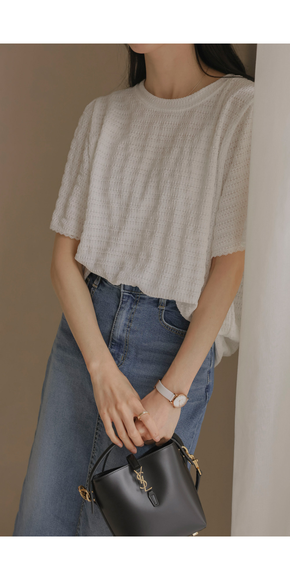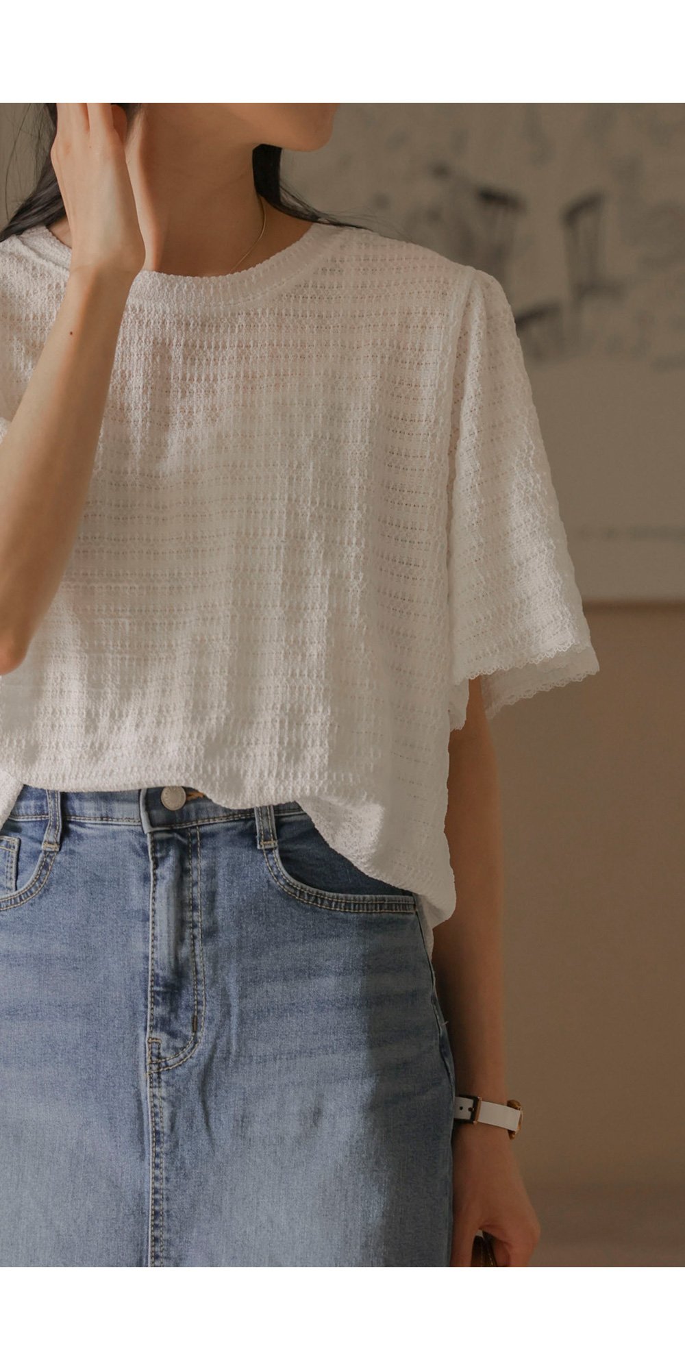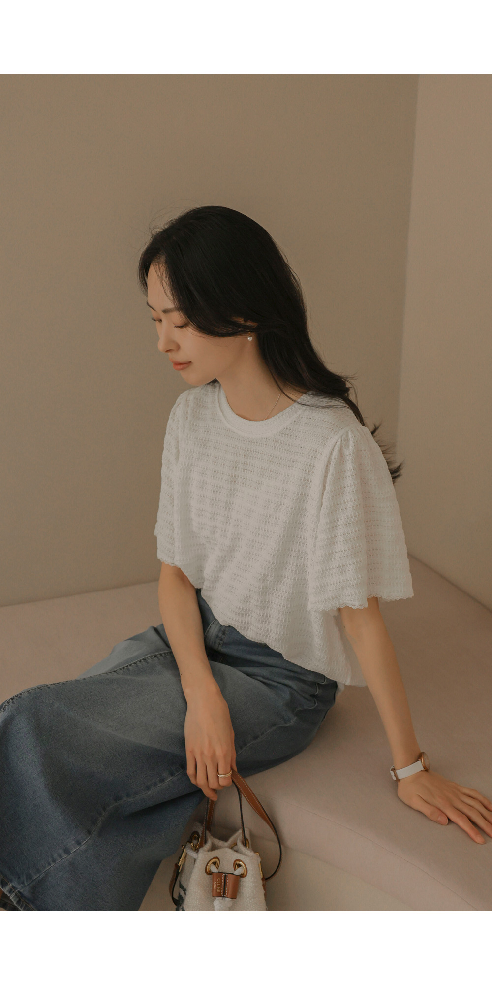 매 시즌 꾸준히 사랑받는 티셔츠는 단순한 기본템을 넘어 전체적인 룩의 분위기를 결정짓는 중요한 아이템이에요. 이번에 소개해 드리는 상품은 티셔츠의 편안함에 마치 블라우스 같은 디테일의 세련미를 더한 디자인이구요.