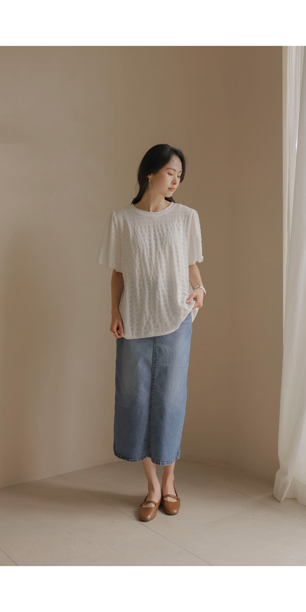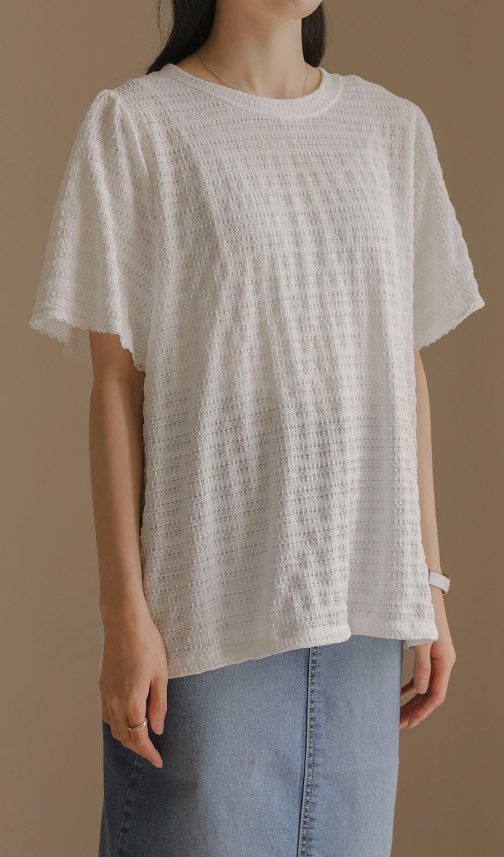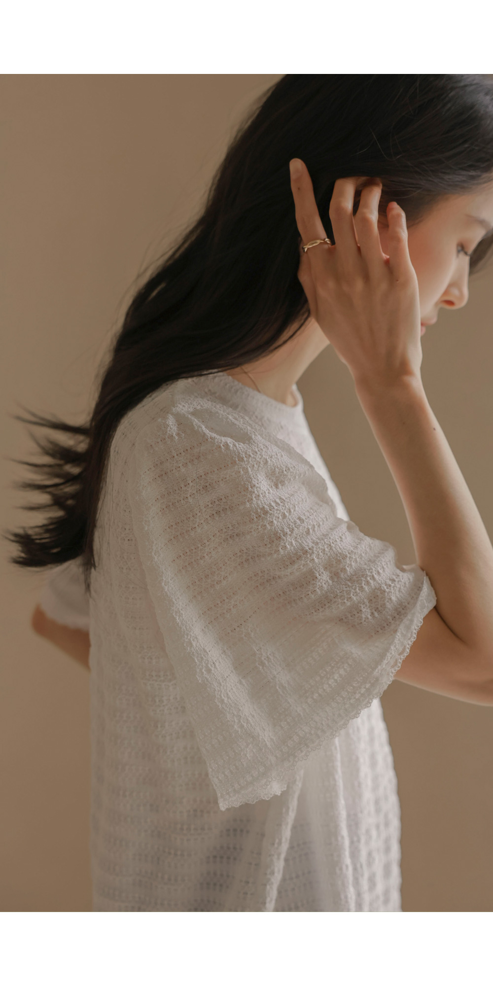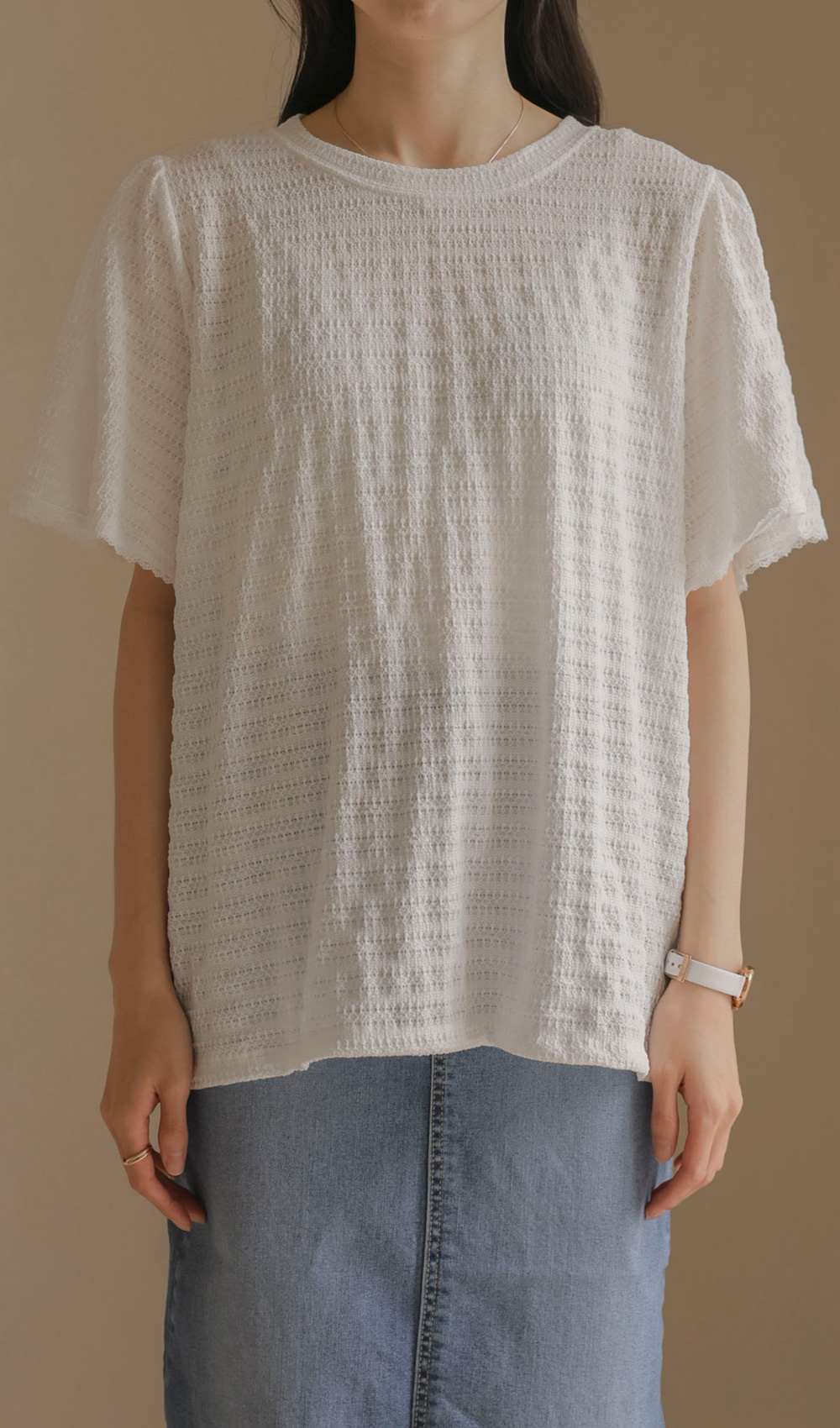 매 시즌 꾸준히 사랑받는 티셔츠는 단순한 기본템을 넘어 전체적인 룩의 분위기를 결정짓는 중요한 아이템이에요. 이번에 소개해 드리는 상품은 티셔츠의 편안함에 마치 블라우스 같은 디테일의 세련미를 더한 디자인이구요.