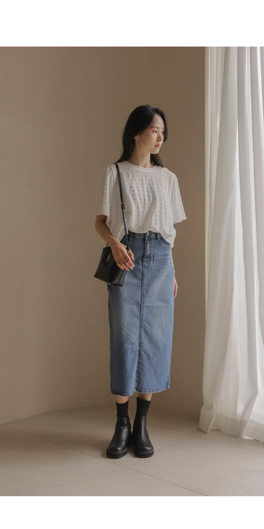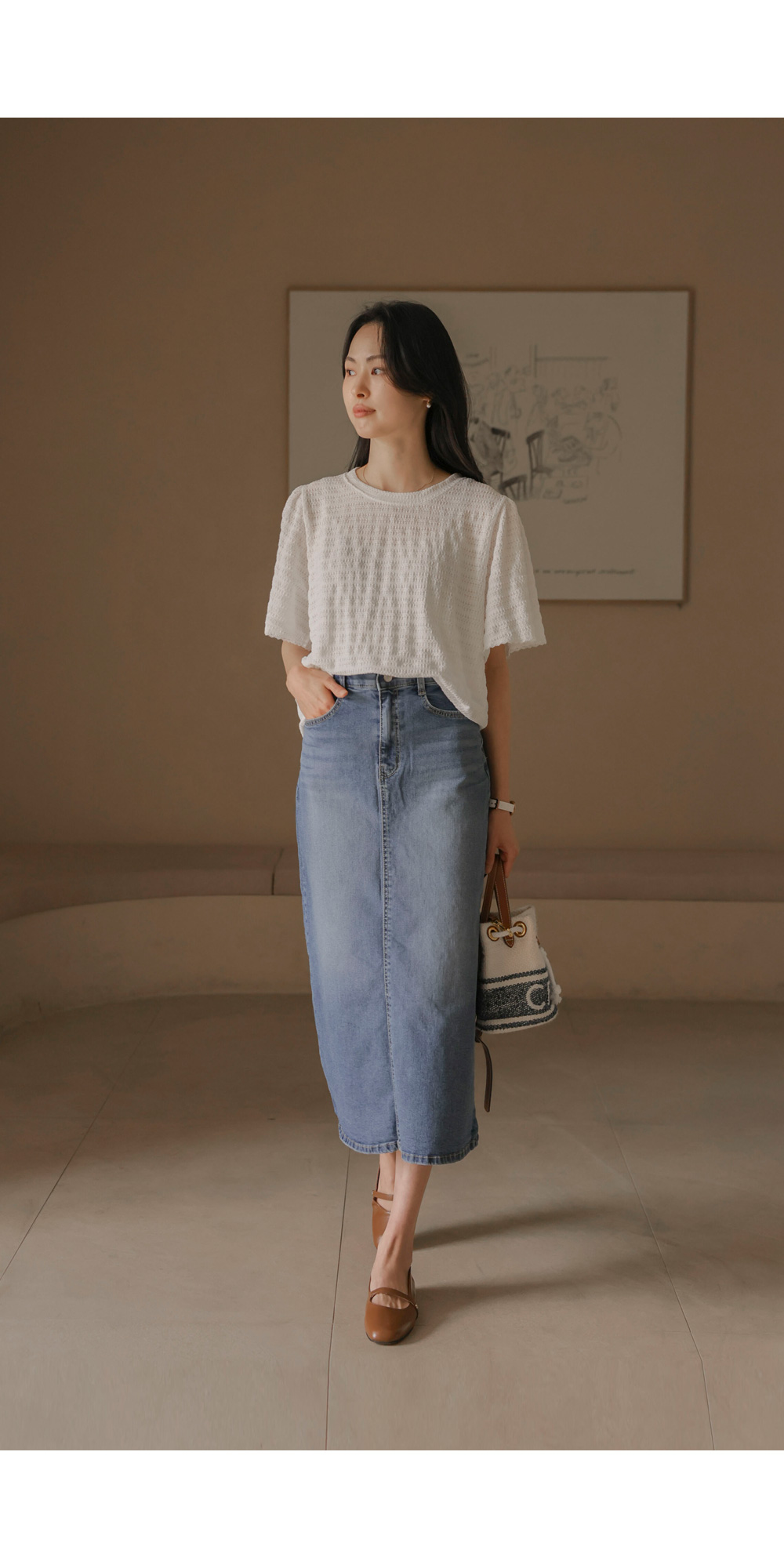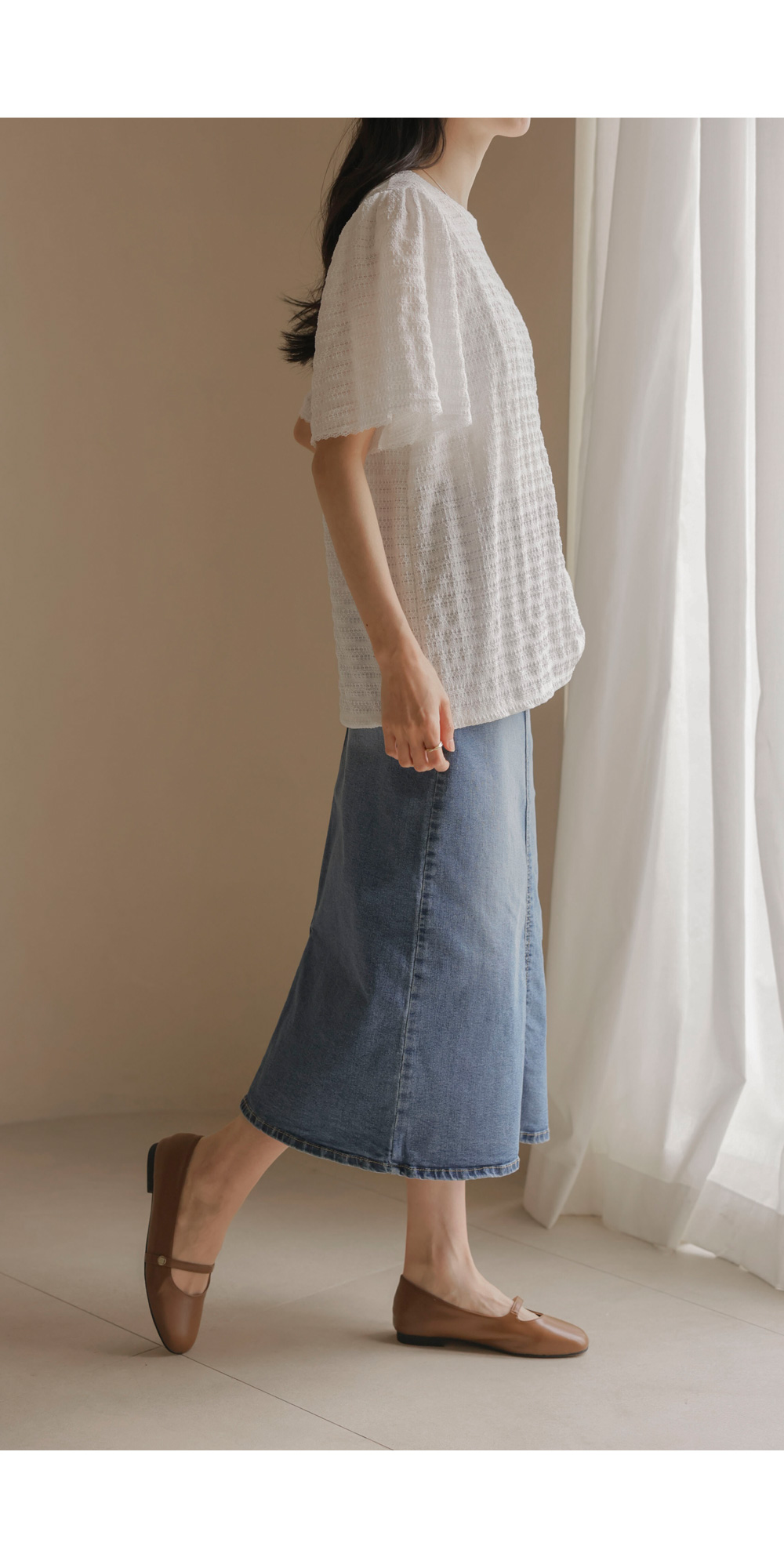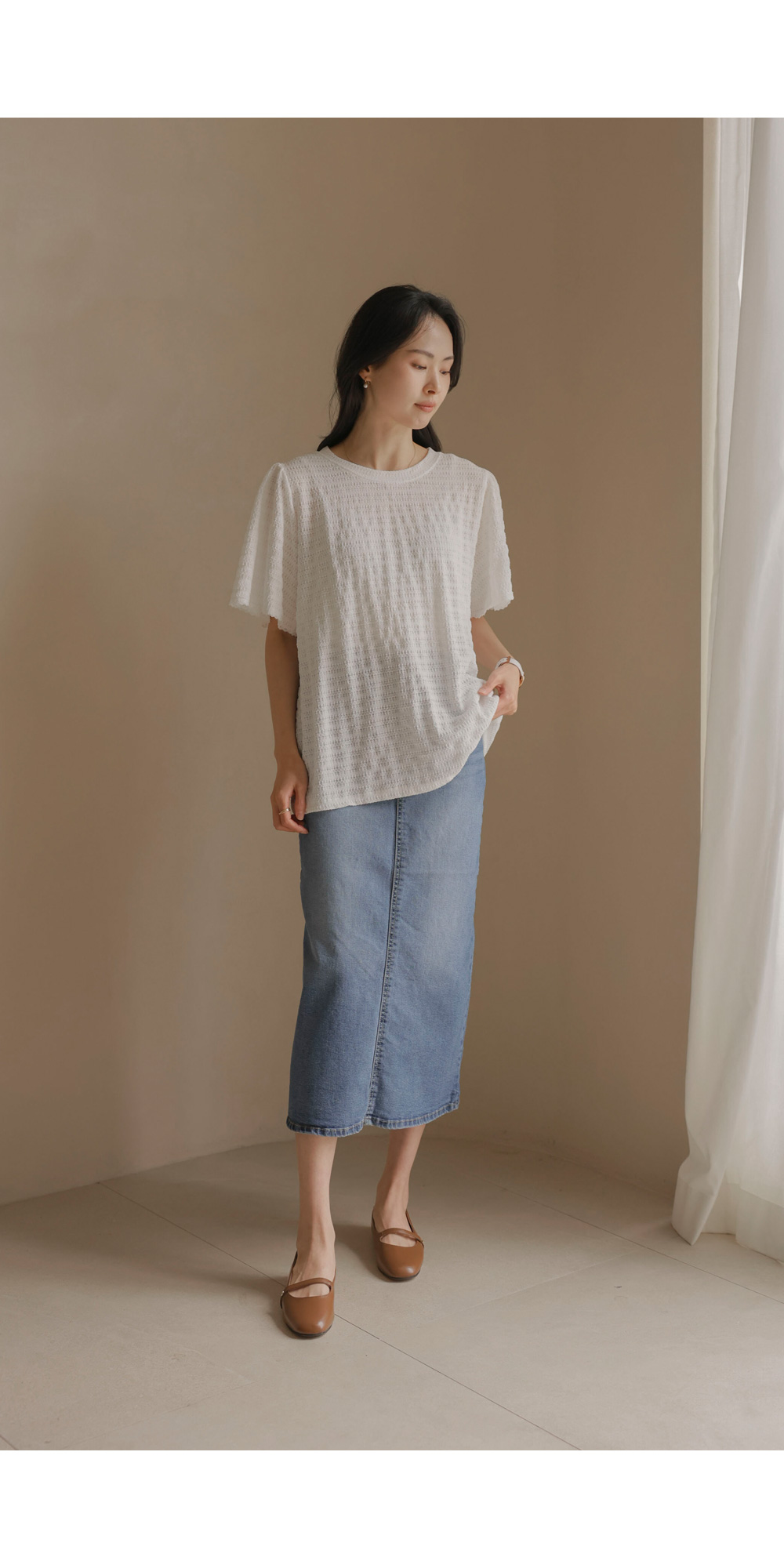 매 시즌 꾸준히 사랑받는 티셔츠는 단순한 기본템을 넘어 전체적인 룩의 분위기를 결정짓는 중요한 아이템이에요. 이번에 소개해 드리는 상품은 티셔츠의 편안함에 마치 블라우스 같은 디테일의 세련미를 더한 디자인이구요.
