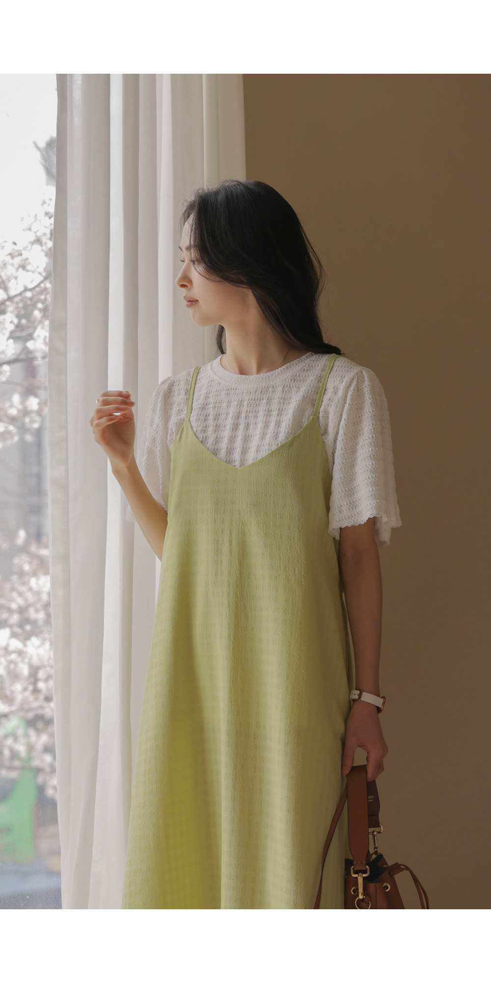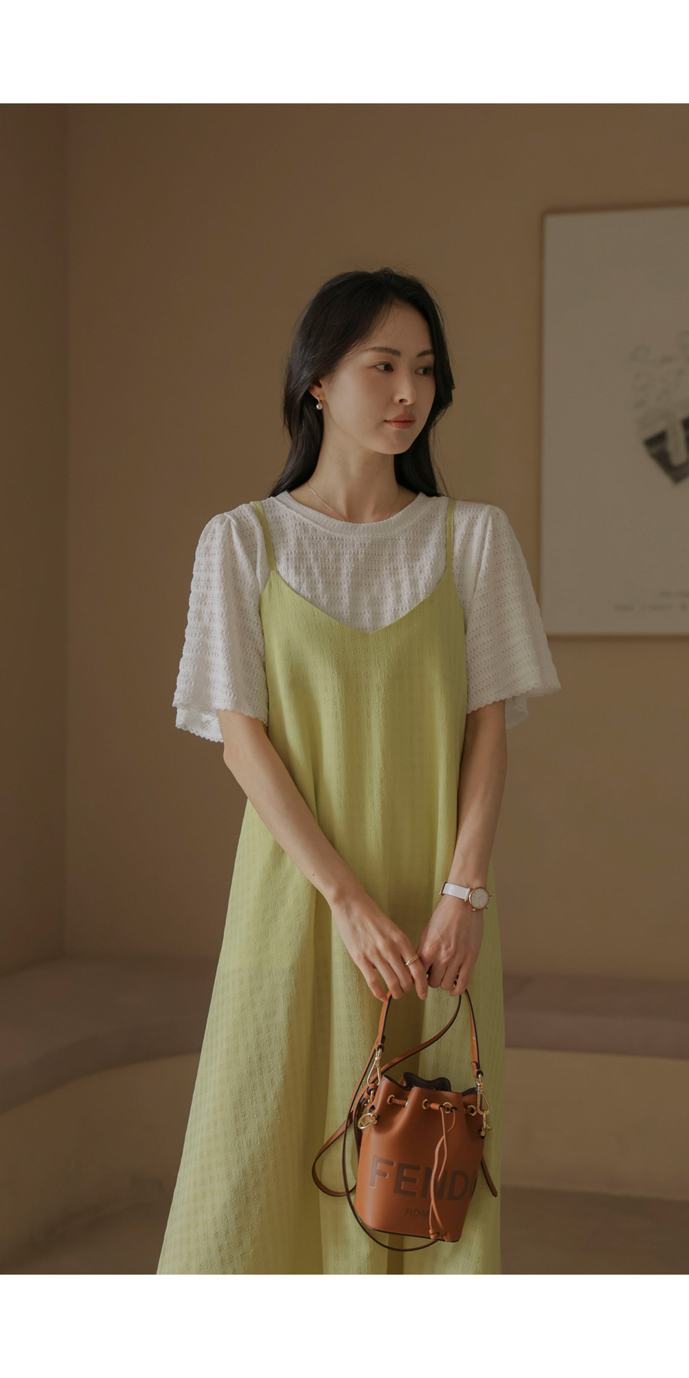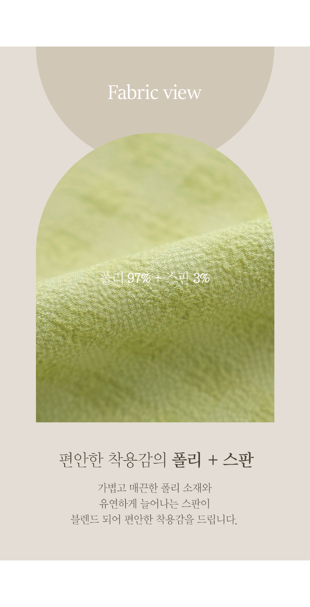 가볍고 차분하게 떨어지는 고퀄리티의 폴리와 스판이 혼방된 소재를 사용했어요. 원단 표면에 은은하고 입체적인 패턴감이 느껴져서 단색 원피스보다 훨씬 세련된 무드를 풍기구요. 구김이 잘 가지 않는 탄탄한 성질 덕분에 장시간 앉아있거나 활동해도 깔끔한 실루엣이 유지되어 관리하기가 정말 편안하실 거예요. ![]() MD가 답하는 안심 Q&A