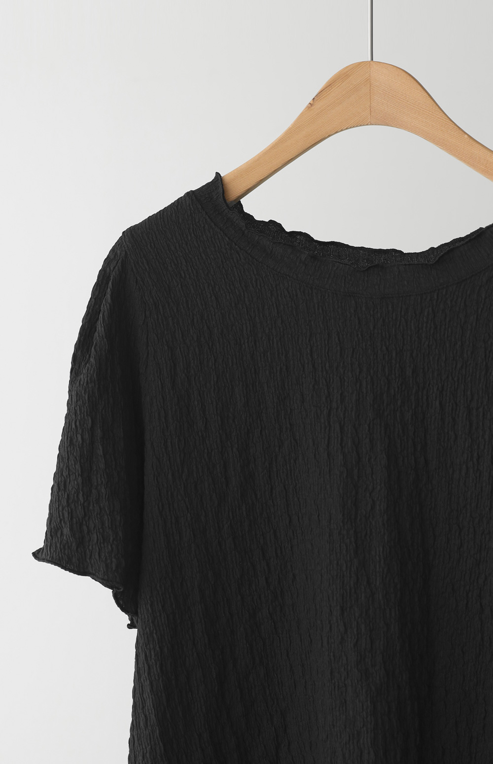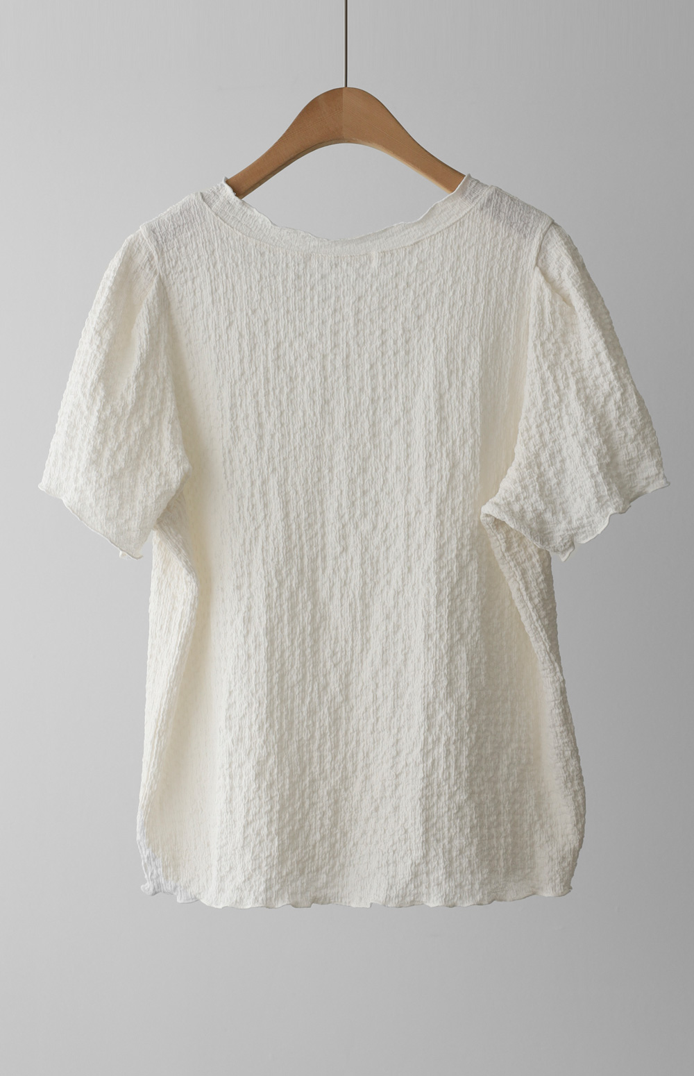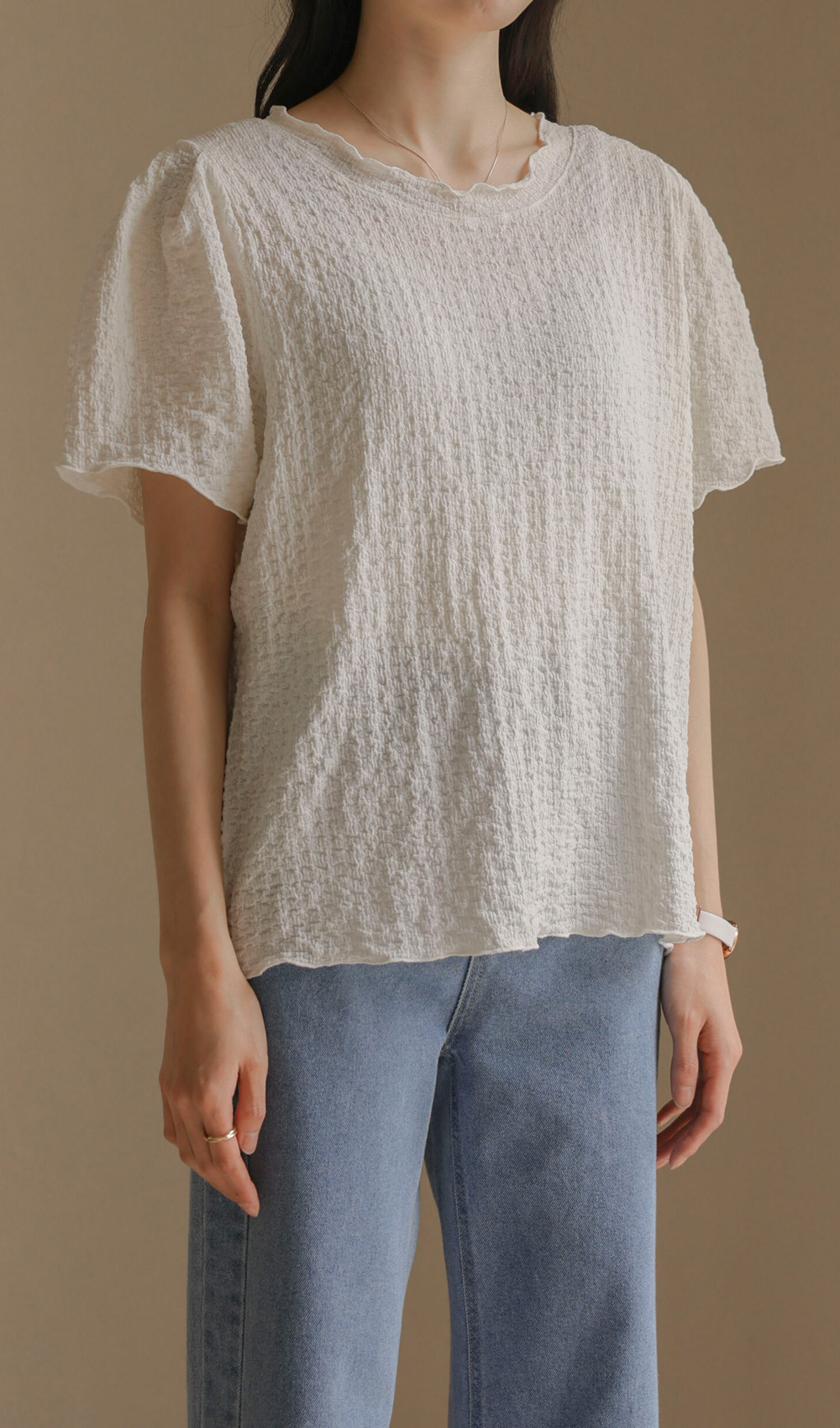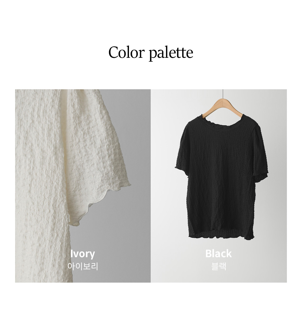 이번 아이템은, 입는 순간 특별해지는 마법 같은 티셔츠예요. 밋밋할 수 있는 기본 티셔츠 디자인에 입체적인 텍스처와 물결치는 끝단 디테일을 더해 유니크하면서도 사랑스러운 무드를 가득 담았답니다.