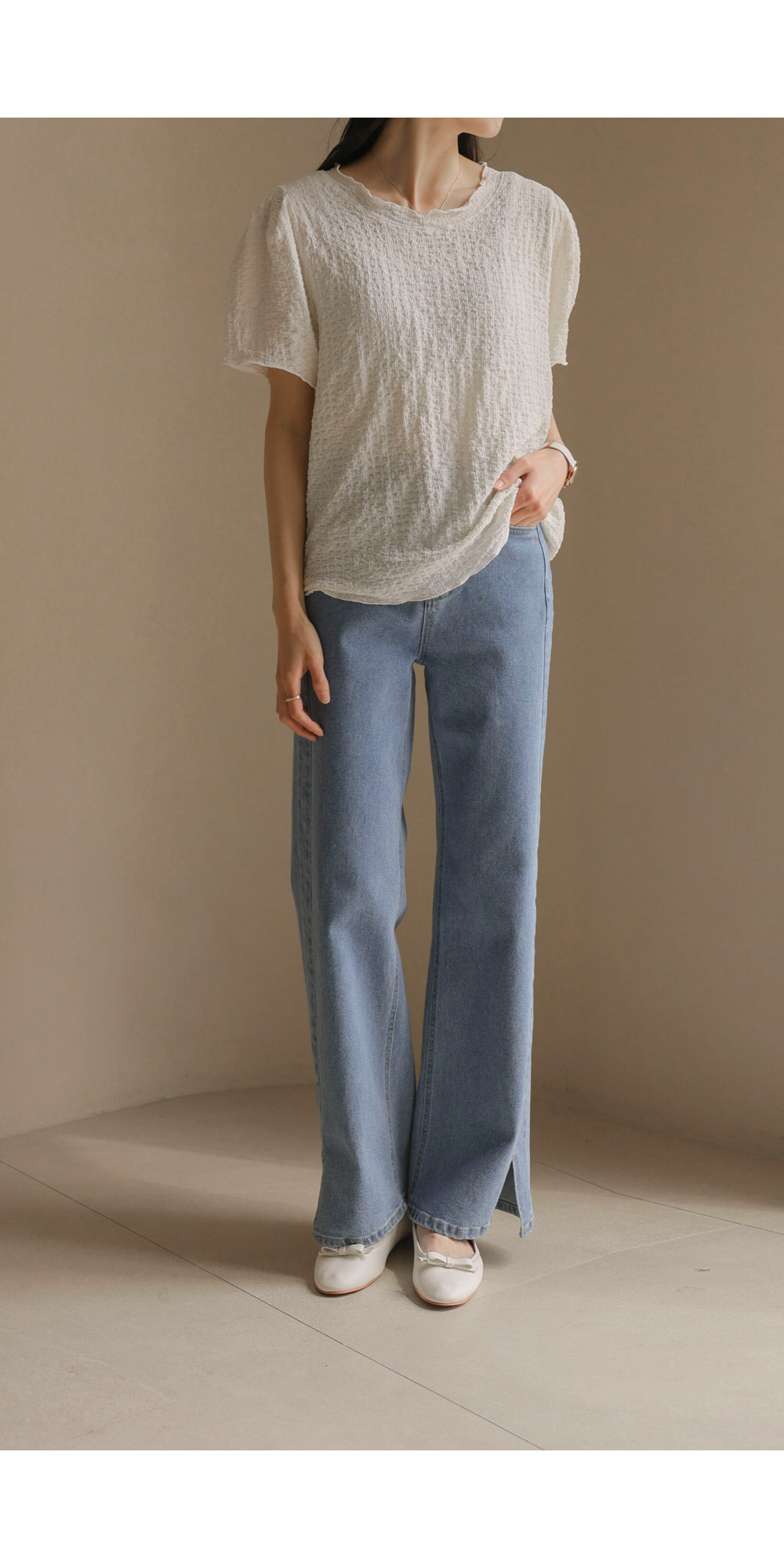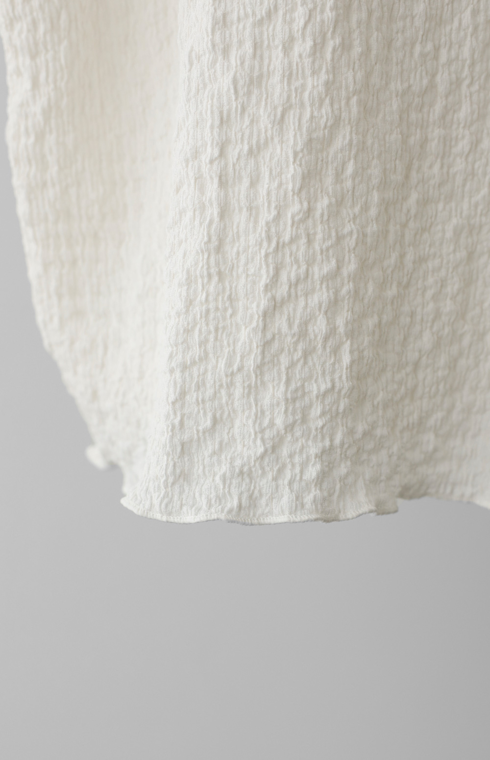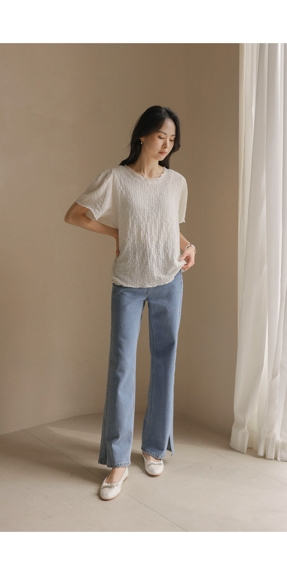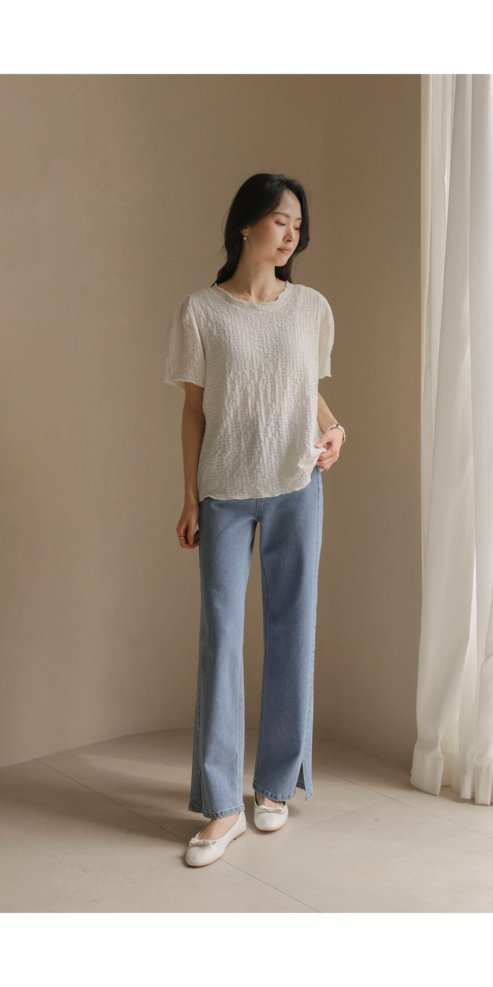 부드럽고 유니크한 소재감에 과하지 않은 퍼프 소매와 물결 디테일이 더해져, 입는 순간 특별해지는 기분을 느낄 수 있답니다.