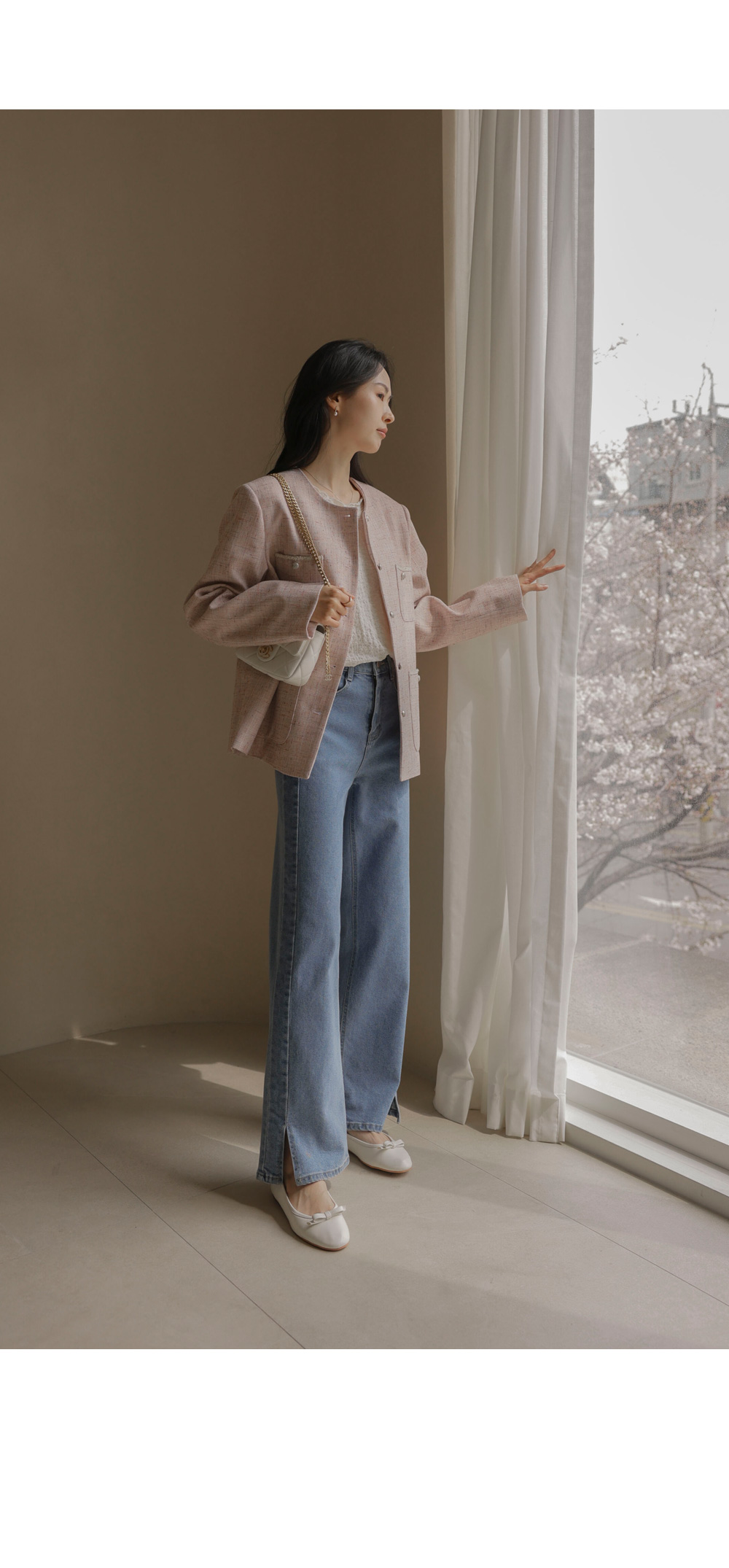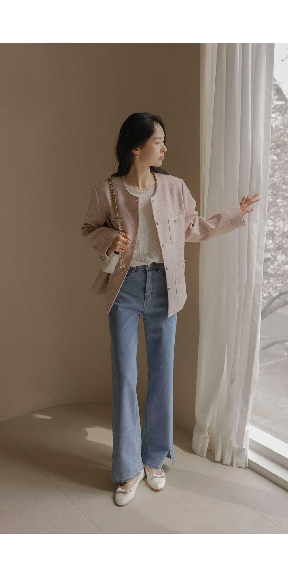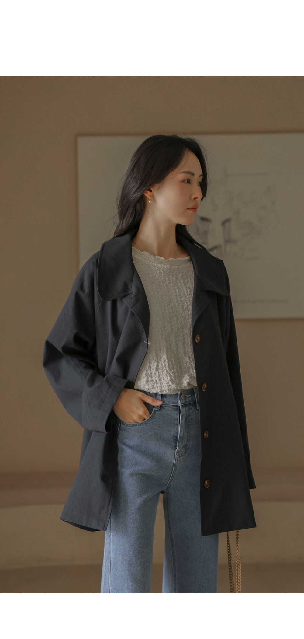 A:너무 깊지도, 답답하지도 않은 딱 적당한 라운드 넥이에요. 물결치는 컷팅 덕분에 목선이 훨씬 길고 가늘어 보이는 효과까지 있답니다.