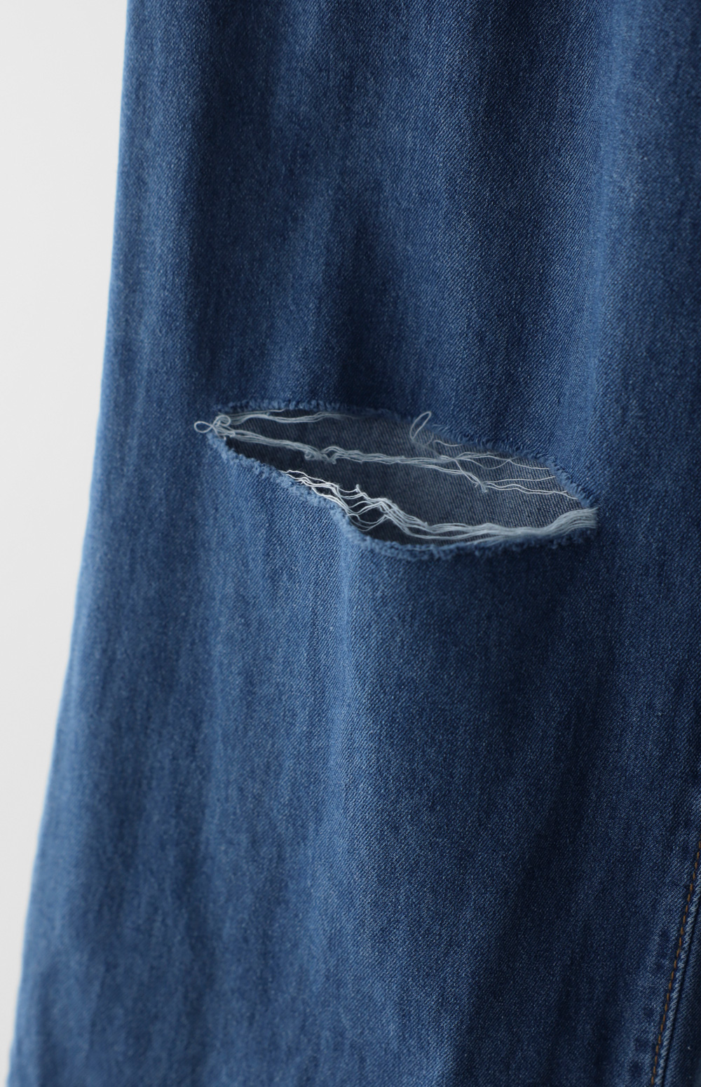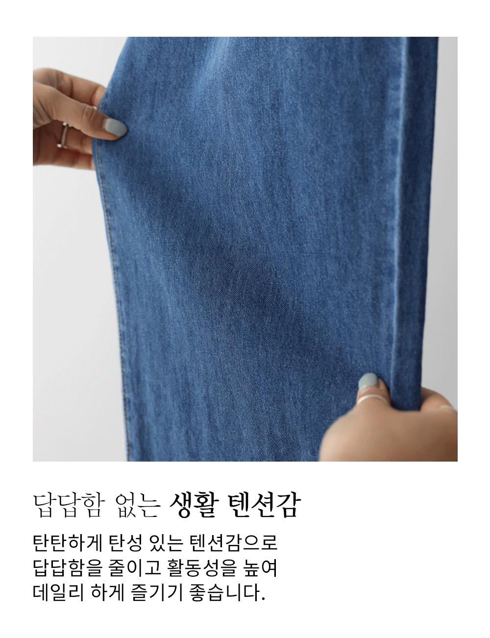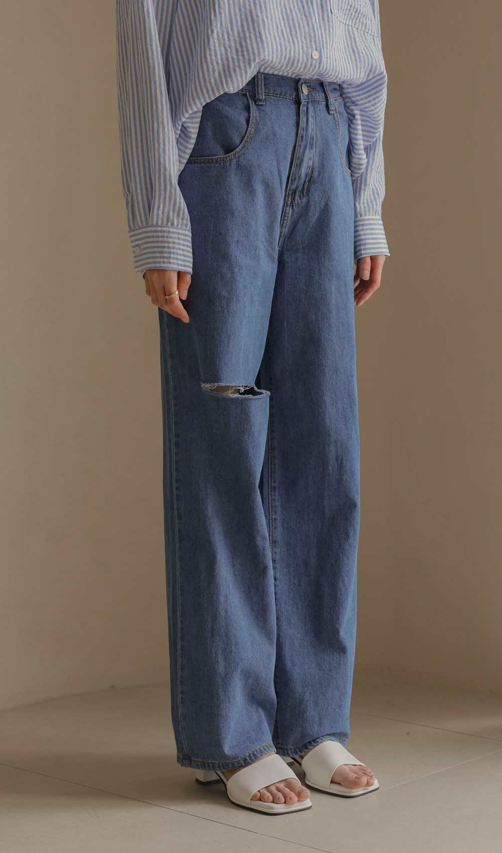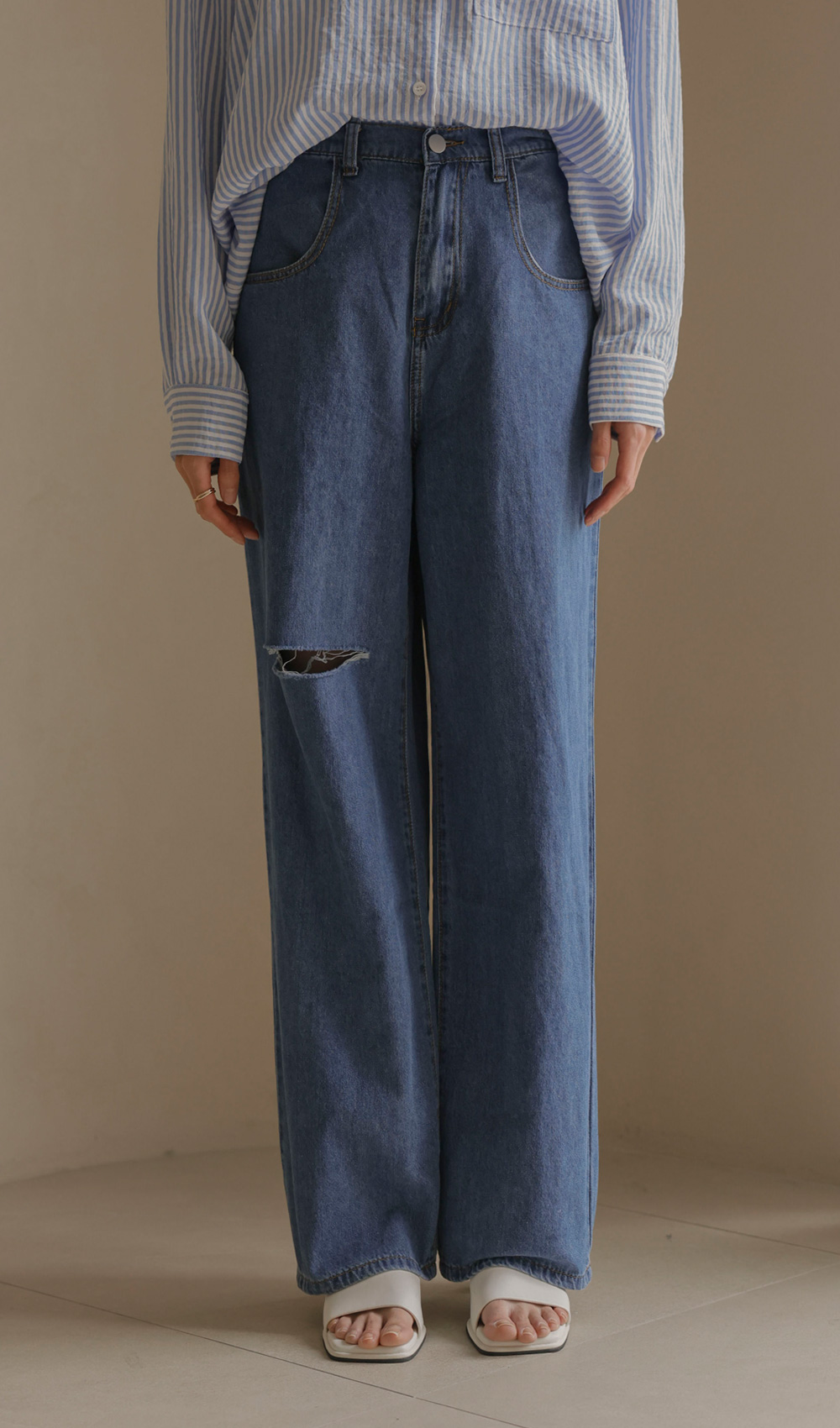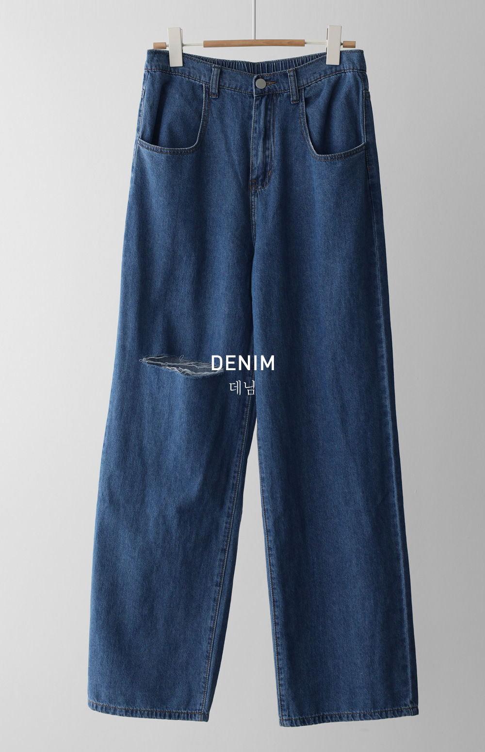 사계절 내내 손이 자주 갈 활용도 높은 팬츠 중에서도 단연 돋보이는 아이템이에요. 은은하고 깊이감 있는 데님 컬러 한 가지 구성으로 준비했구요, 유행을 타지 않으면서도 앞면의 찢어진 디테일 포인트 덕분에 밋밋함 없이 감각적인 룩을 연출하기 좋답니다.