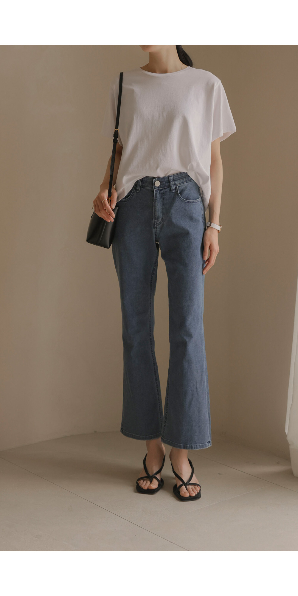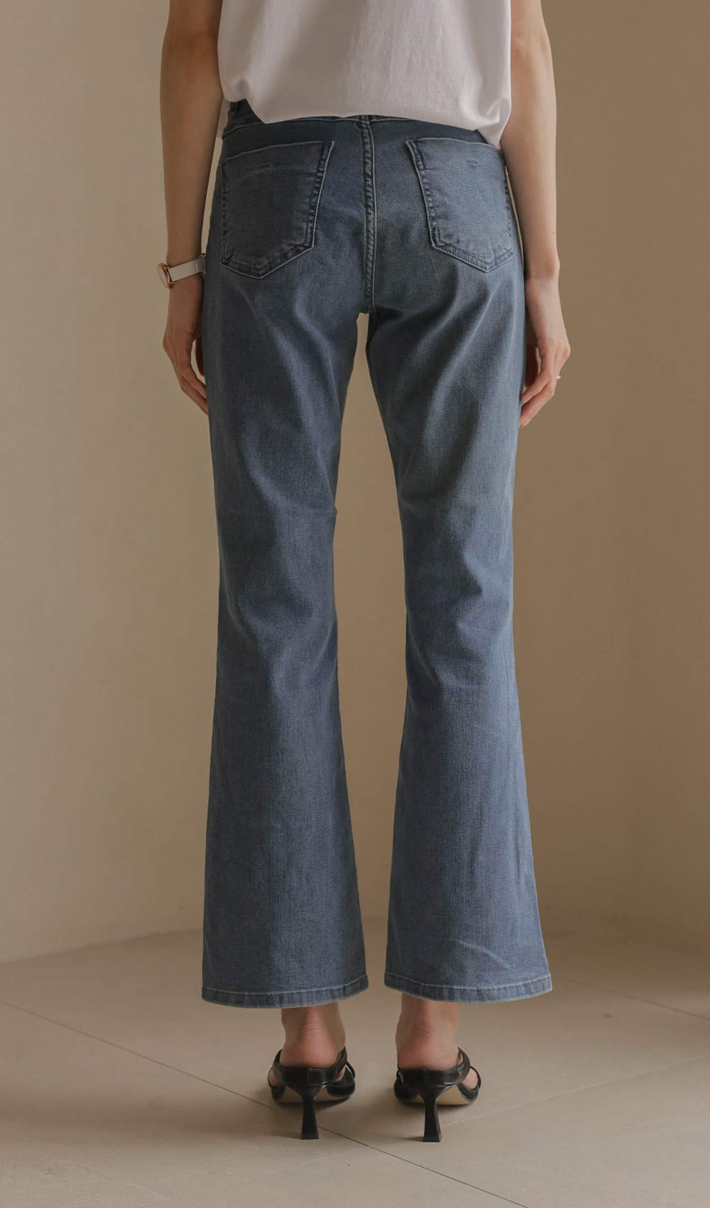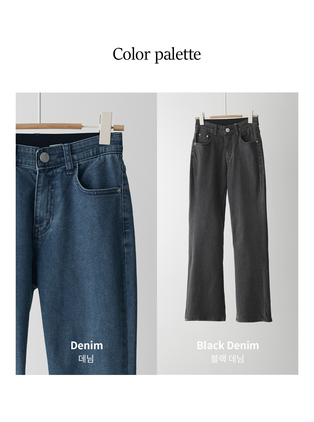 데님 팬츠 카테고리에서 가장 세련된 라인을 자랑하는 아이템 소개해 드려요. 무릎 아래로 자연스럽게 퍼지는 부츠컷 실루엣이 다리 라인을 훨씬 길고 슬림해 보이게 만들어 주구요.