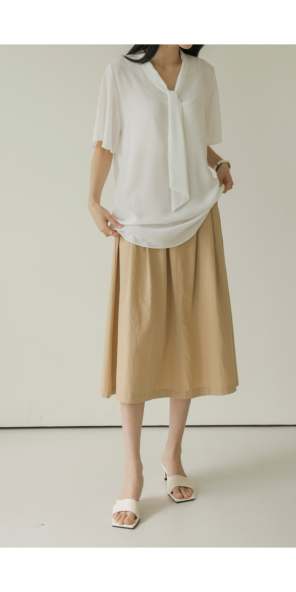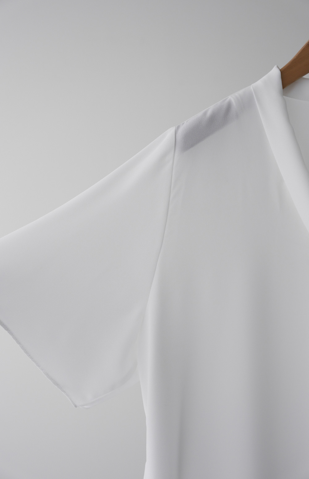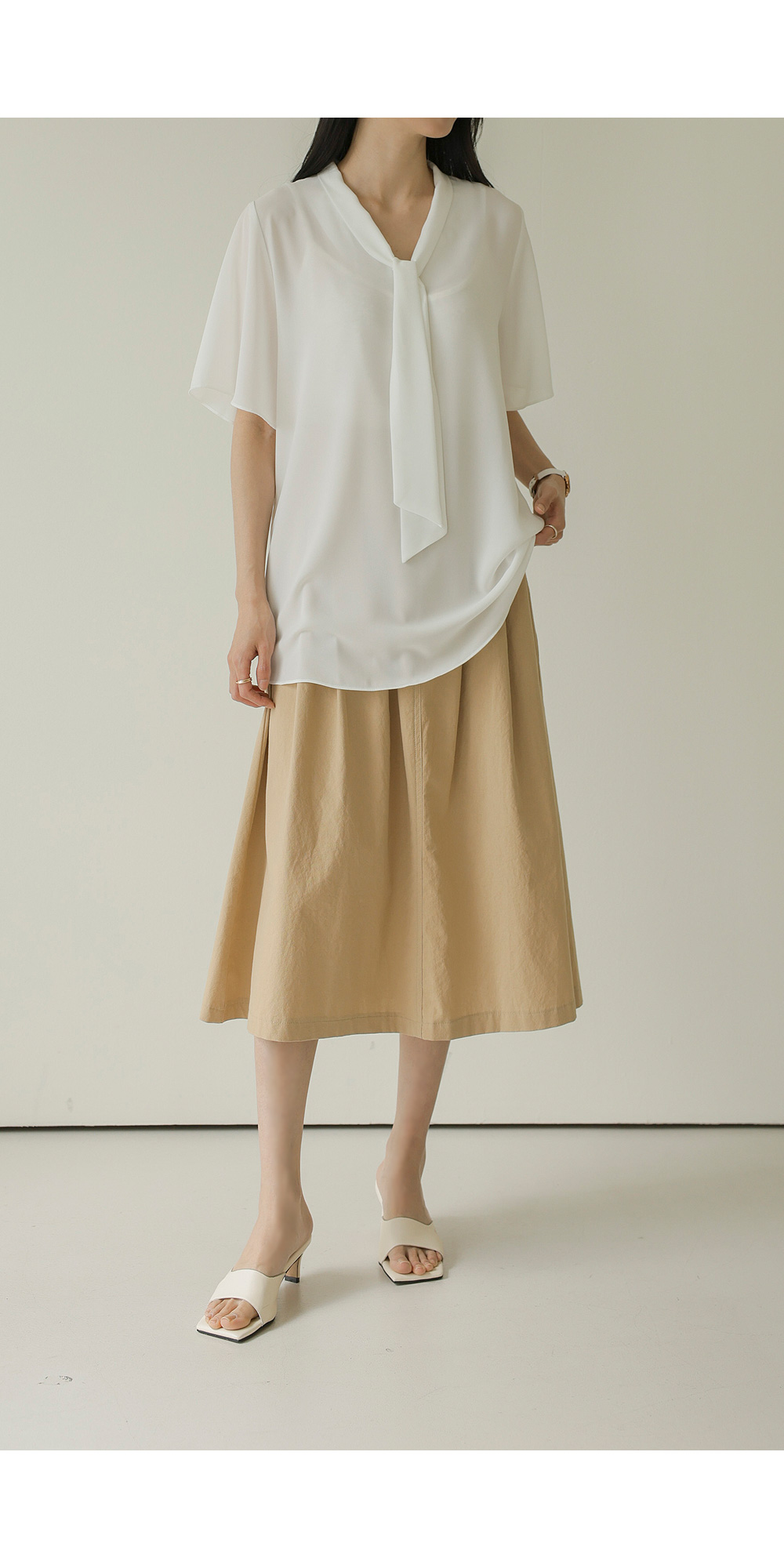 매끈하고 가벼운 폴리 소재를 사용하여 피부에 닿는 촉감이 매우 유연하고 시원합니다. 탄탄한 밀도감 덕분에 얇지만 비침이 과하지 않고, 장시간 착용하거나 활동해도 쉽게 구겨지지 않아 깔끔한 외관을 오래도록 유지해 줍니다. 몸에 달라붙지 않고 찰랑거리는 드레이프성이 우수해 고급스러운 실루엣을 완성해 주는 소재입니다. ![]() MD가 답하는 안심 Q&A