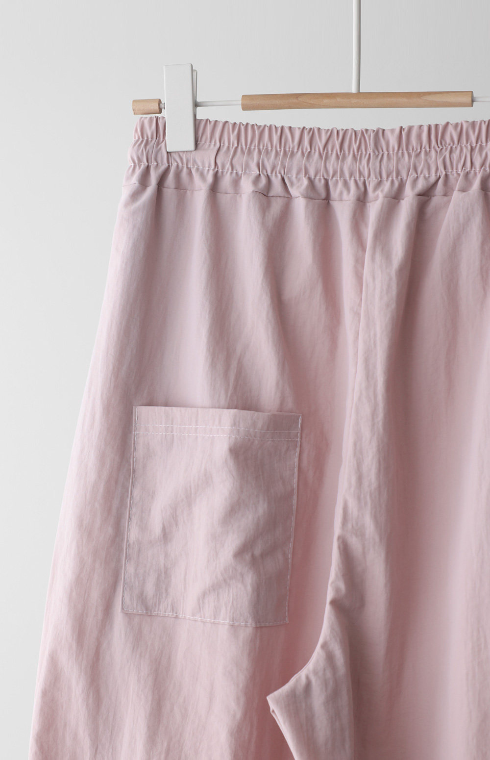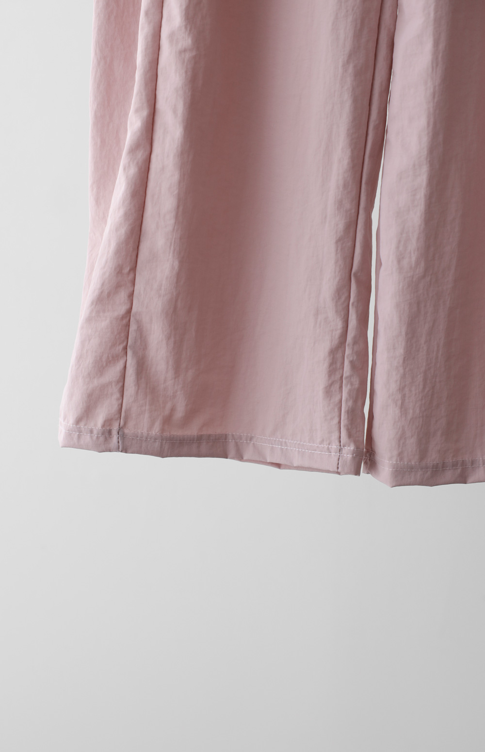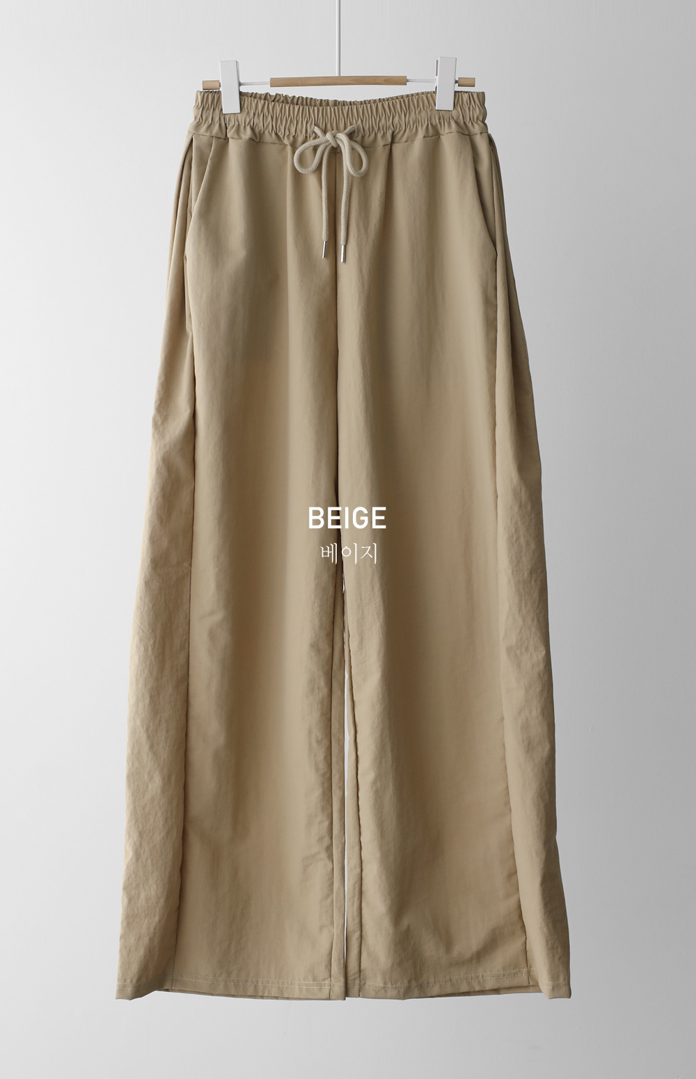 매끄러운 촉감과 가벼운 무게감을 자랑하는 나일론 소재를 사용해 피부에 닿는 감촉이 굉장히 산뜻해요. 탄탄한 조직감 덕분에 무릎 나옴이나 형태 변형이 적어 오랫동안 깔끔한 핏을 유지해 주구요. 매트한 질감이라 부담스럽지 않으며, 바스락거리는 특유의 텍스처가 청량함을 더해준답니다.