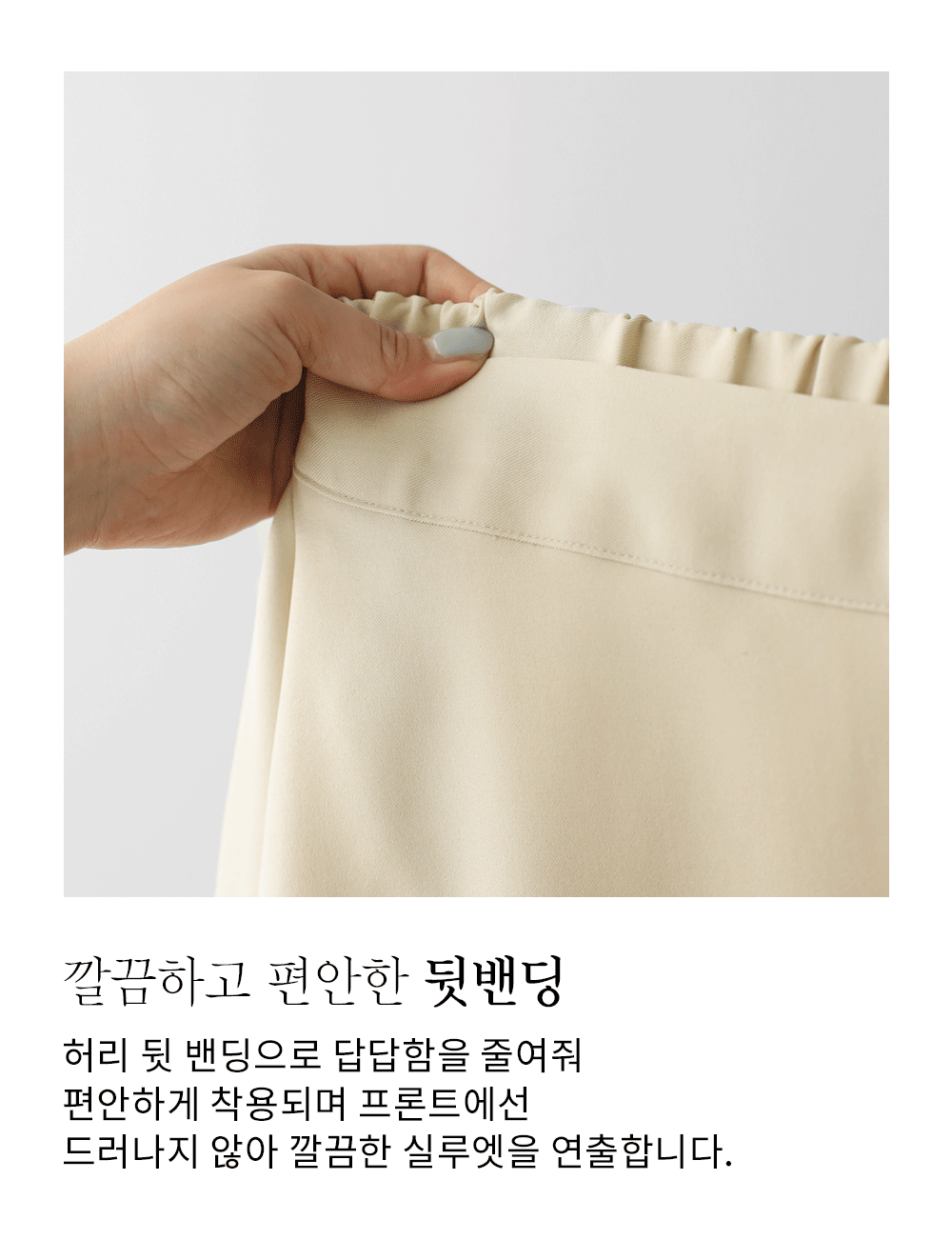 폴리 소재 특유의 매끄러우면서도 부드러운 터칭감이 돋보이는 아이템이예요. 원단 자체가 얇고 가볍게 제작되어 피부에 닿는 느낌이 쾌적하며, 구김이 잘 가지 않아 오랫동안 깔끔한 실루엣을 유지할 수 있답니다. 찰랑거리는 드레이프성이 좋아 걸을 때마다 다리 라인을 따라 흐르는 곡선이 정말 아름답게 표현되는 소재예요. ![]() 밴딩 가이드 보러가기→ ![]() MD가 답하는 안심 Q&A